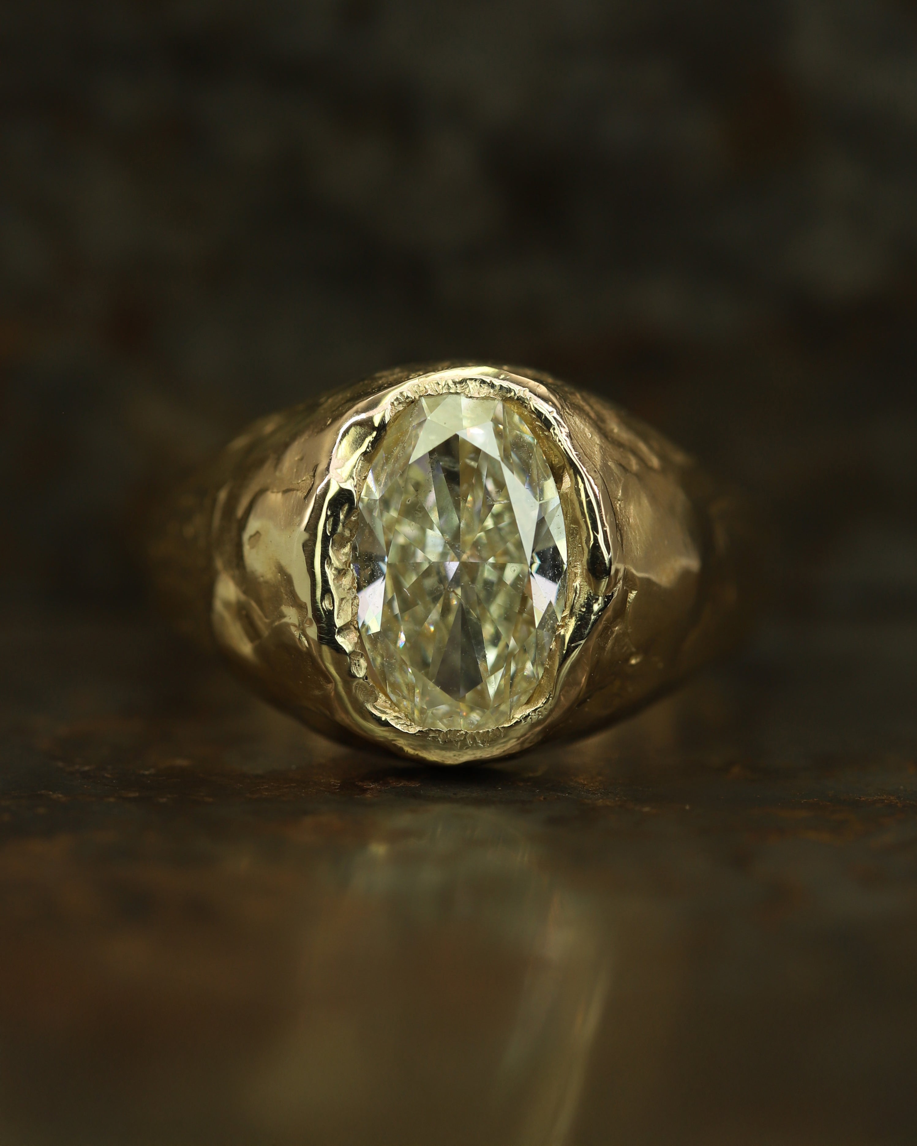 Armach 2.8ct Oval Lemon Diamond Organic Engagement Signet Ring