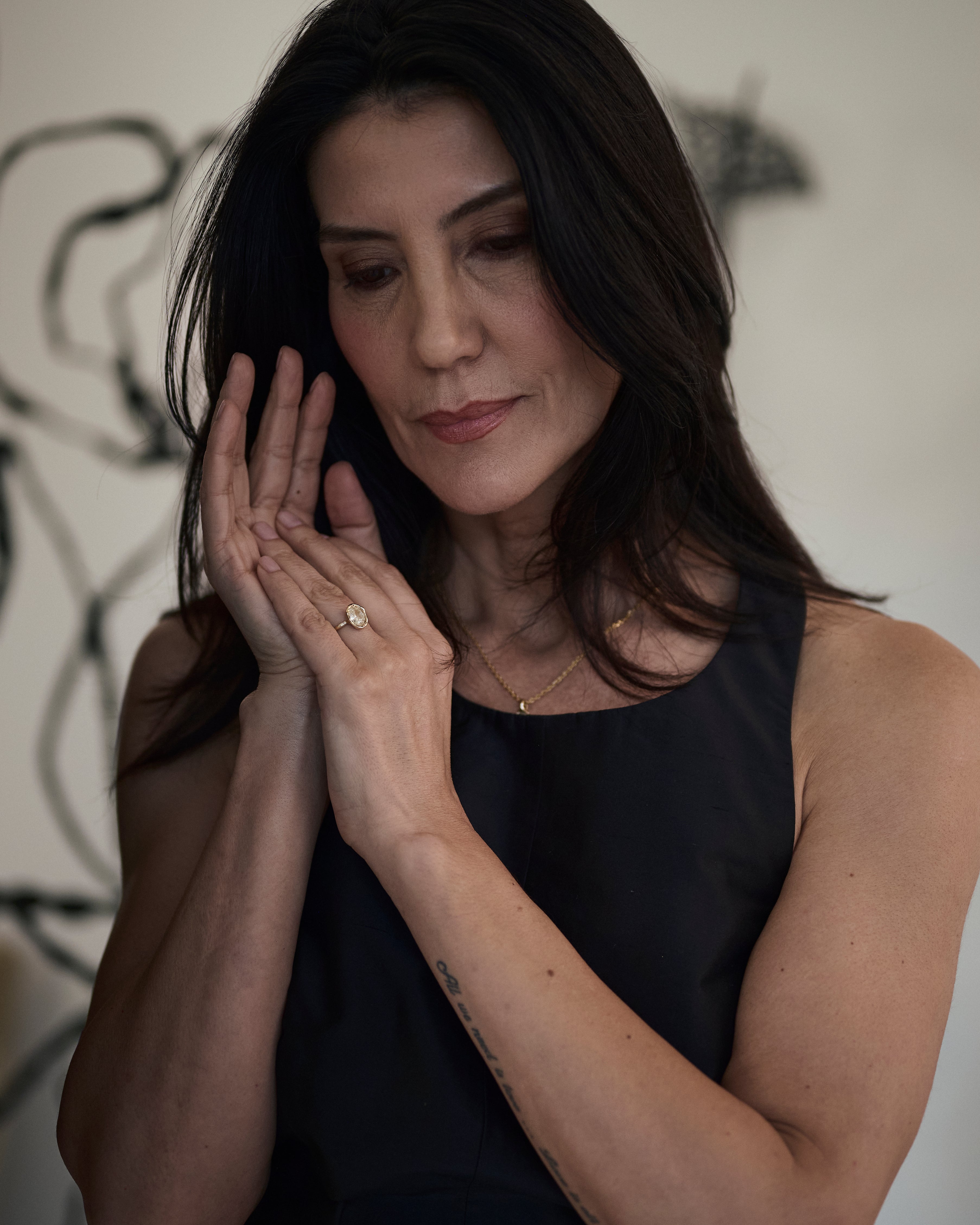 Ellis discovered ancient weaponry on her family farmland - objects of protection and defence. The Armach collection reimagines what we mean by armour; a combination of diamonds and gold, worn for confidence and strength.