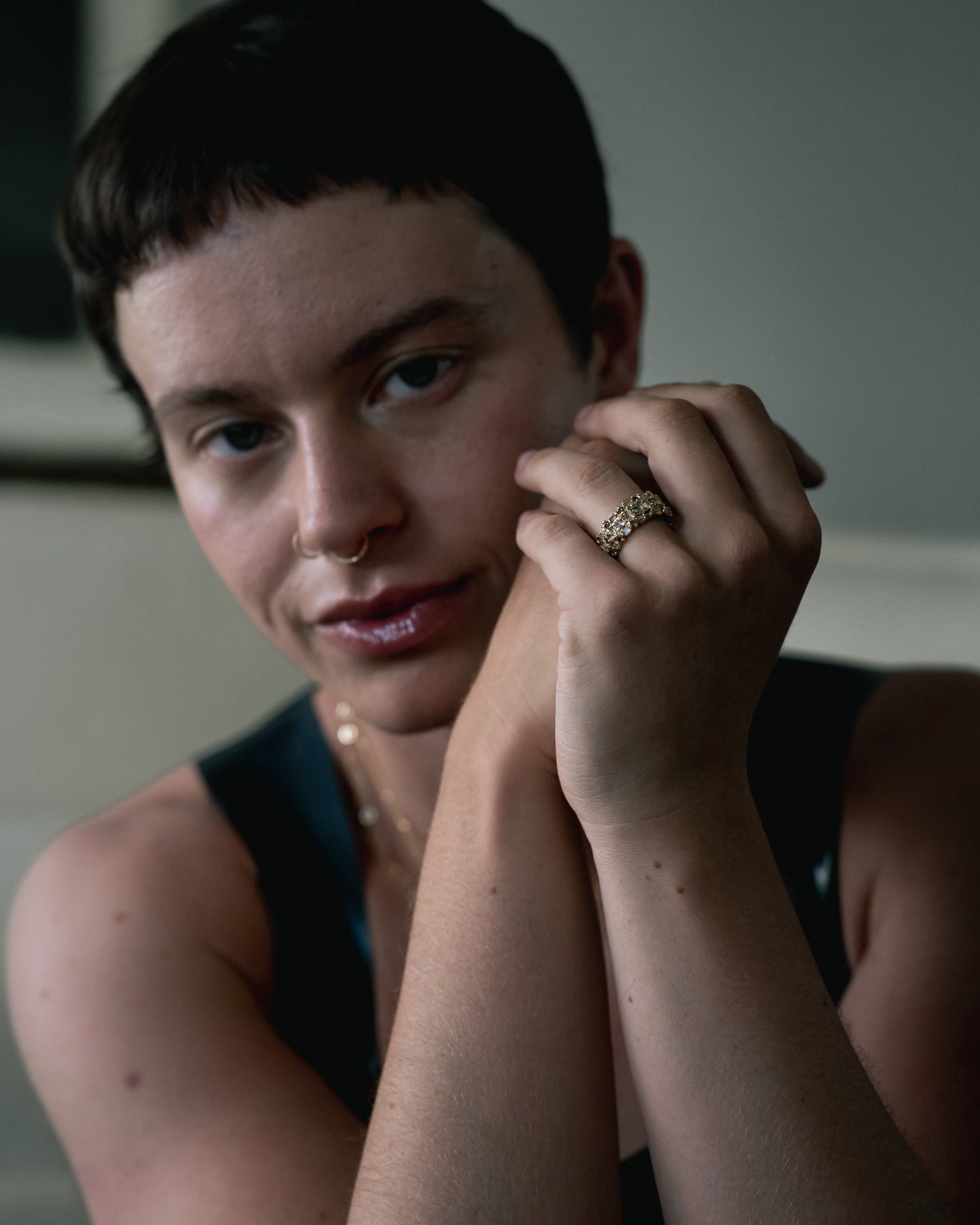 Ellis discovered ancient weaponry on her family farmland - objects of protection and defence. The Armach collection reimagines what we mean by armour; a combination of diamonds and gold, worn for confidence and strength.
