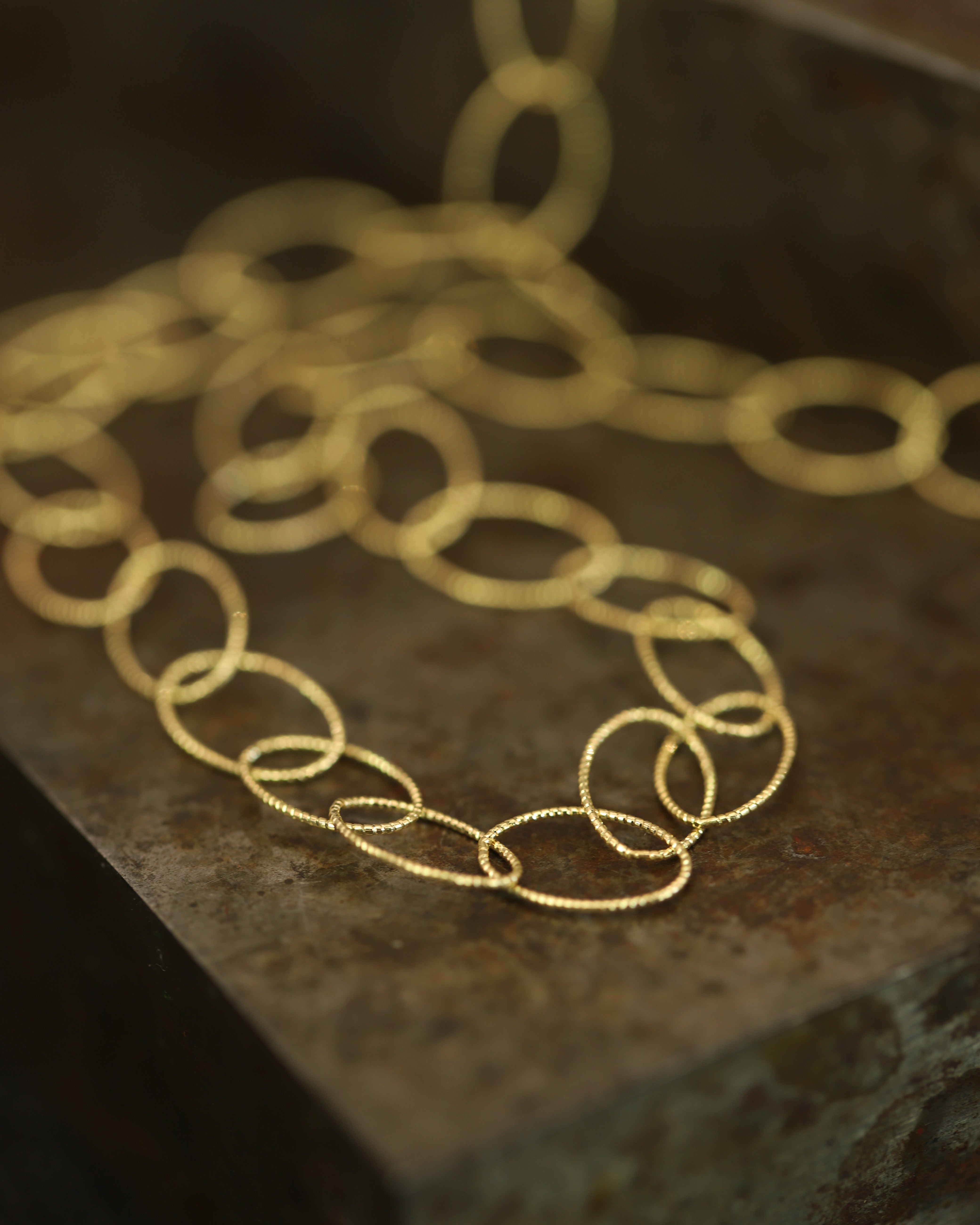 The I Slim Textured Gold Link Chain Necklace is inspired by the medieval jewellery hoards which have been found across Scotland.