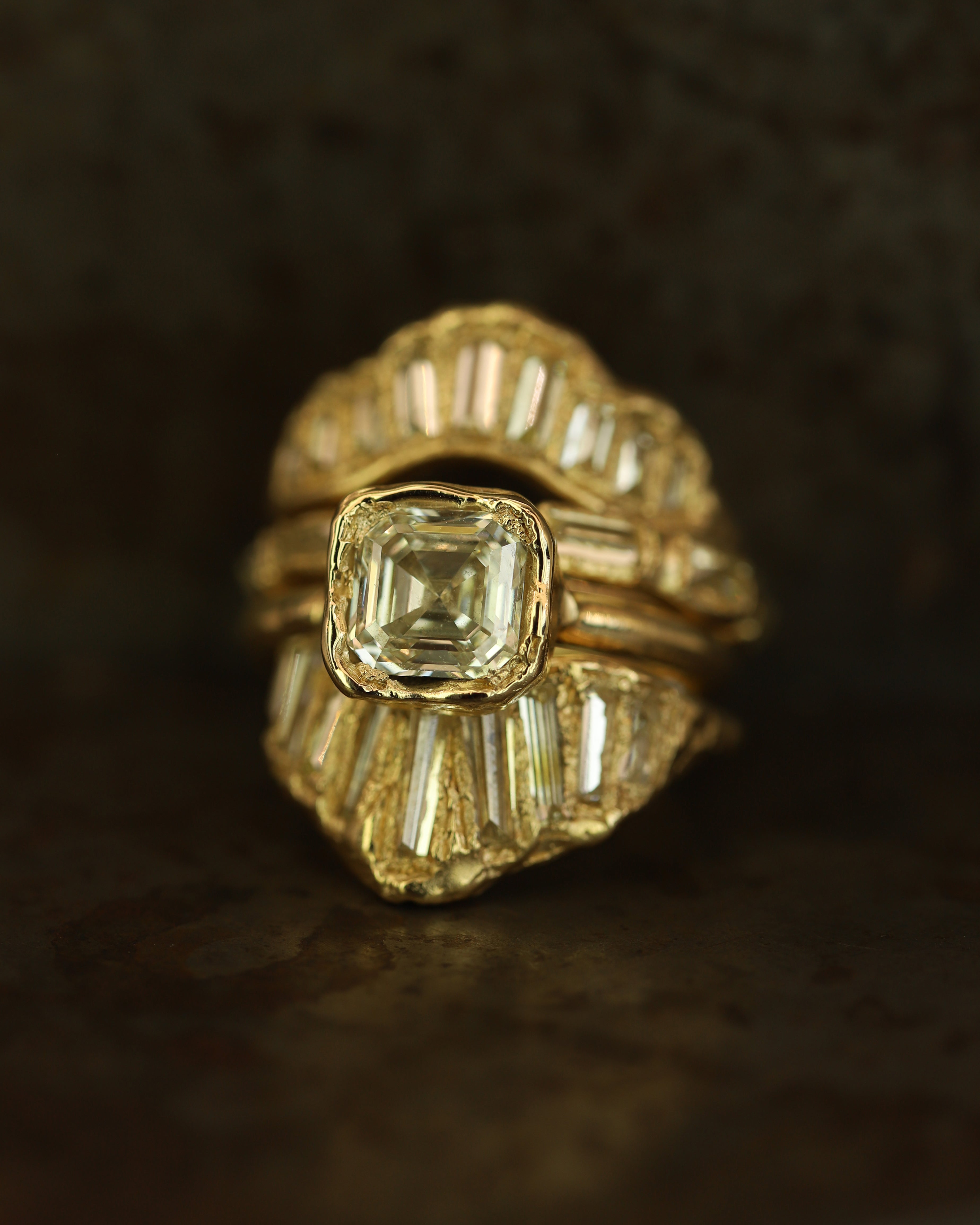 A set of four rings from across our collections; the perfect stack to mark a milestone.