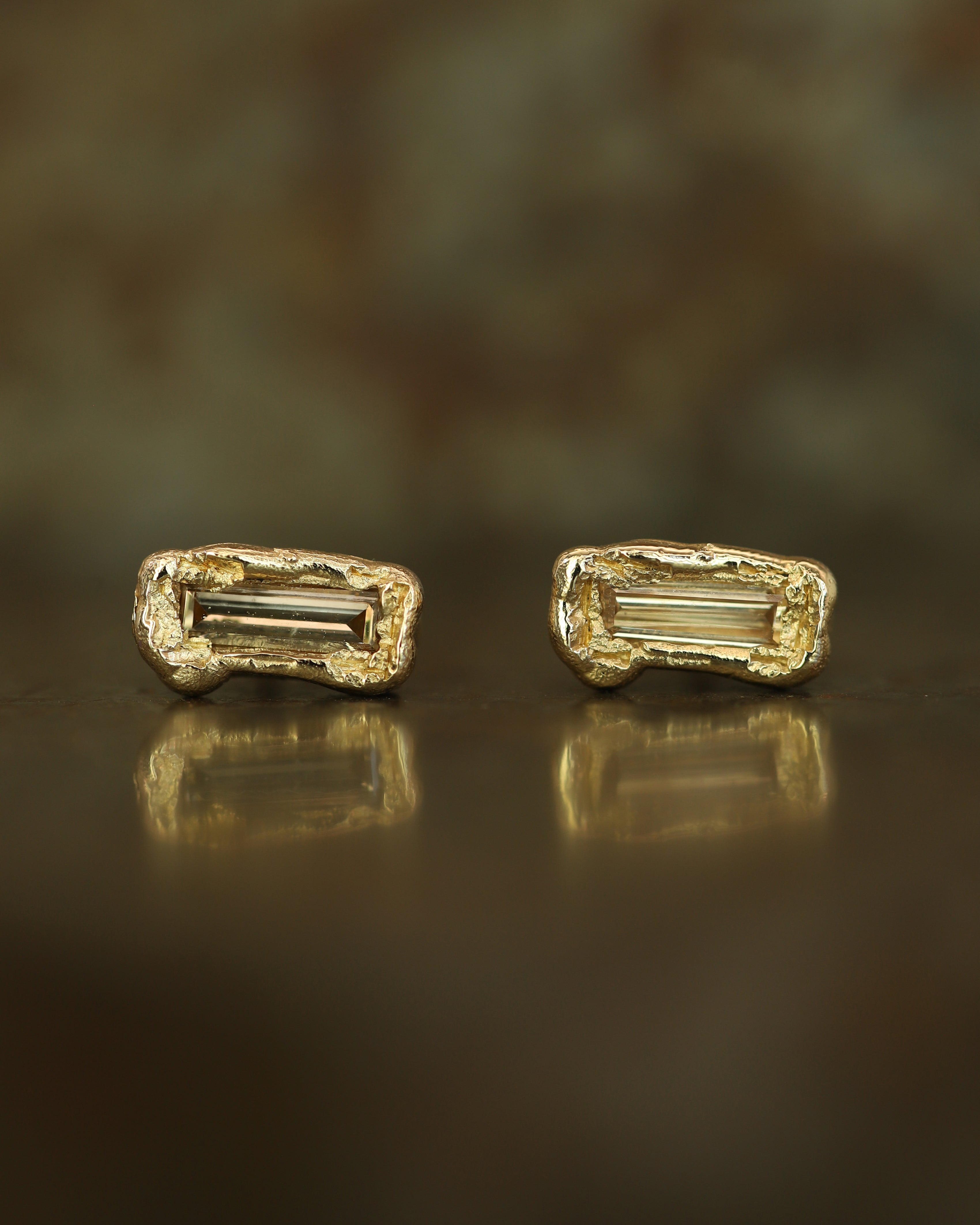 X 0.5ct Baguette Champagne Diamond Organic Stud Earrings
