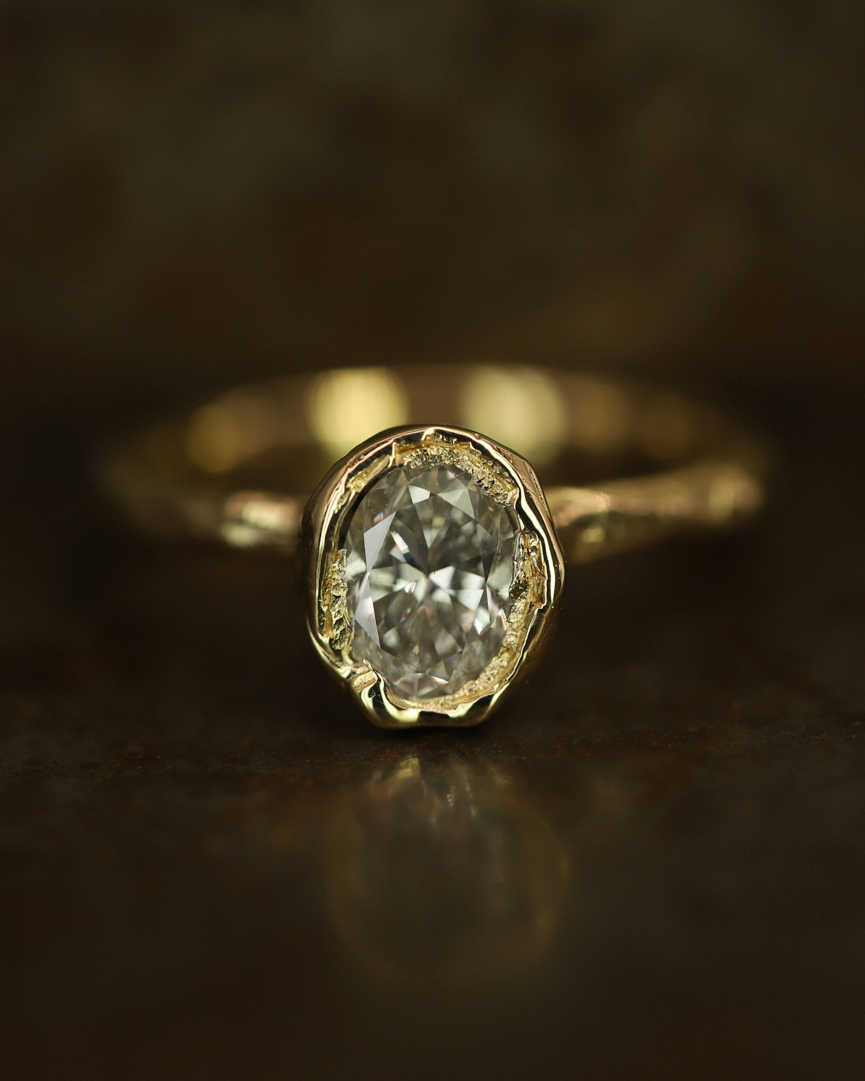 The X 1ct Oval Light Salt & Pepper Oval Diamond Organic Engagement Ring is inspired by the medieval jewellery hoards which have been found across Scotland.