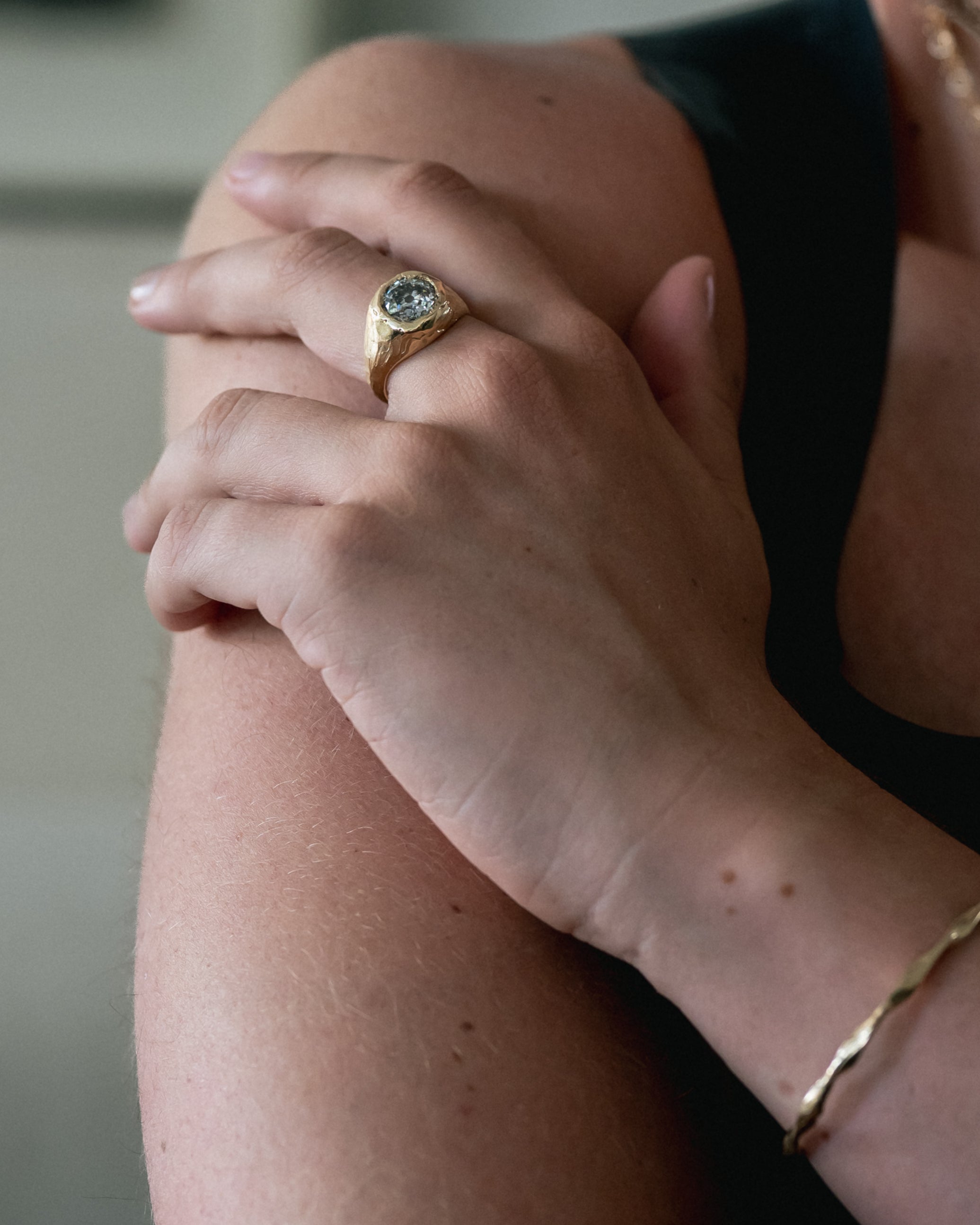 Ellis re-sets these antique stones into sculptural, modern settings; giving them new life without erasing their past. The result is jewellery that feels both timeless and contemporary; a meeting point between heritage and modern design.