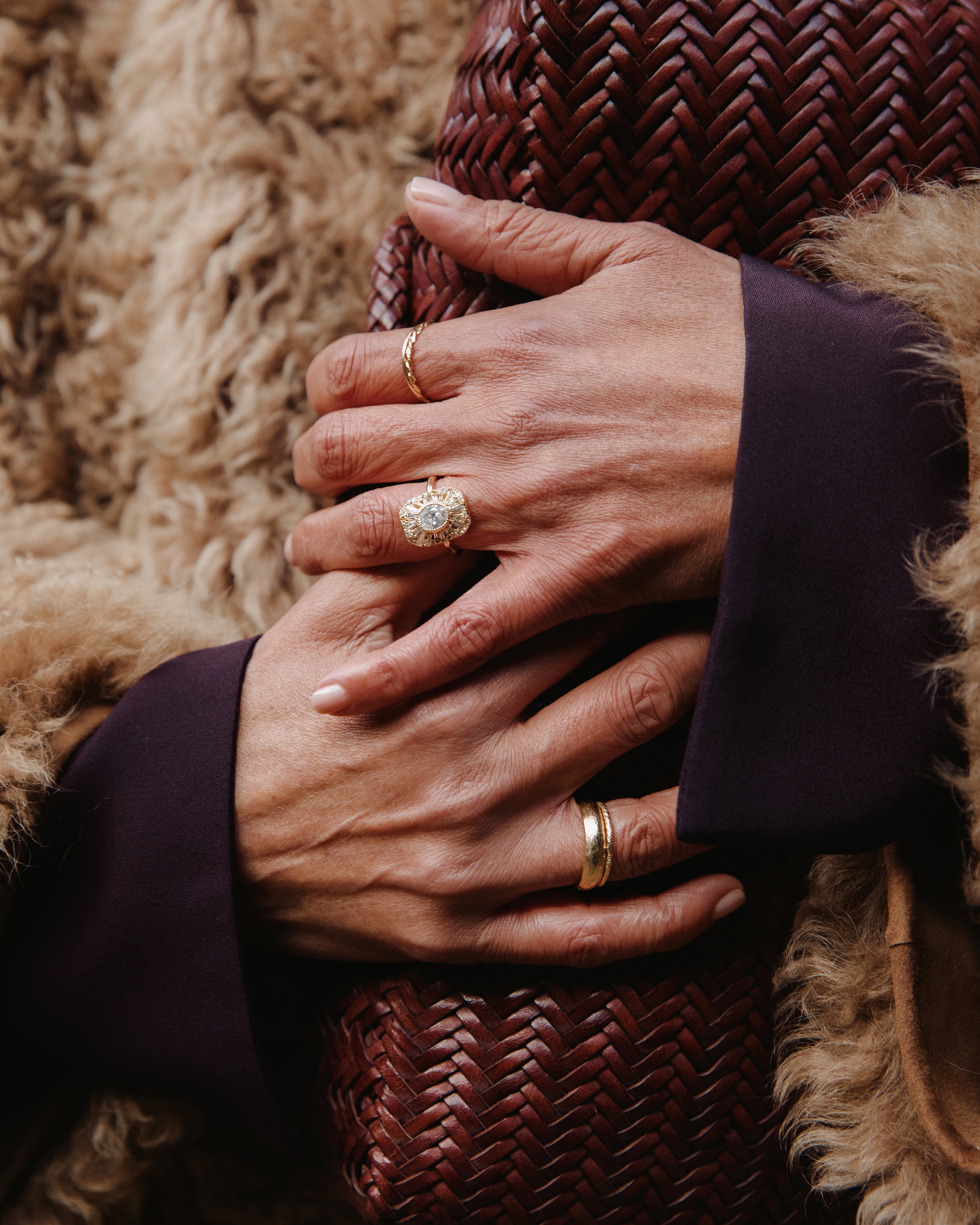 These pieces are made for couples looking for something less conventional, whether it’s an organic engagement ring, a distinctive eternity band, or a textured wedding ring. With a colour palette drawn from the Scottish landscape, created to reflect the natural tones of sunsets, and shifting autumn skies; warm, earthy, and quietly dramatic.