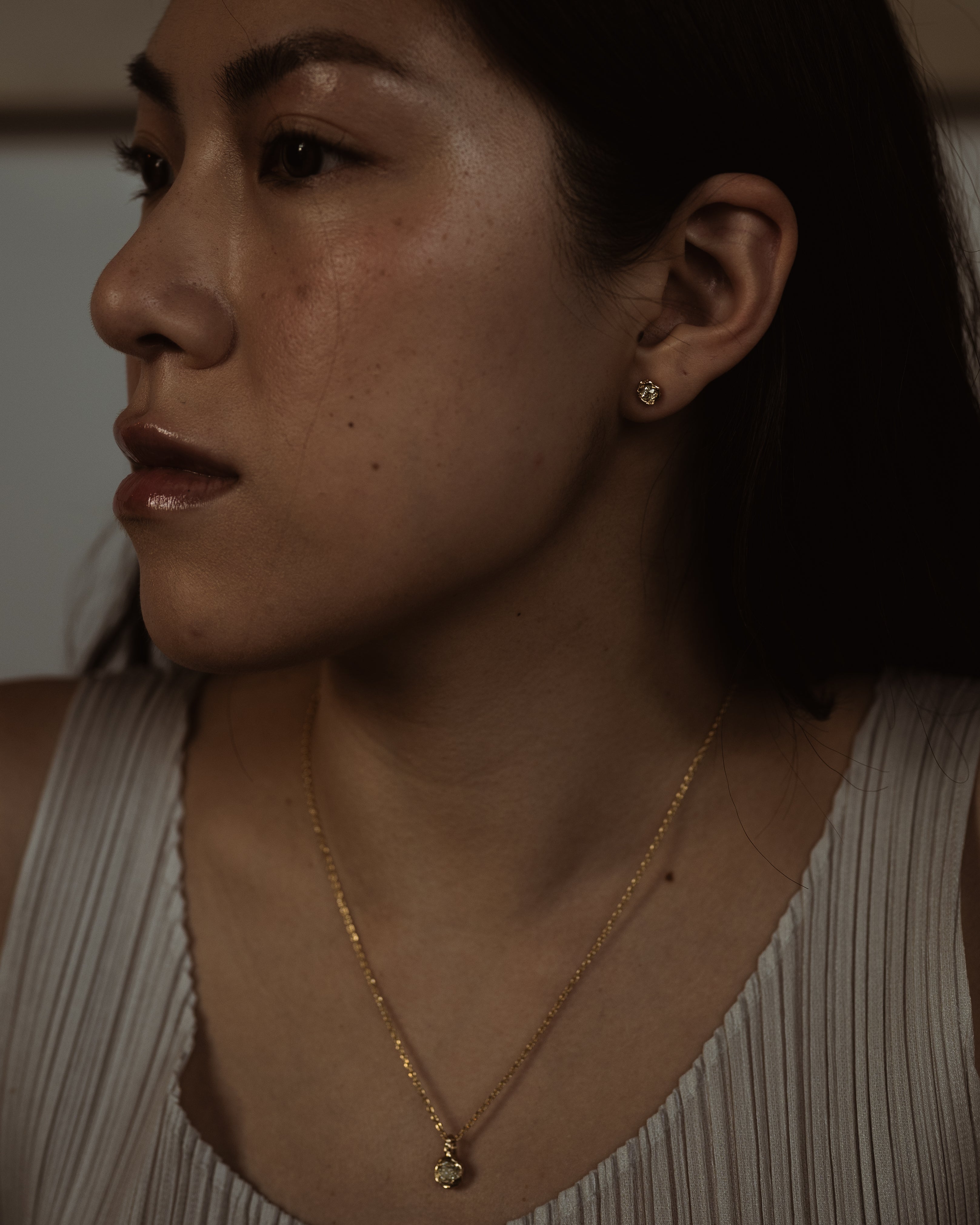 Intricately detailed, the subtle texture of the earrings catch in the light, contrasting with the diamonds. Perfect as everyday earrings, or for special occasions. Wear solo, or pair with other studs in the collection.