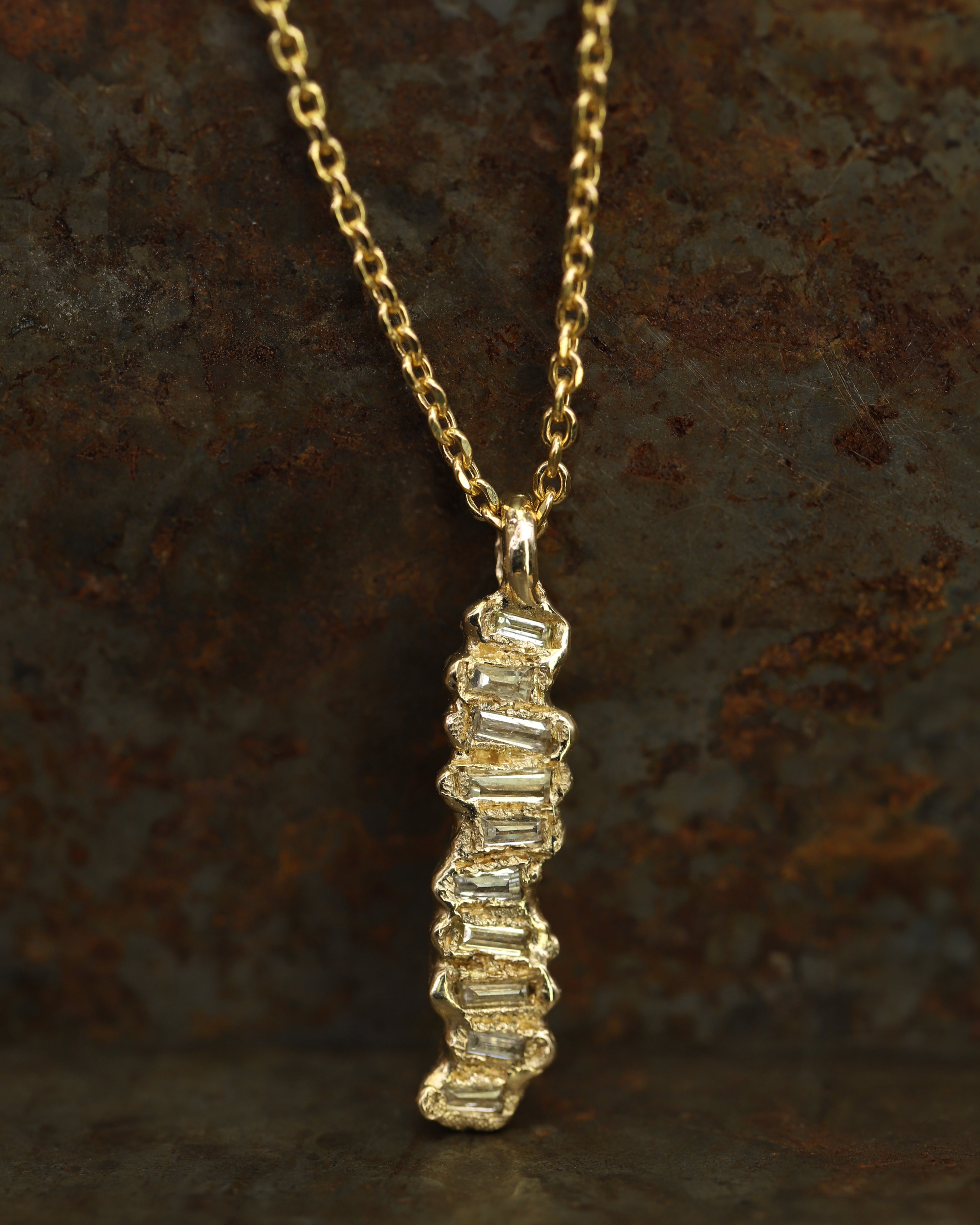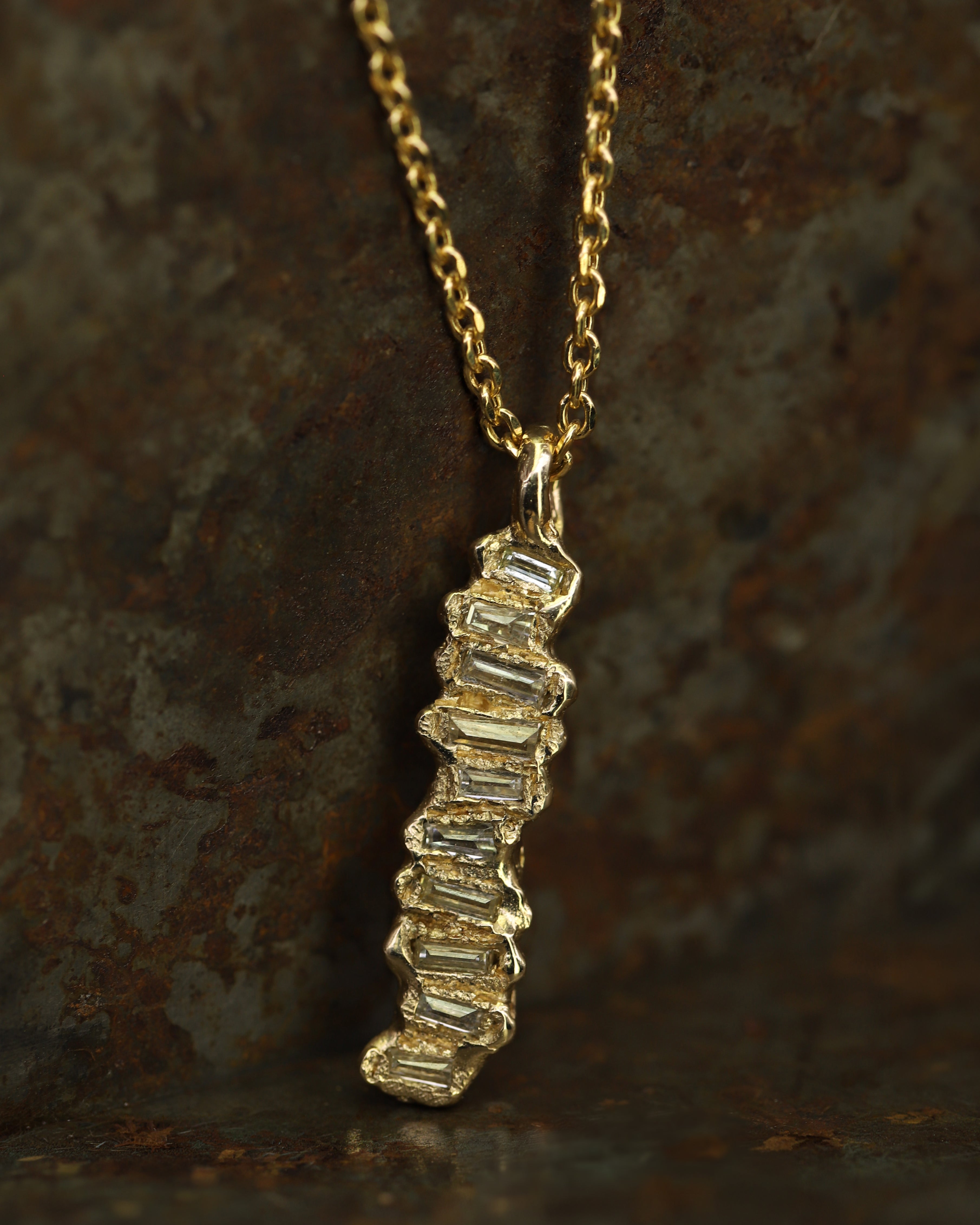 The X Baguette Lemon Diamond Scatter Extra Large Pendant Necklace is inspired by the medieval jewellery hoards which have been found across Scotland.