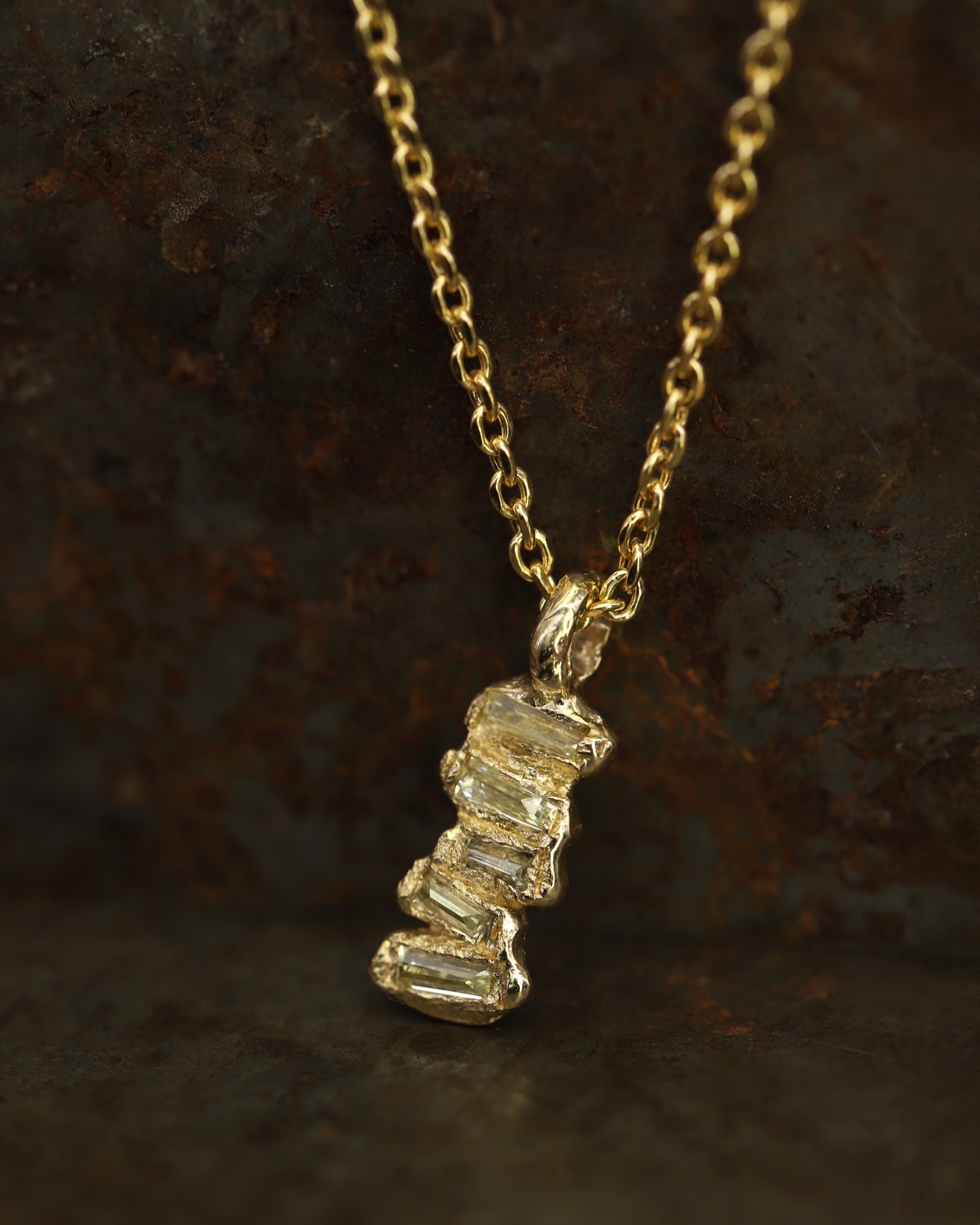 The X Baguette Lemon Diamond Scatter Large Pendant Necklace is inspired by the medieval jewellery hoards which have been found across Scotland.