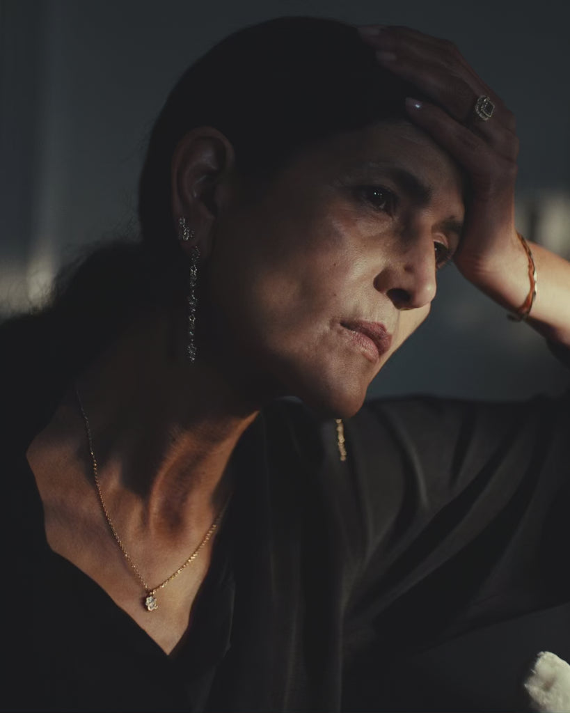 These stones are paired with icy white diamonds, scattered like flecks of treasure in textured, molten gold, to create jewellery that feels tactile and storied, combining Ellis’ erosive aesthetic with a refined sense of discovery.