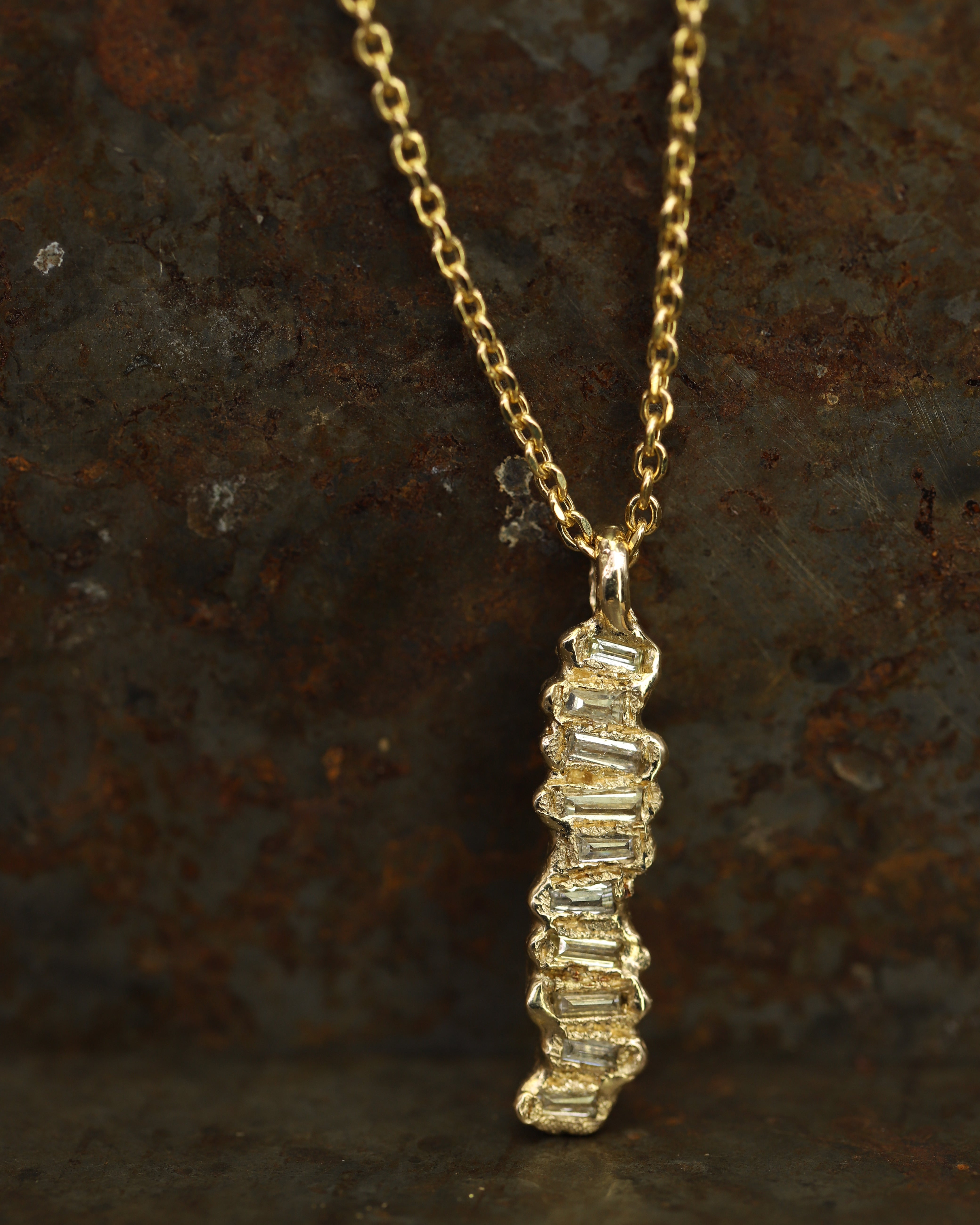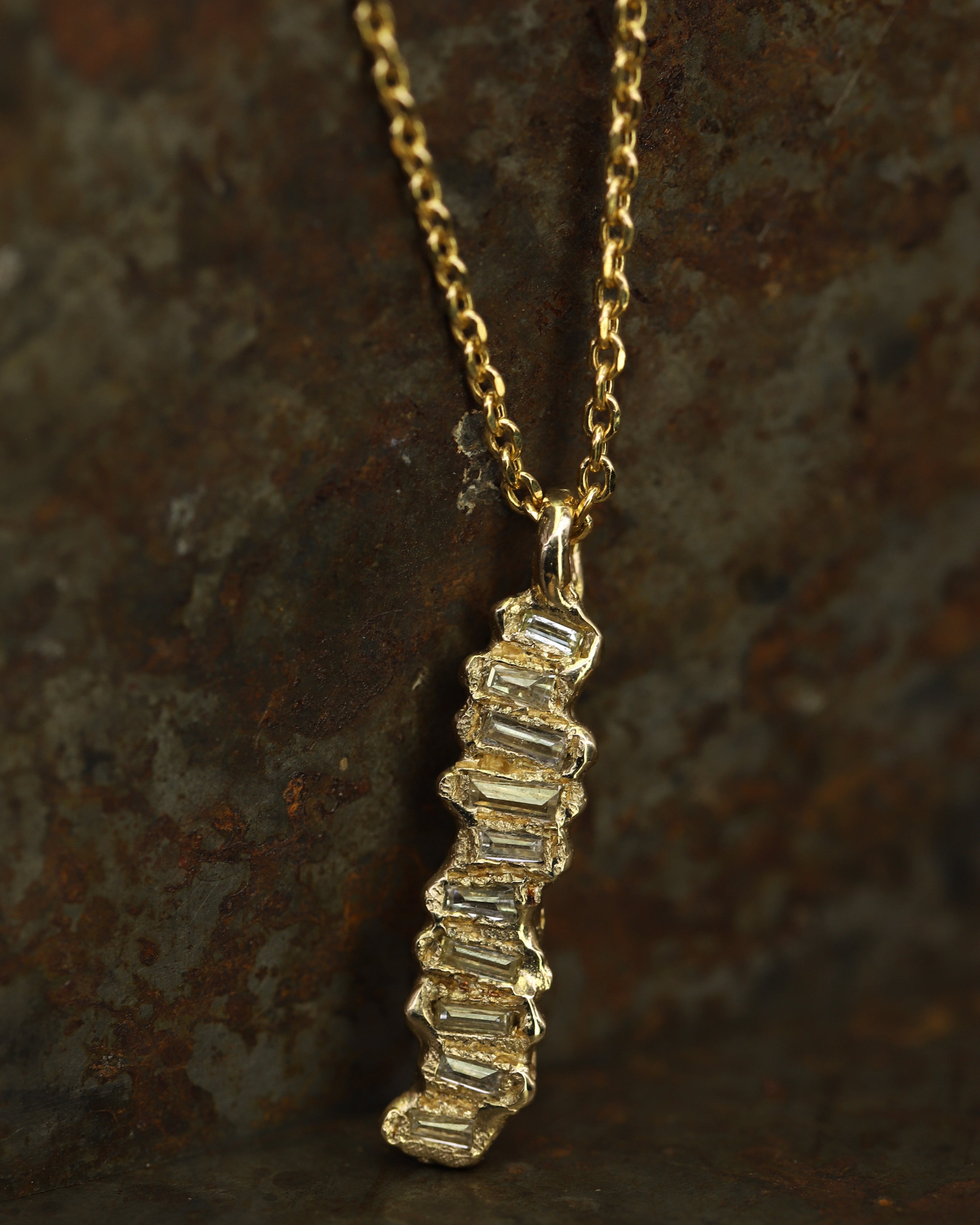 The X Lemon Baguette Diamond Scatter Extra Large Pendant Necklace is inspired by the medieval jewellery hoards which have been found across Scotland.