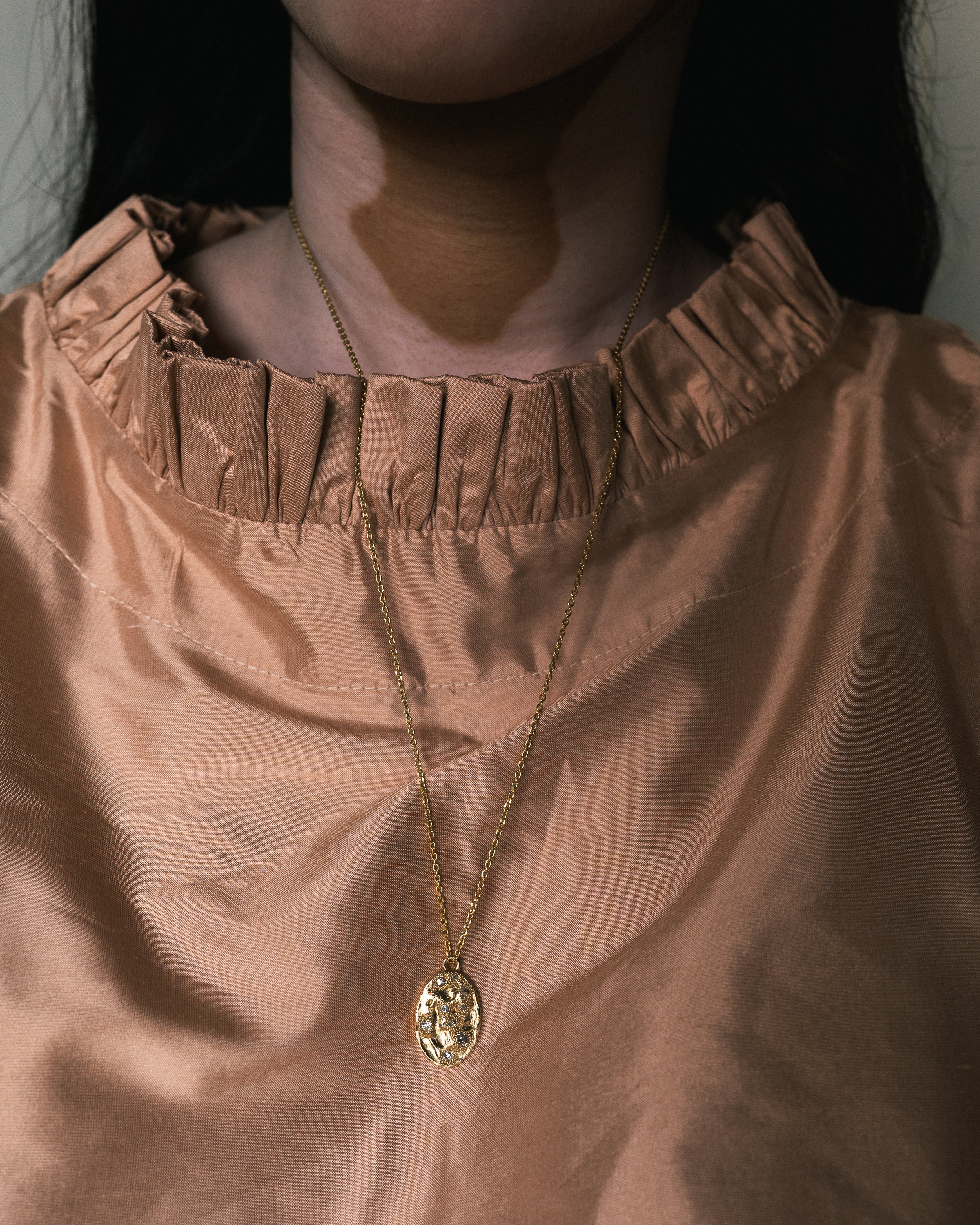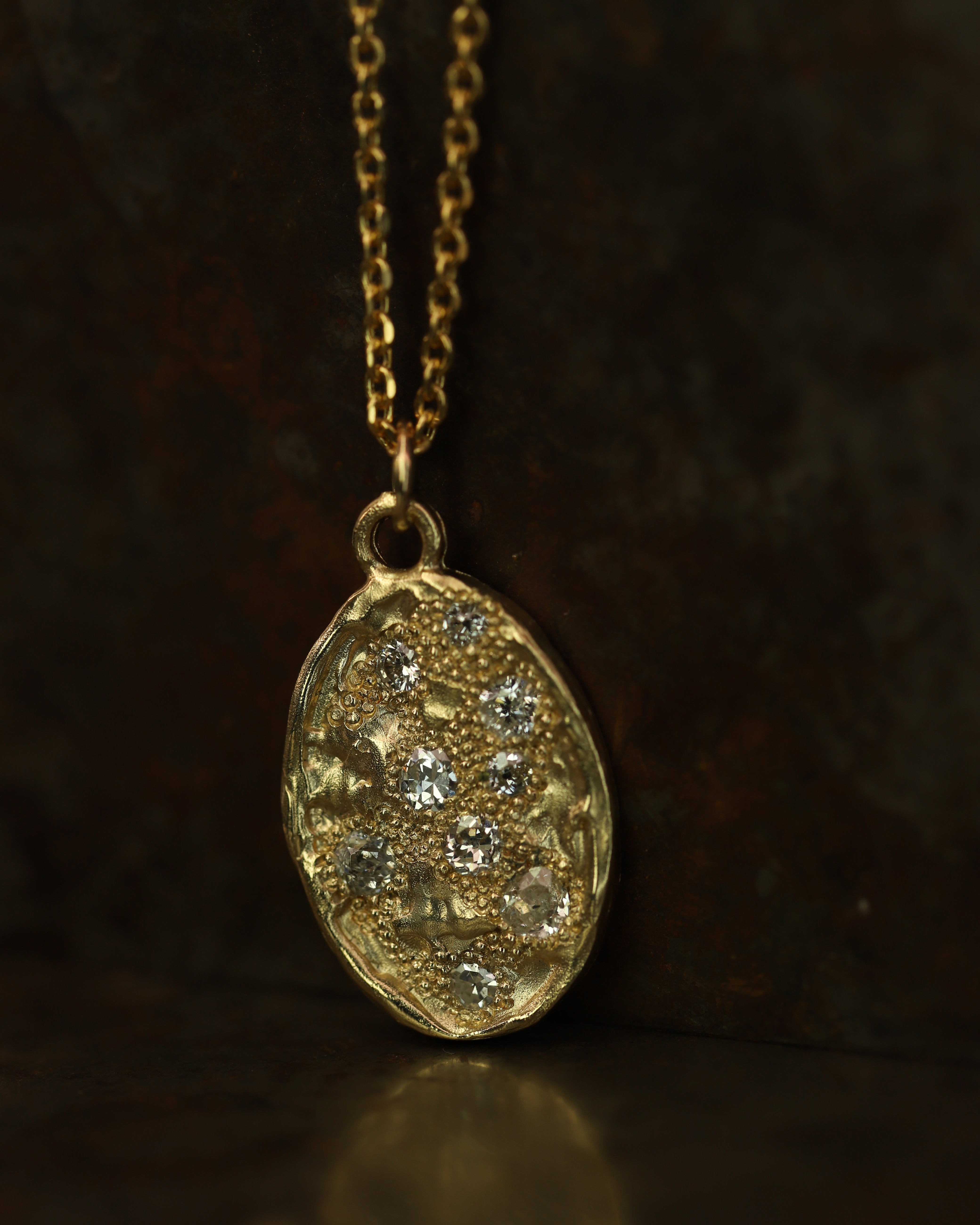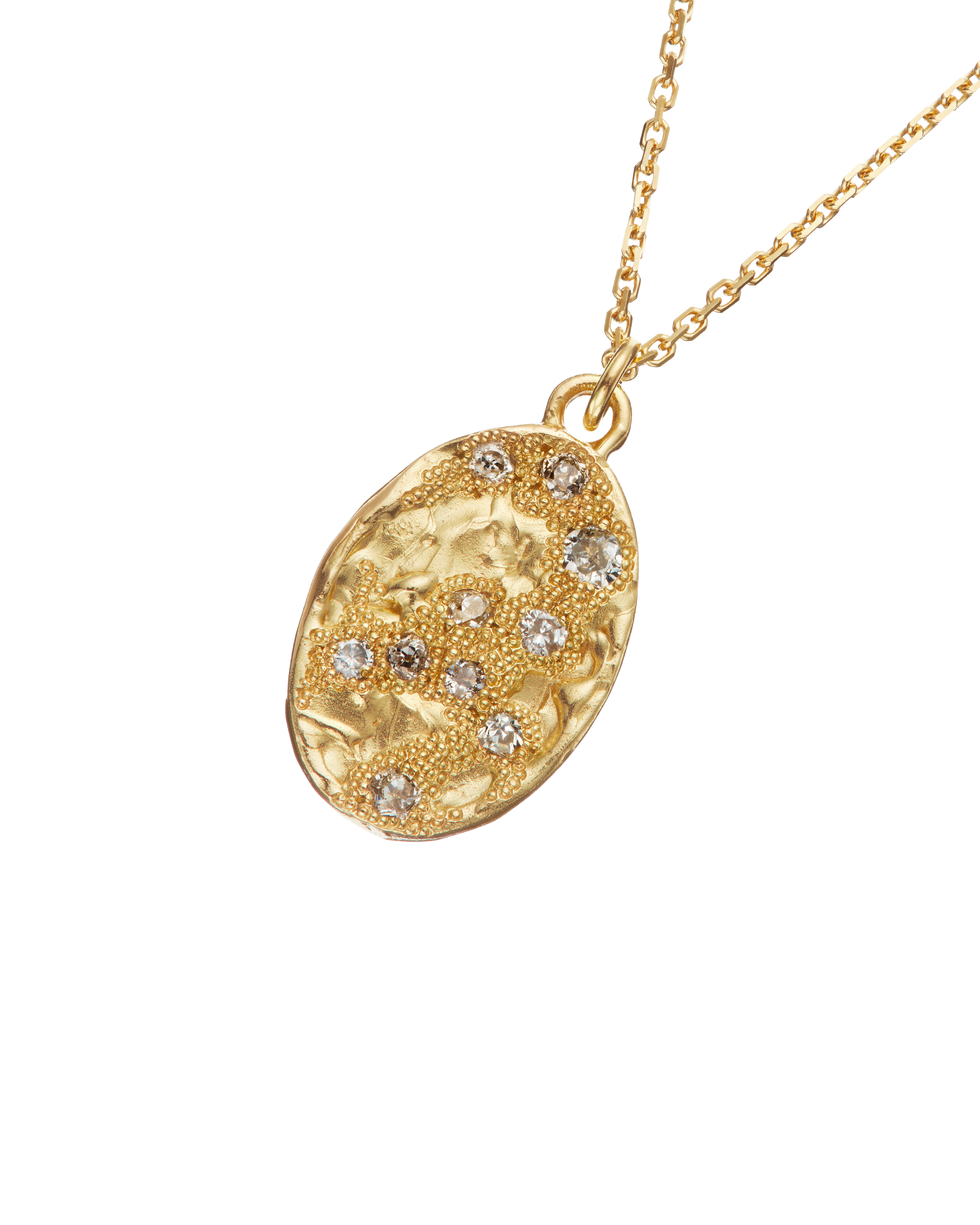 The X Old Cut Large Oval Pendant Necklace is inspired by the medieval jewellery hoards which have been found across Scotland.