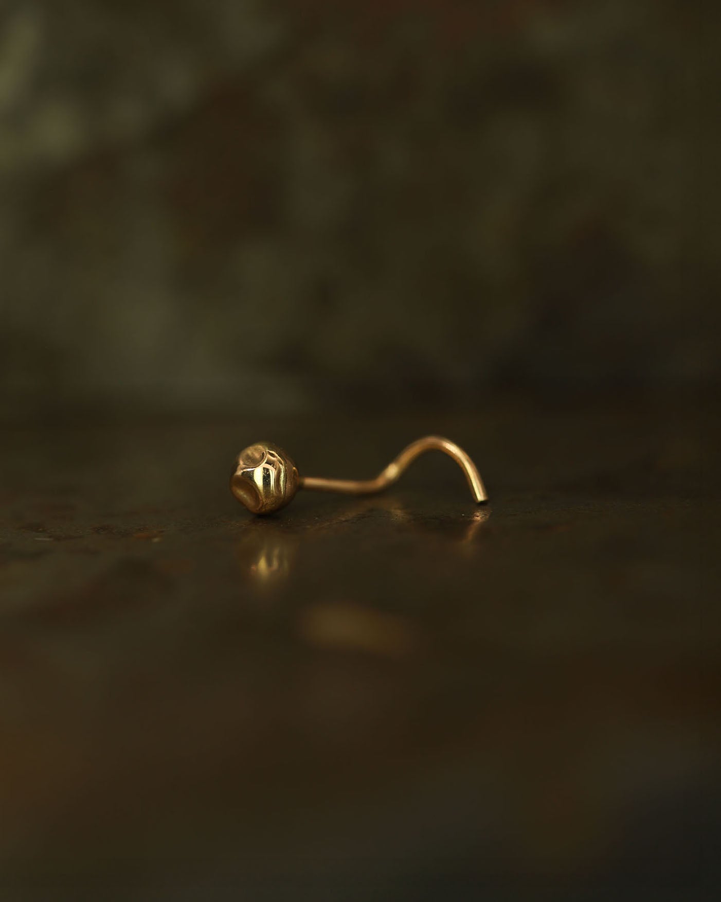 Hollow and lightweight, the subtle texture of the nose stud catches in the light.