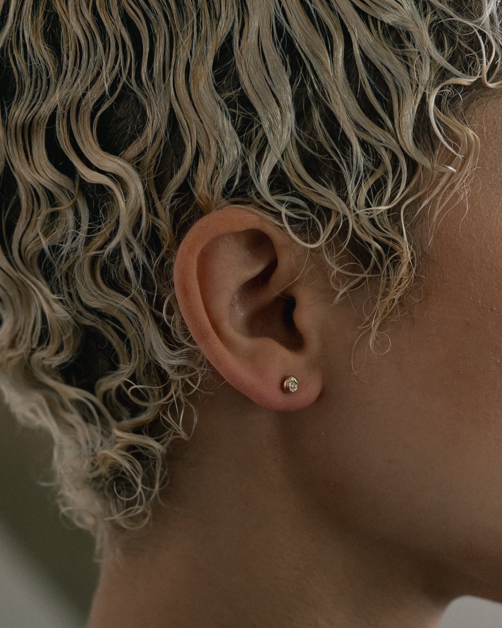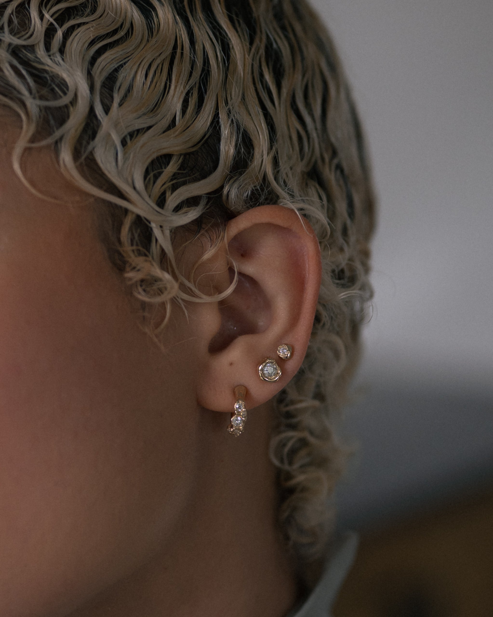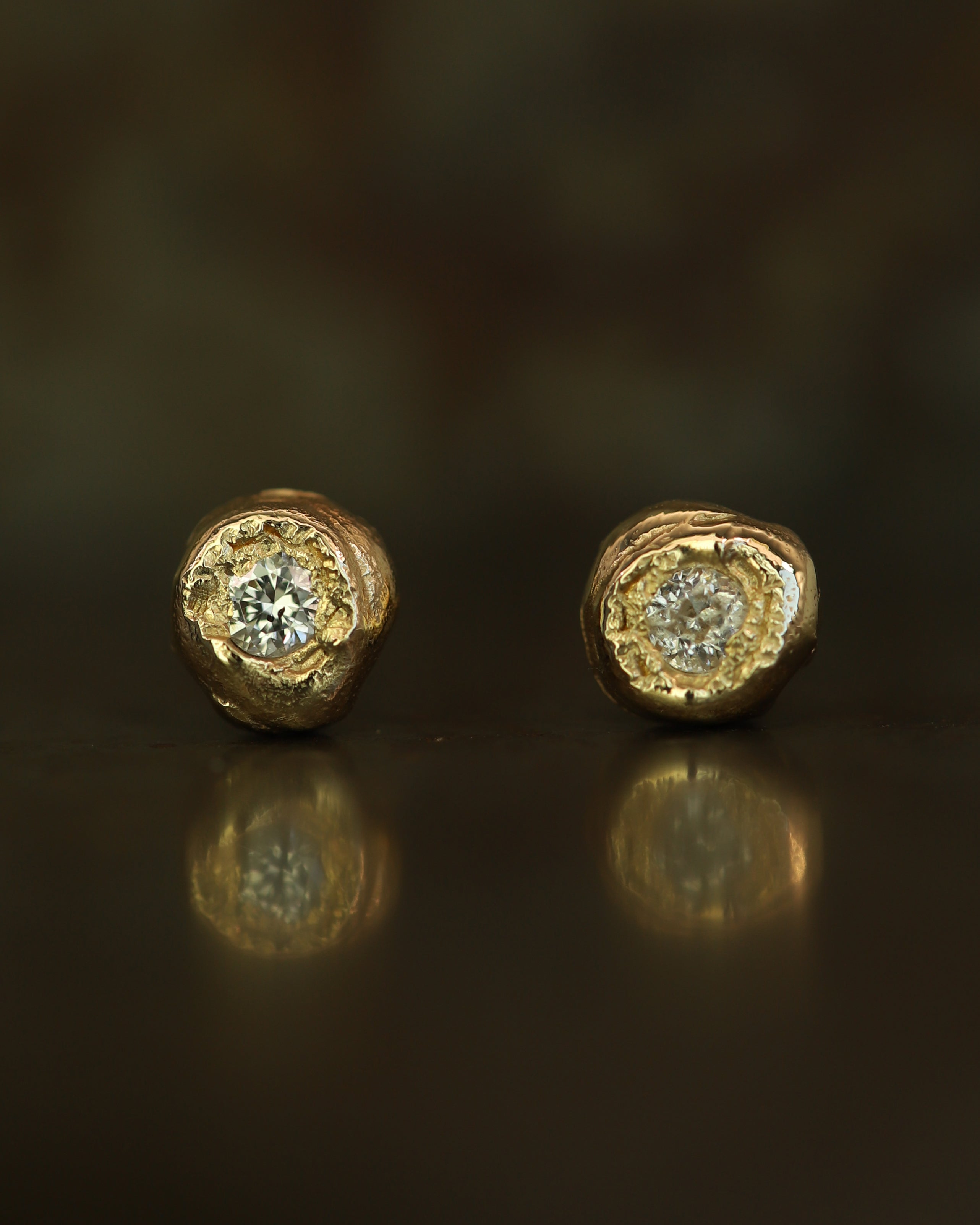 Intricately detailed, the subtle texture of the earrings catch in the light, contrasting with the diamonds. Perfect as everyday earrings. Wear solo, or pair with larger studs in the collection for a fully curated ear.