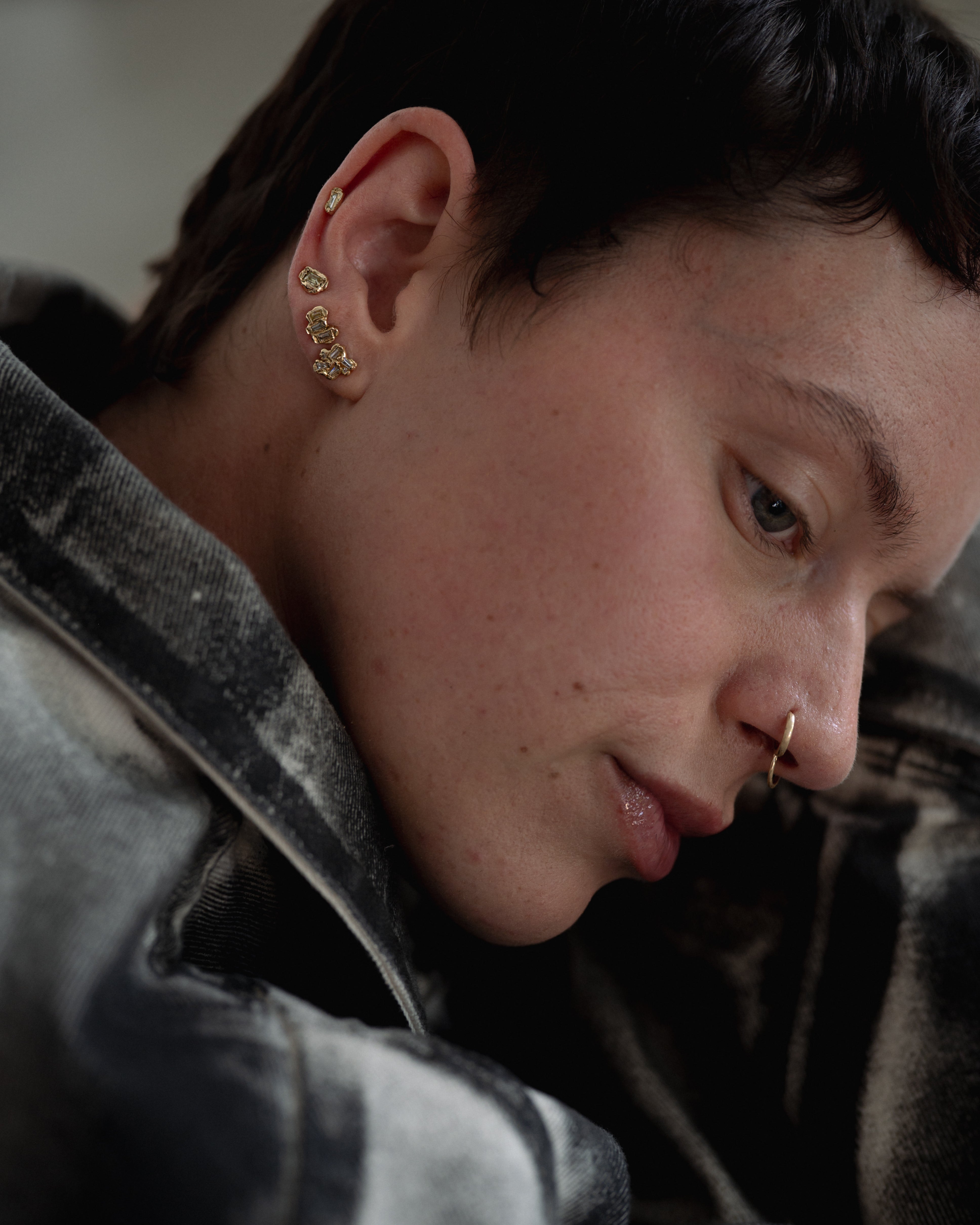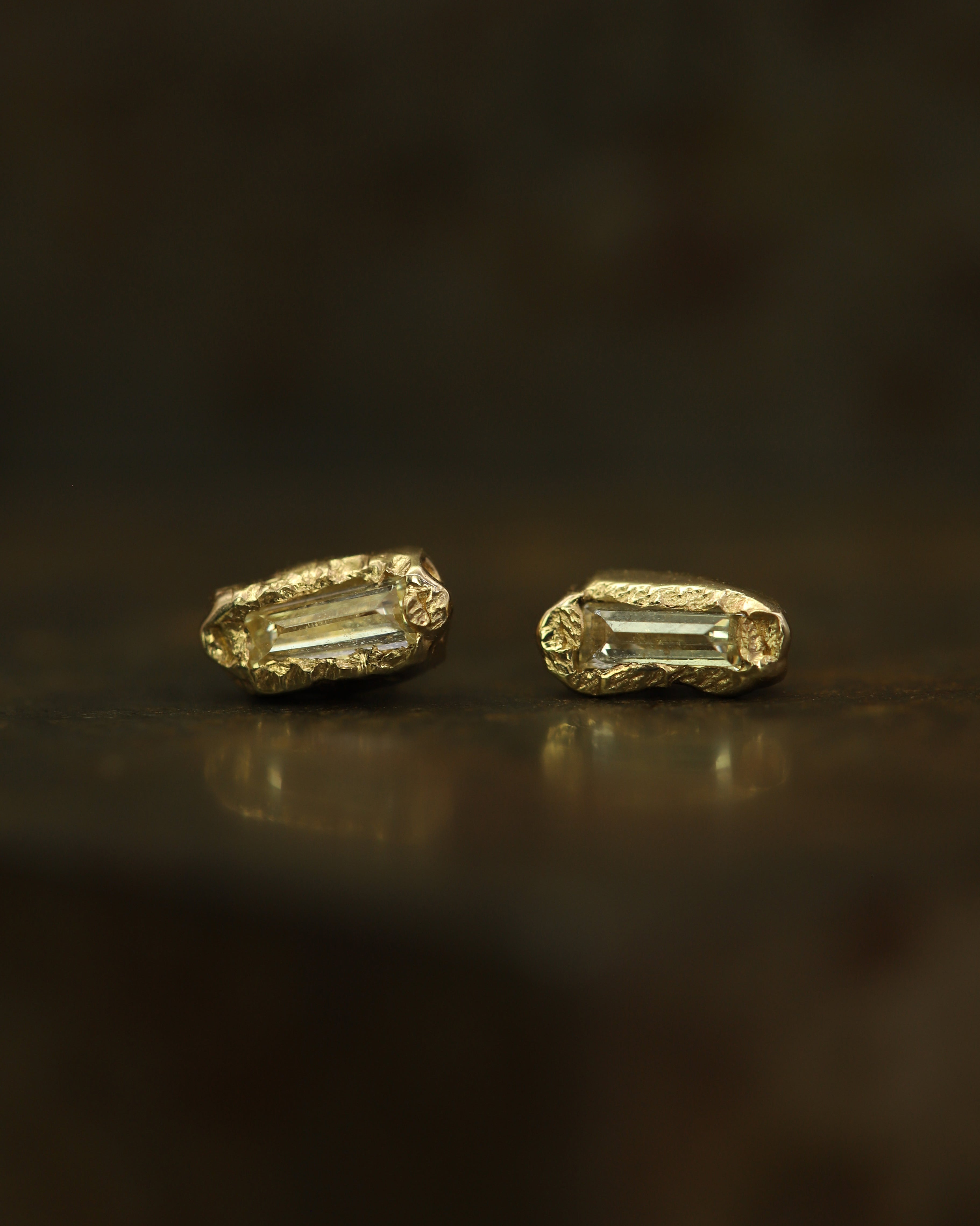 The X Baguette Lemon Diamond Scatter Extra Small Stud Earrings are inspired by the medieval jewellery hoards which have been found across Scotland.