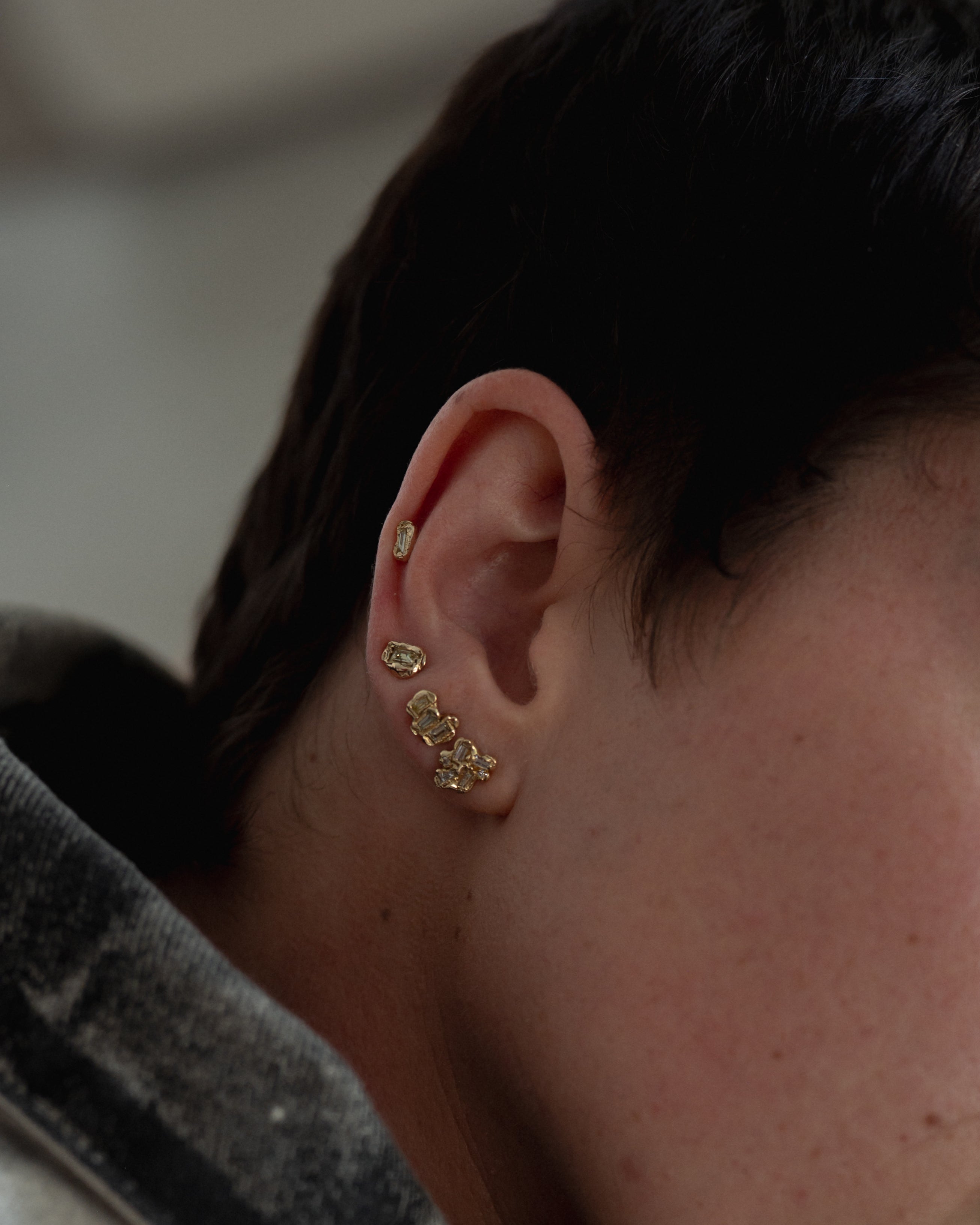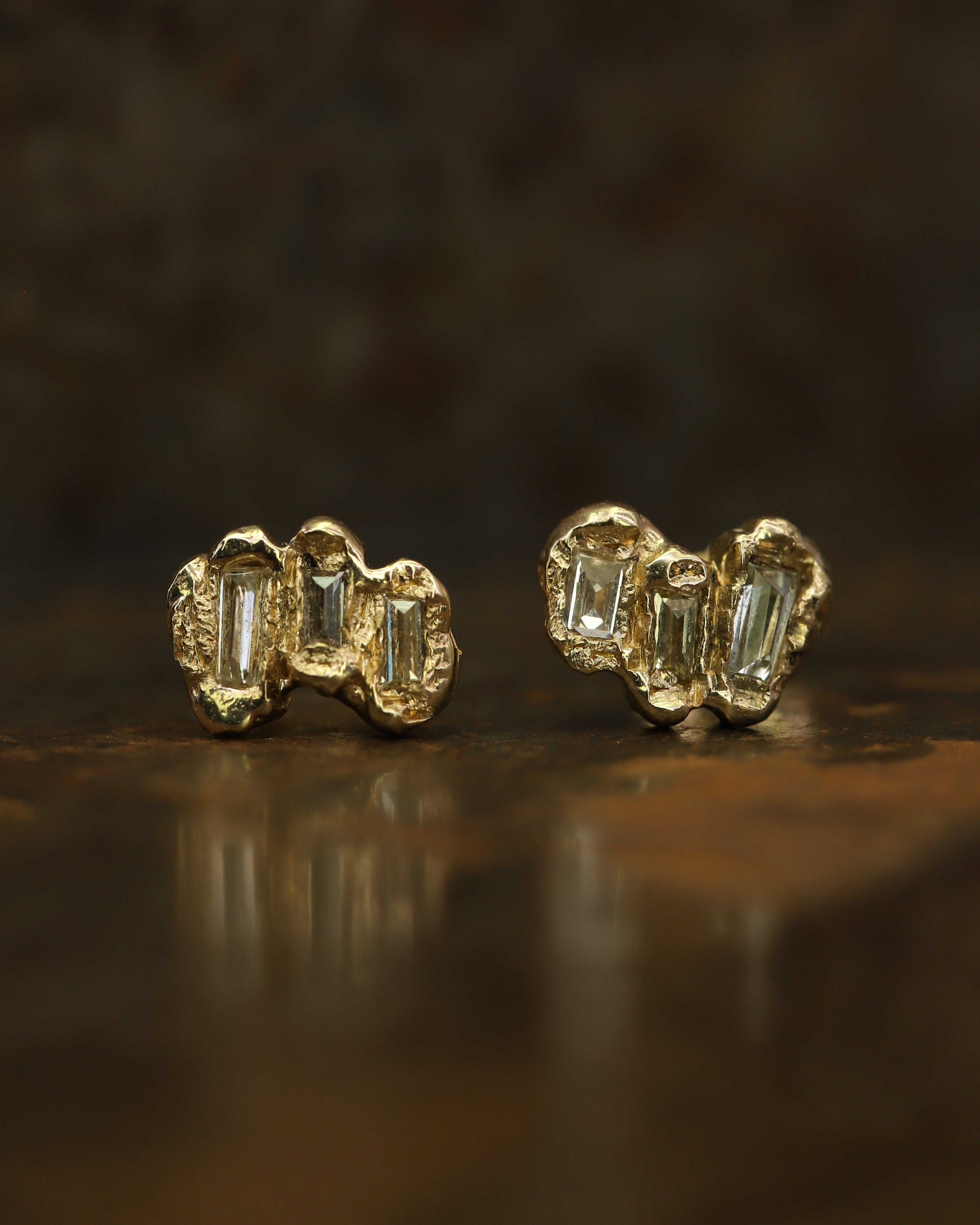 The X Baguette Lemon Diamond Scatter Medium Stud Earrings are inspired by the medieval jewellery hoards which have been found across Scotland.