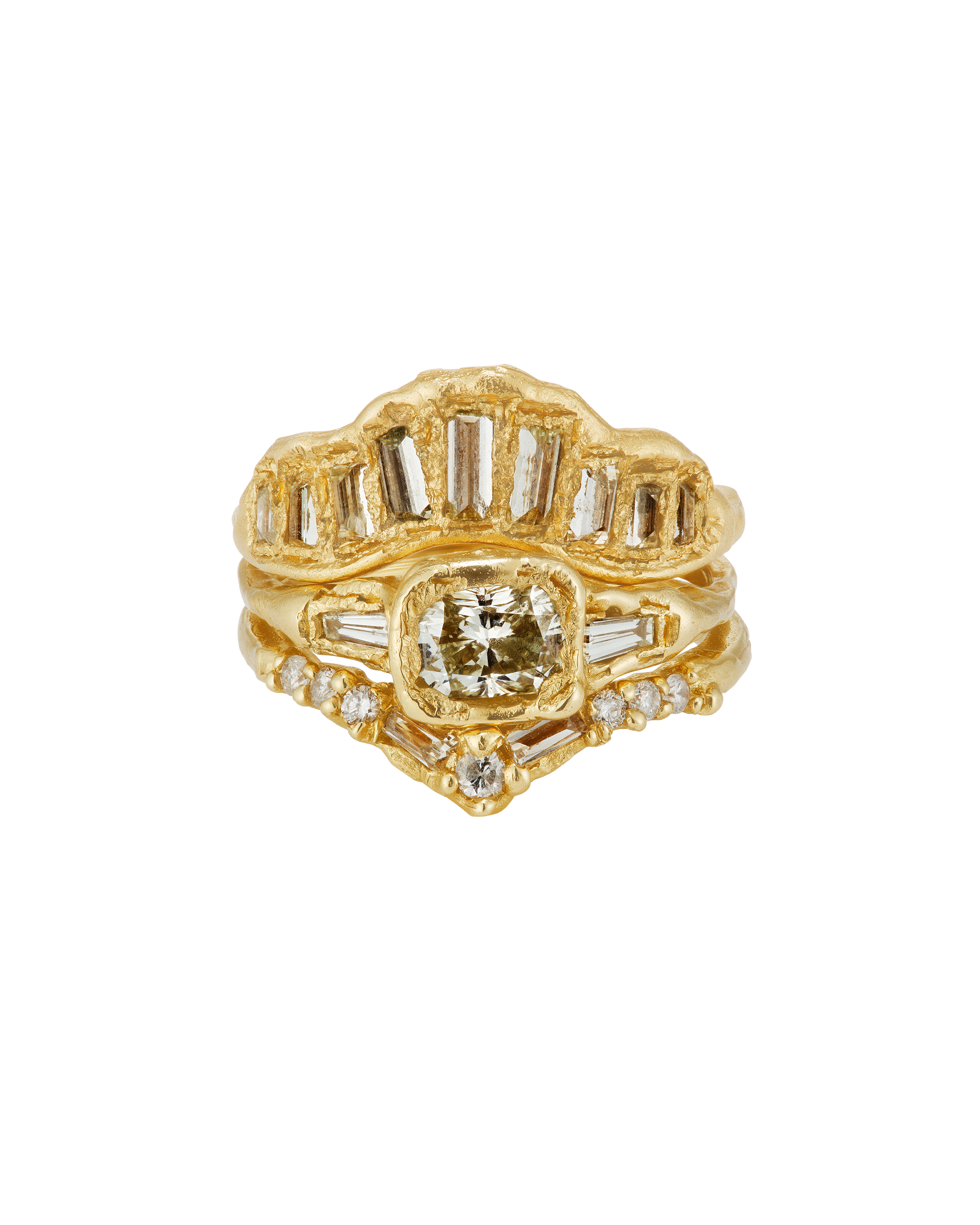 A set of three rings from across our collections; the perfect stack to mark a milestone.