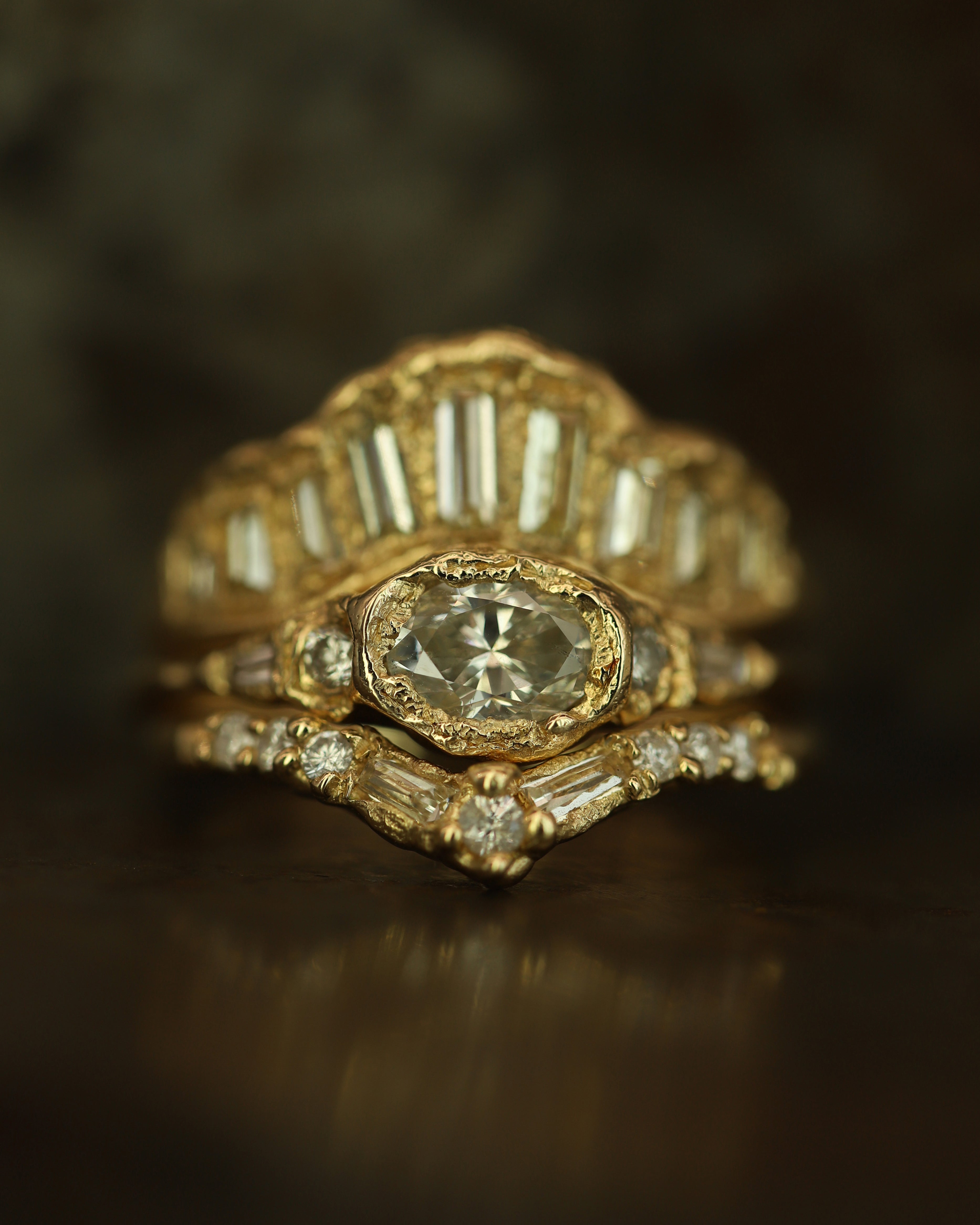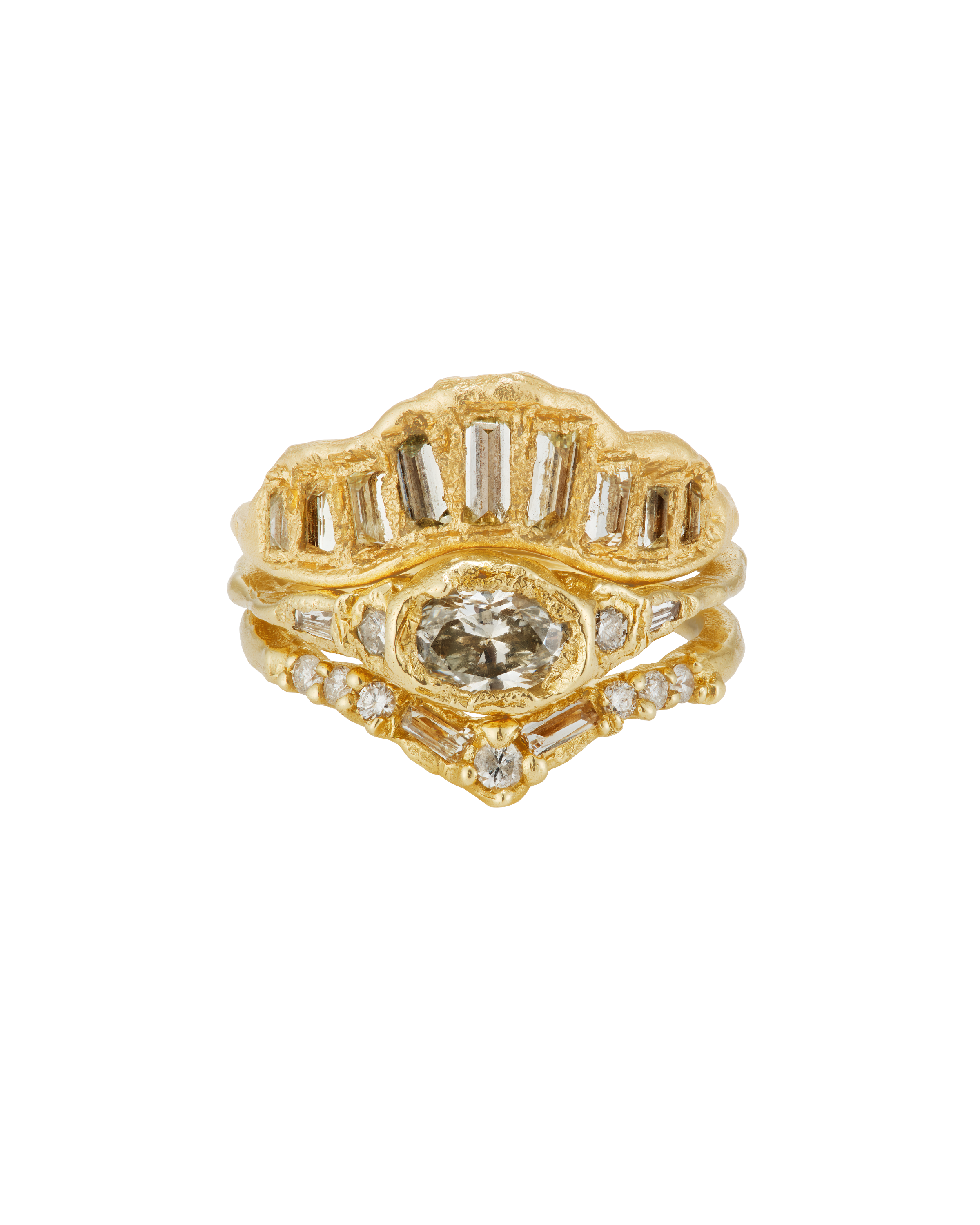 A set of three rings from across our collections; the perfect stack to mark a milestone.