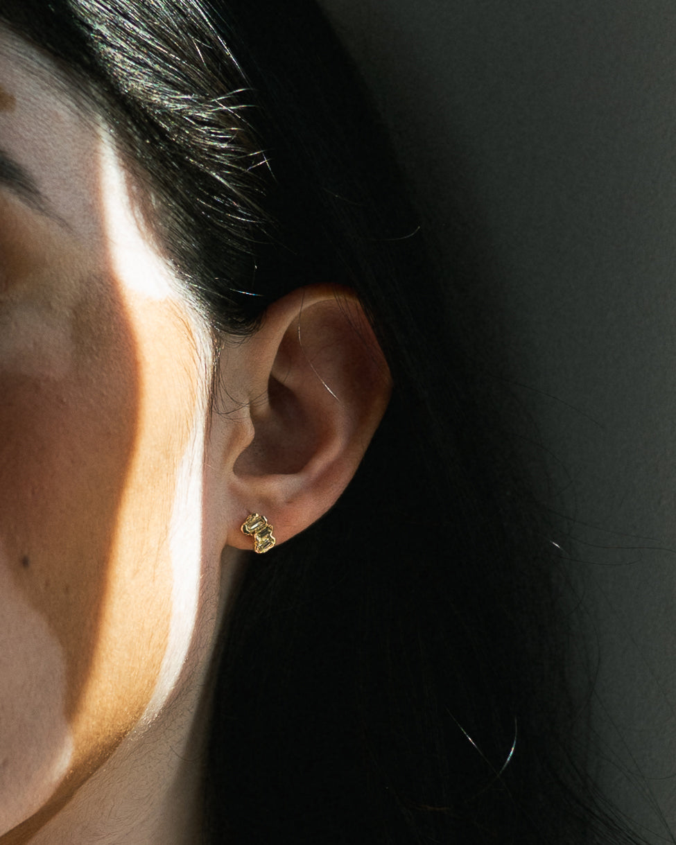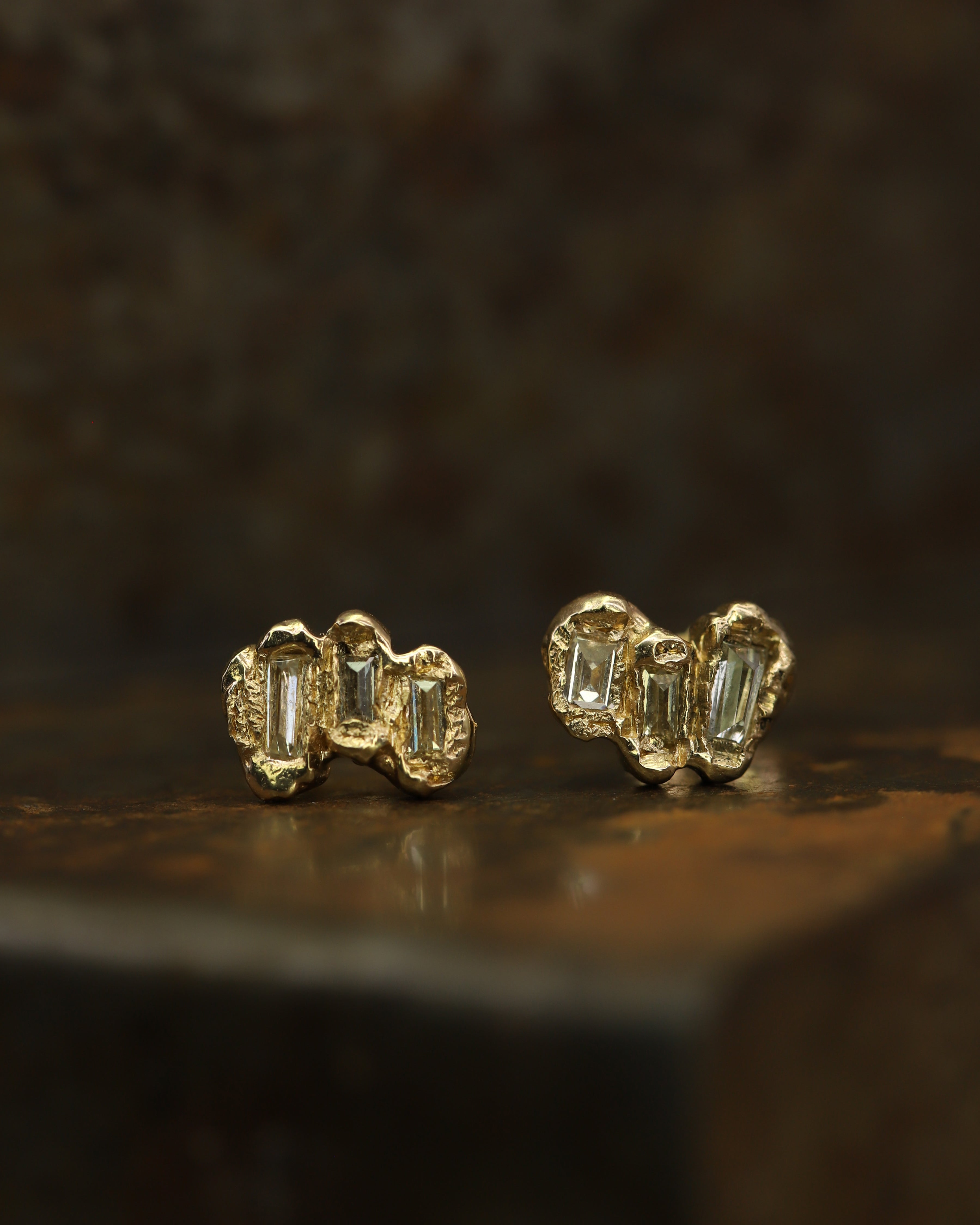 The X Lemon Baguette Diamond Scatter Medium Stud Earrings are inspired by the medieval jewellery hoards which have been found across Scotland.