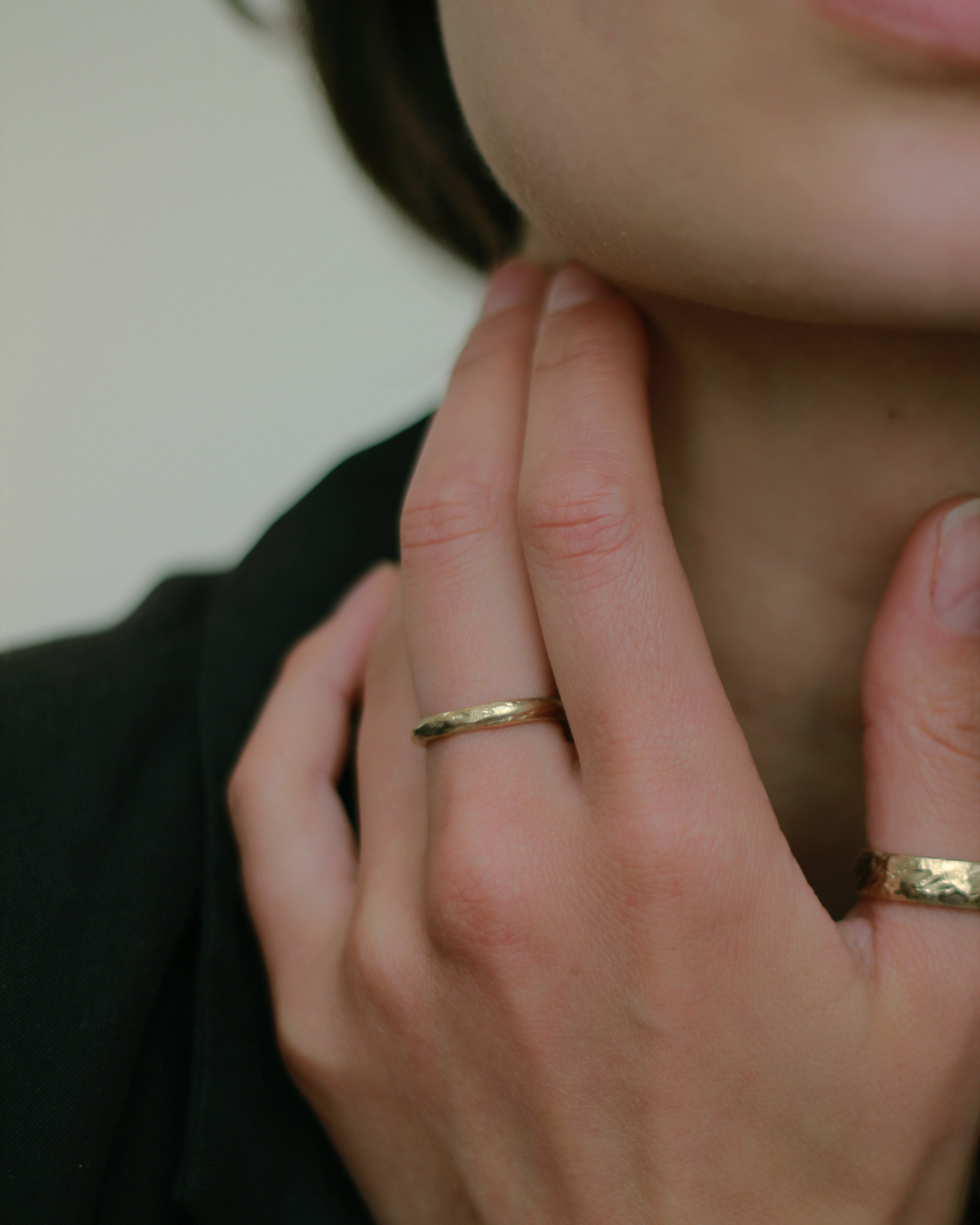 The LXIV 3mm Gold D Shape Wedding Band is inspired by the medieval jewellery hoards which have been found across Scotland. A heavy weight band; the molten, organic texture and heavier weight means the gives the ring a very textural aesthetic. Perfect as an alternative wedding ring.