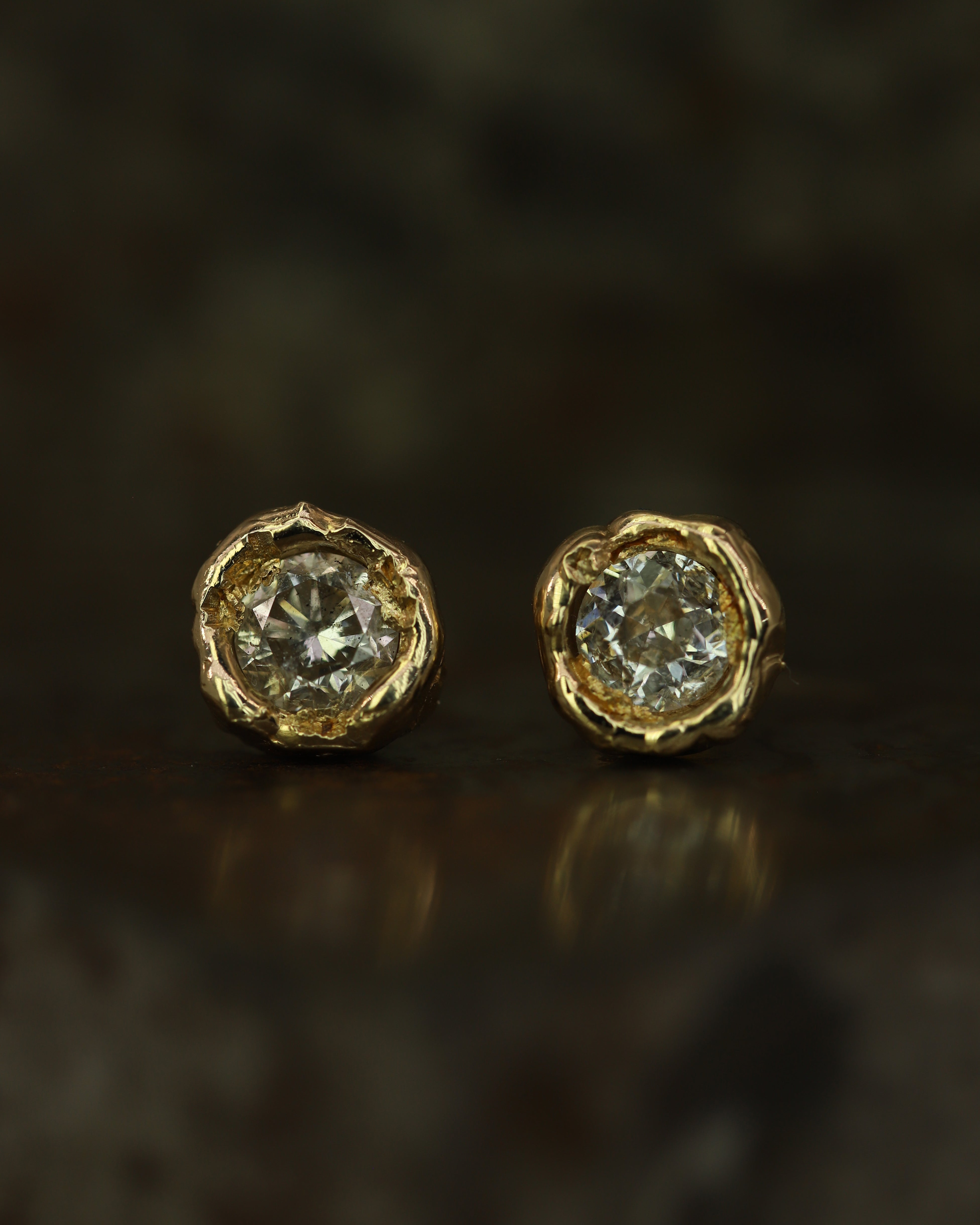 Intricately detailed, the subtle texture of the earrings catch in the light, contrasting with the diamonds. Perfect as everyday earrings, or for special occasions. Wear solo, or pair with other studs in the collection.