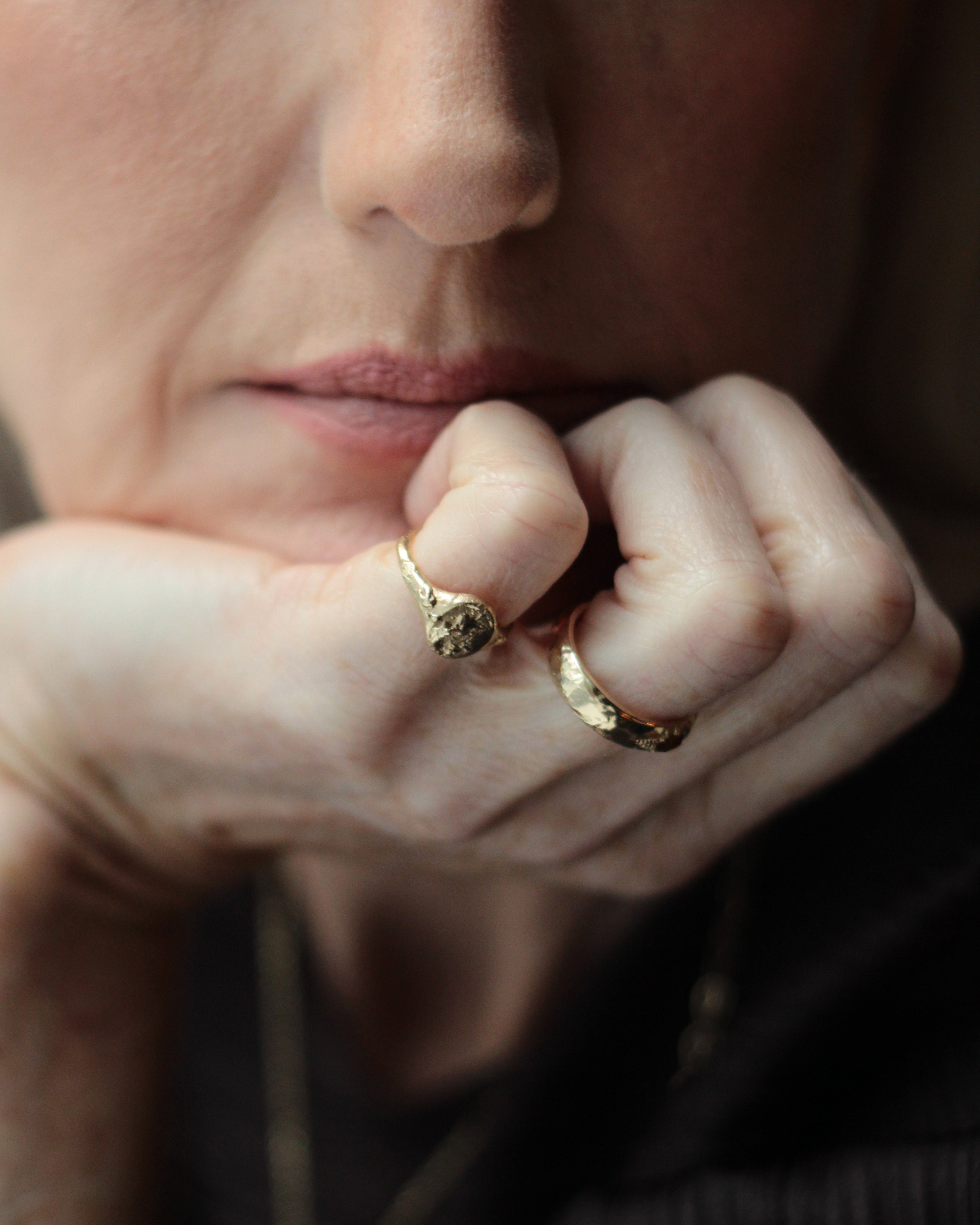 Origins is inspired by Neolithic tools found in the Scottish landscape - objects created for everyday use, shaped by hand, and built to last. This collection focuses on solid gold designs with textural forms and a quiet sense of strength.