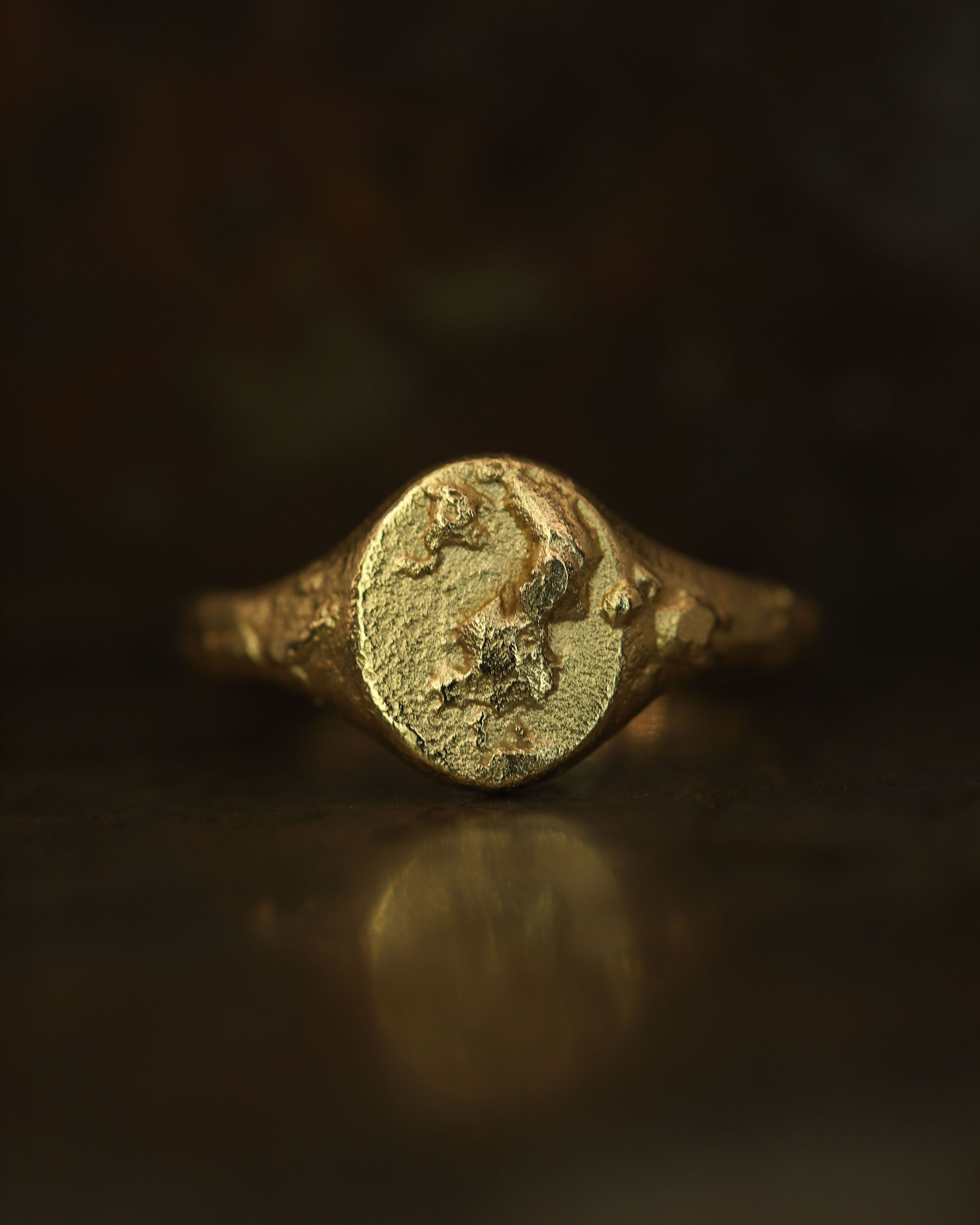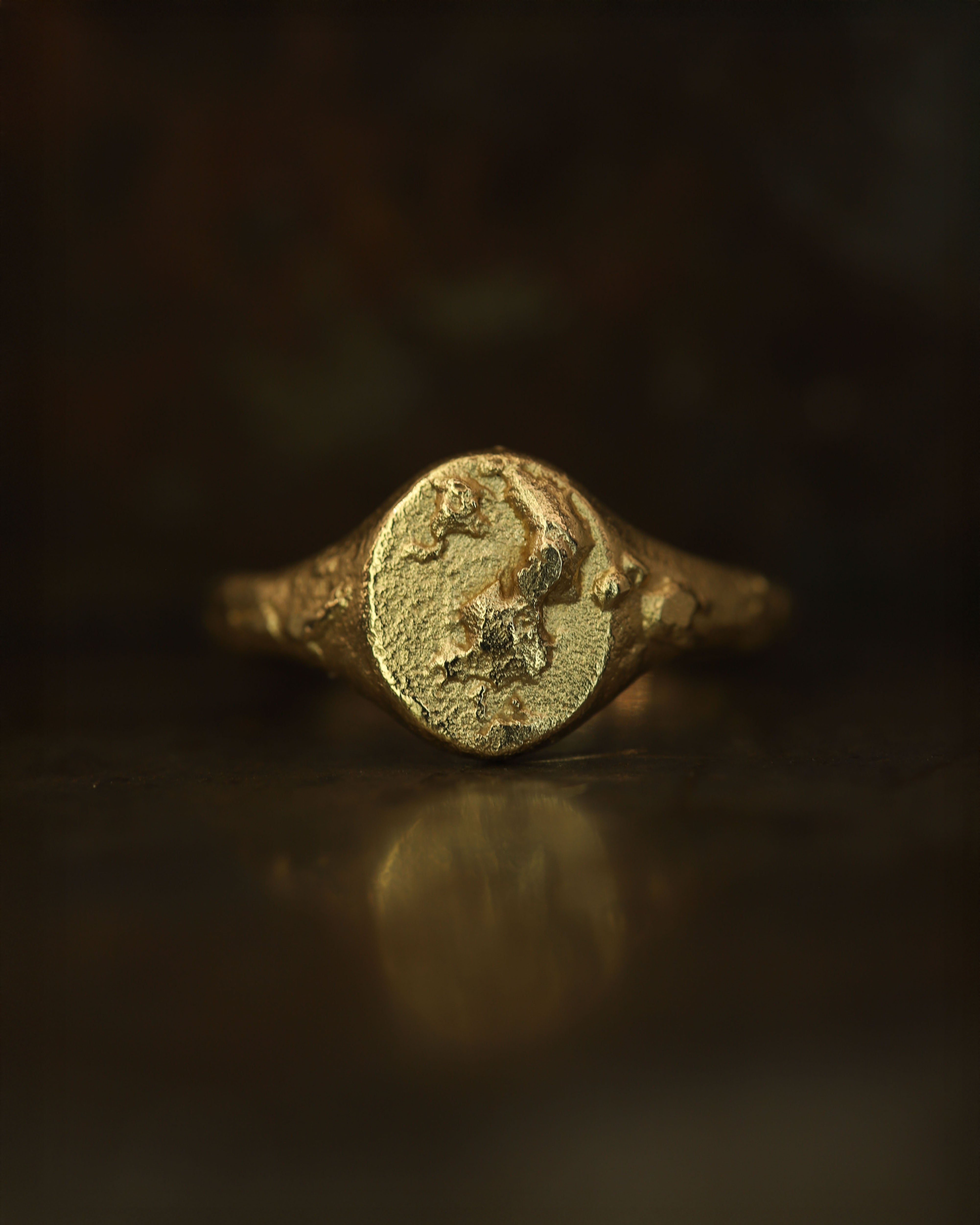 The Mini Signet Ring is inspired by the ancient tools and artefacts excavated within Scotland. A classic signet style, reimagined in molten gold.