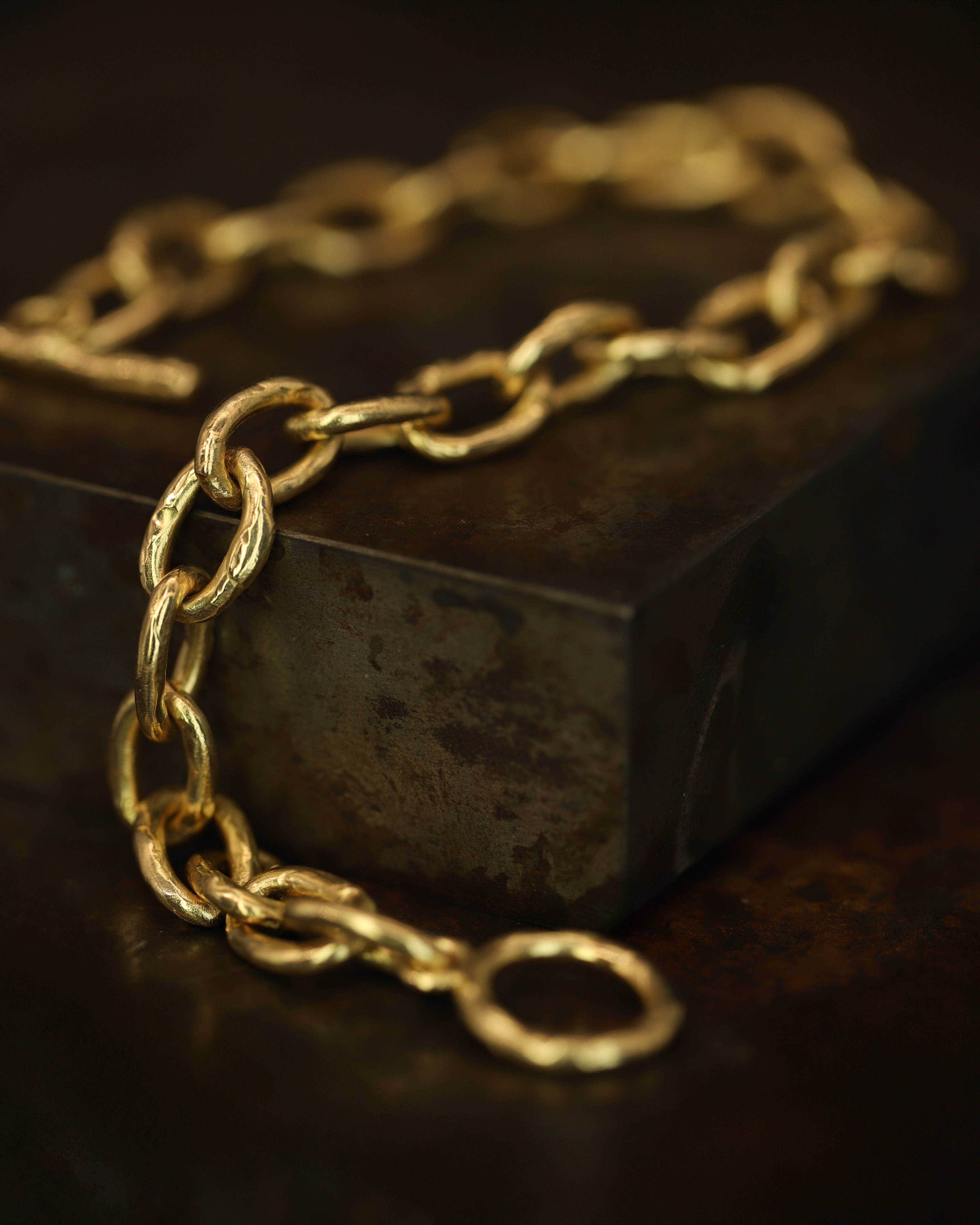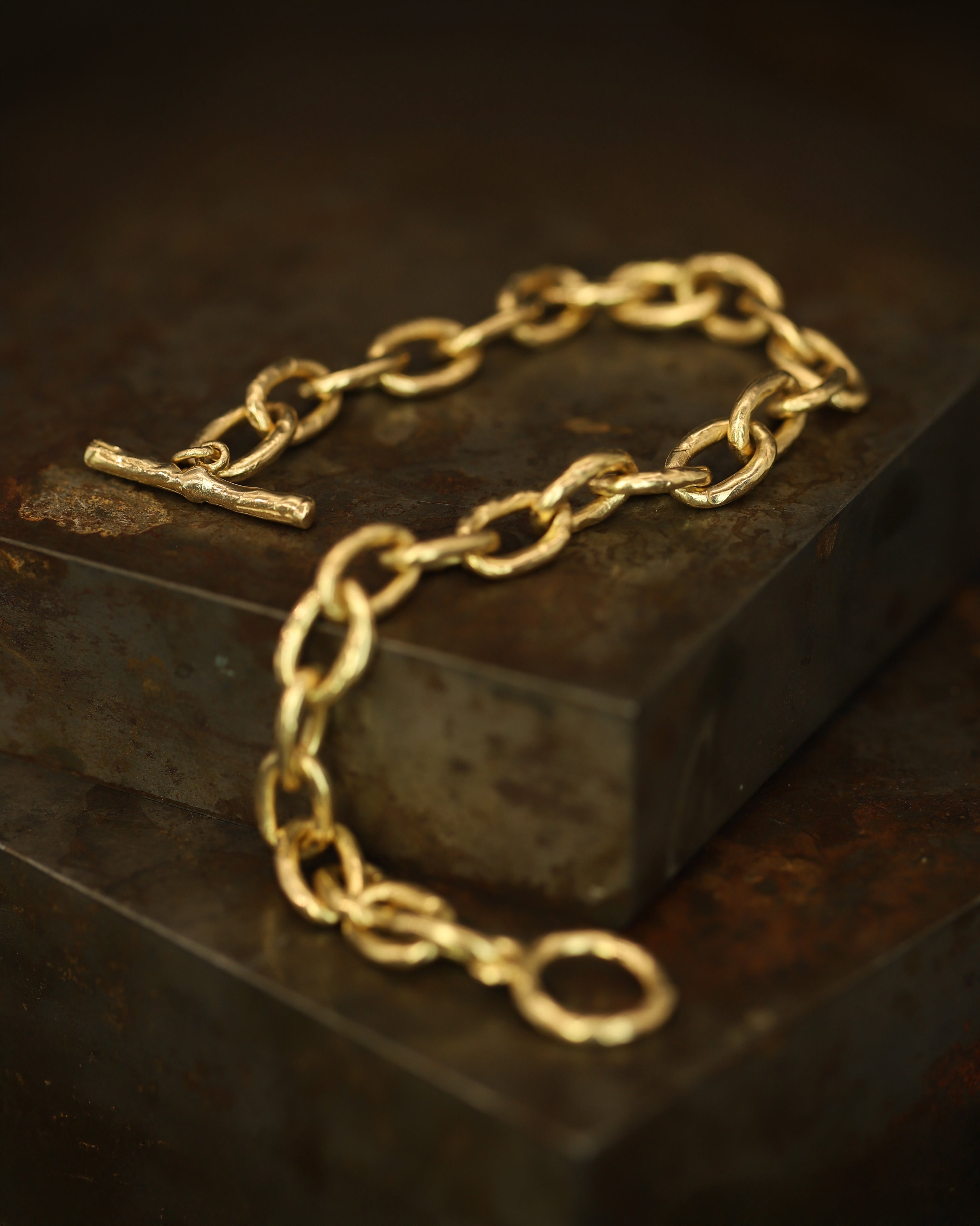 The X Molten Gold Link Chain Bracelet is inspired by the medieval jewellery hoards which have been found across Scotland.