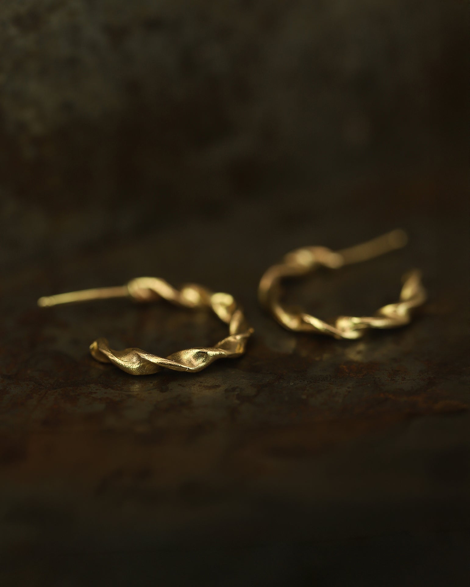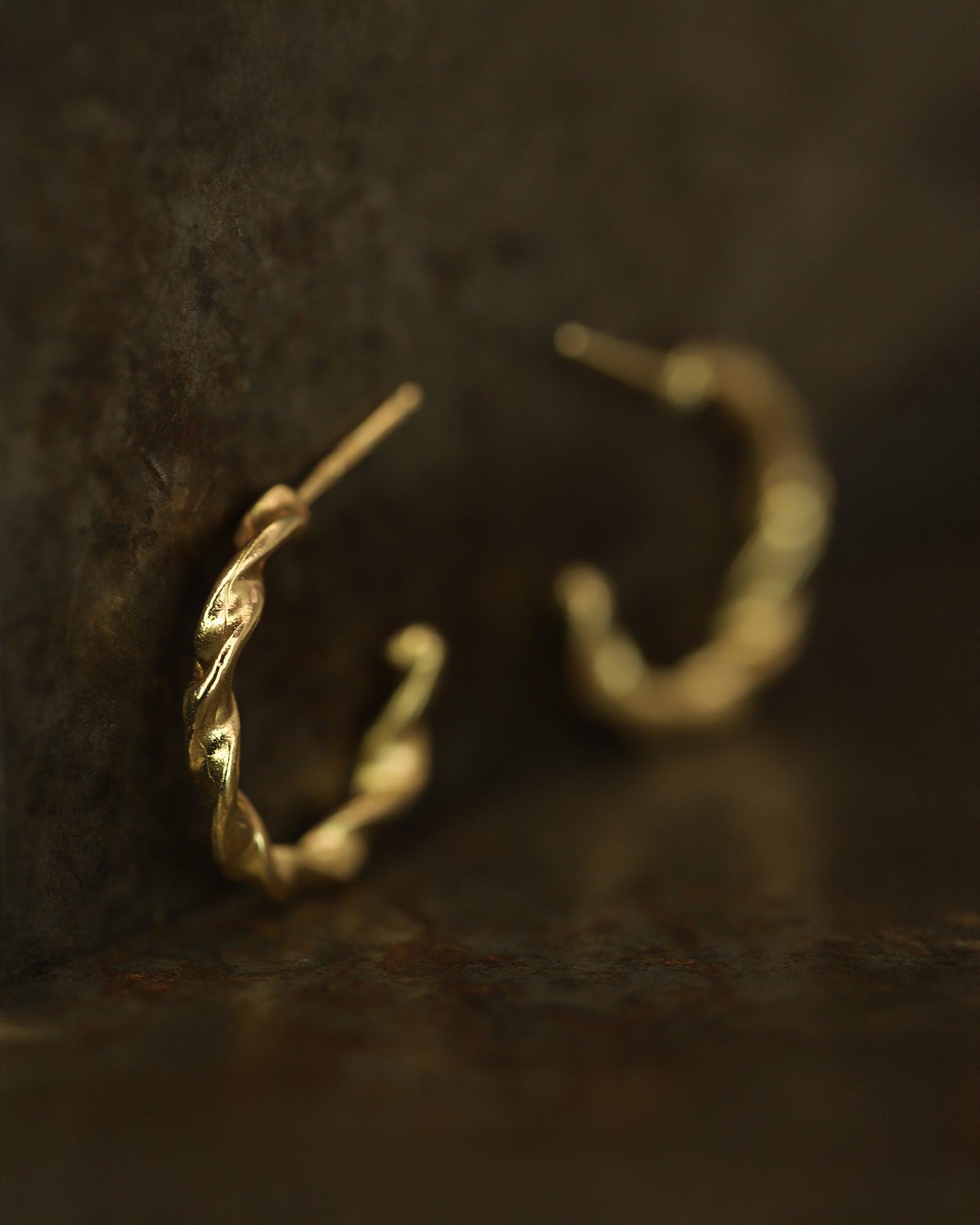 The X Twist Hoop Earrings are inspired by the ancient tools and artefacts excavated within Scotland; remnants of history, reimagined in molten gold. Hand carved in the studio by Ellis.