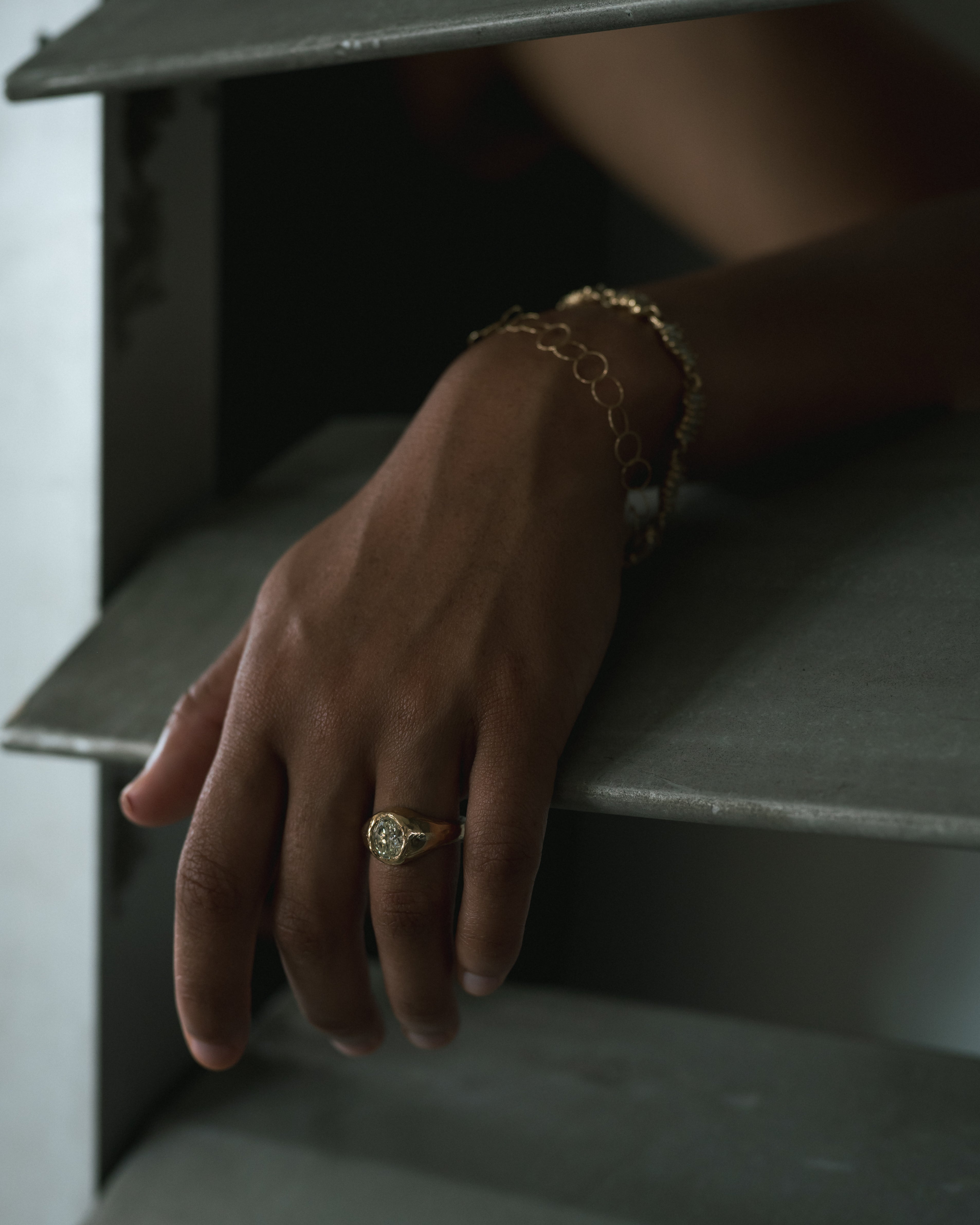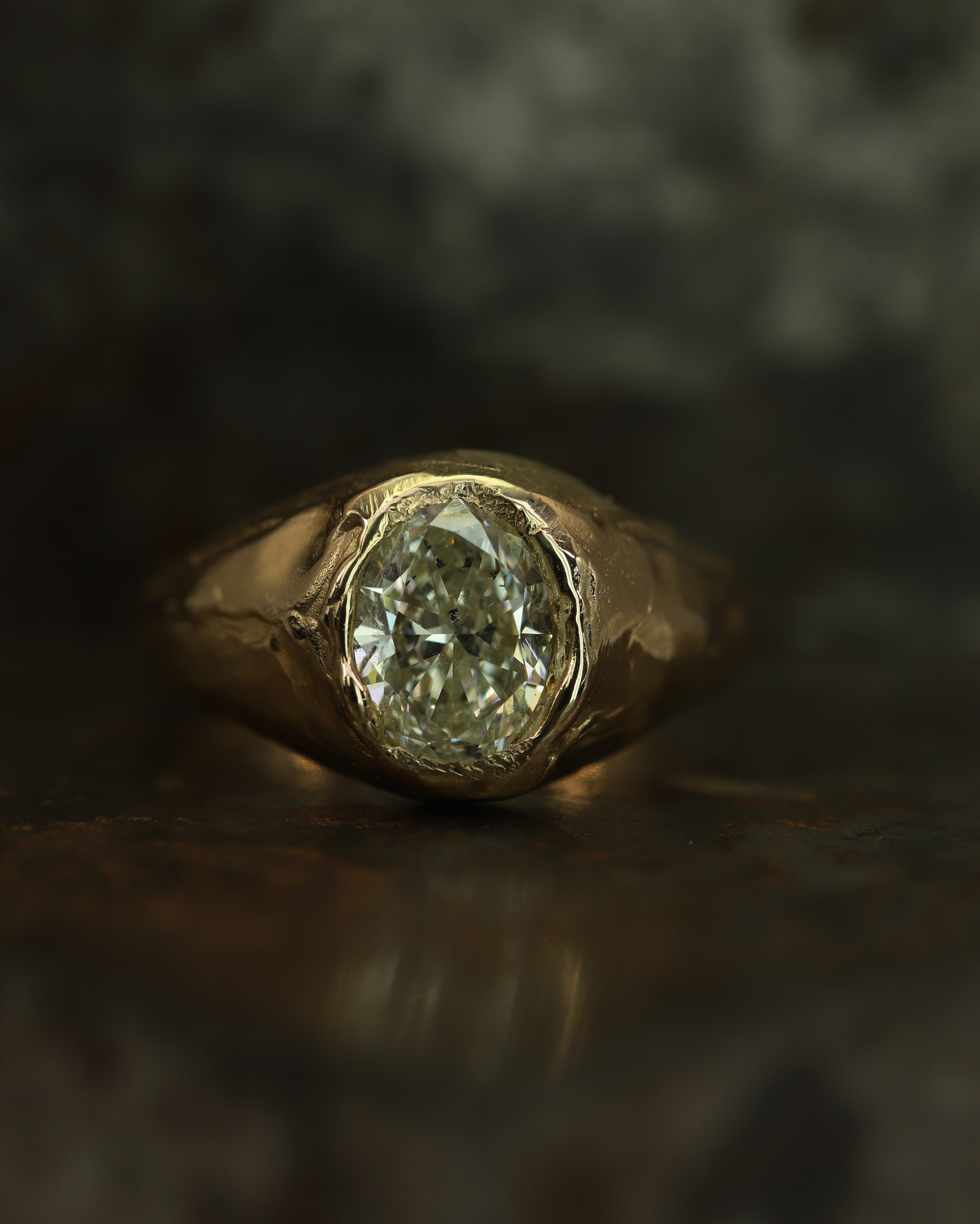 The Armach 2.2ct Oval Lemon Diamond Organic Engagement Signet Ring is inspired by the medieval jewellery hoards which have been found across Scotland.