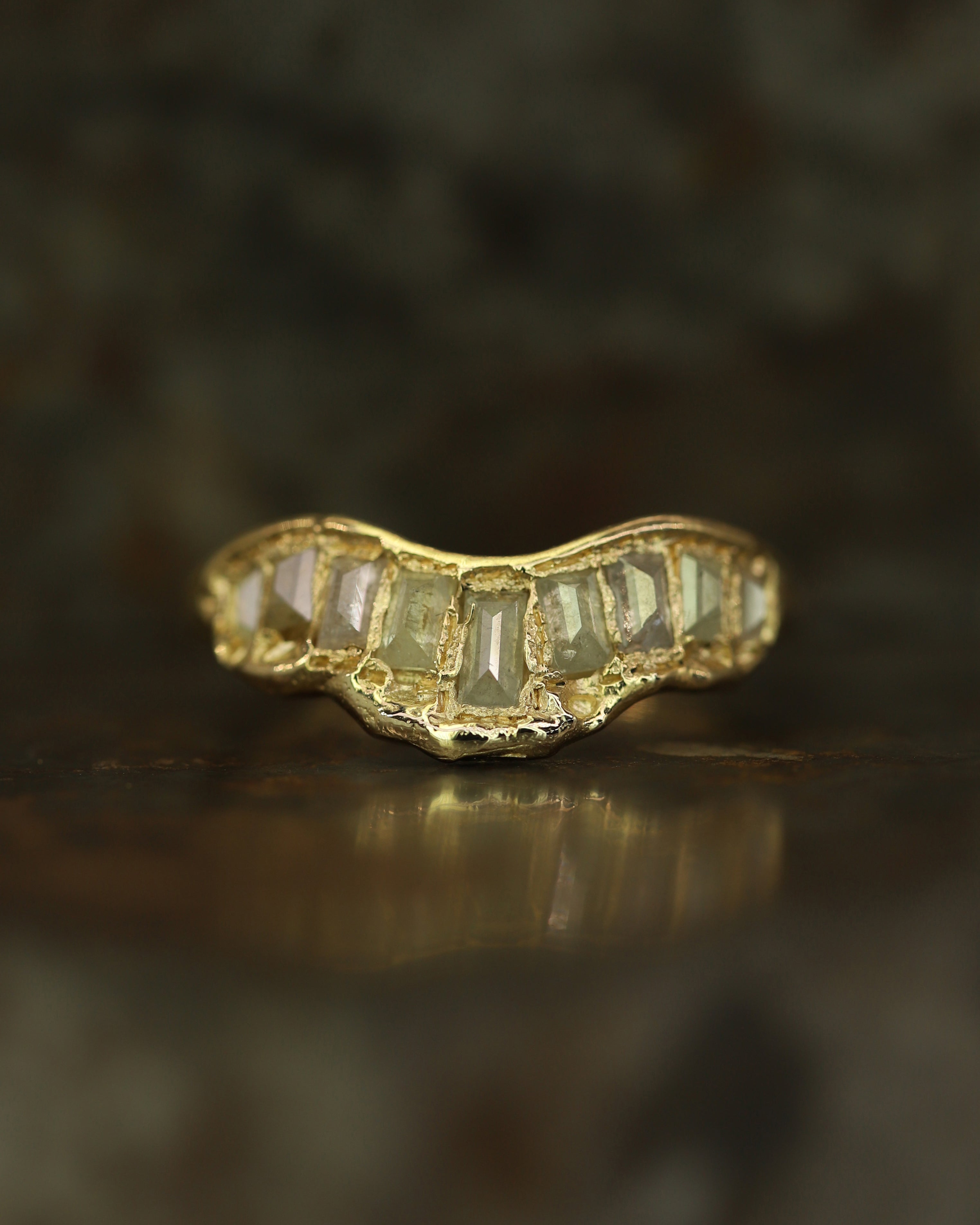 The LXI OOAK Grey Baguette Diamond V Shape Scatter Ring is inspired by the medieval jewellery hoards which have been found across Scotland.