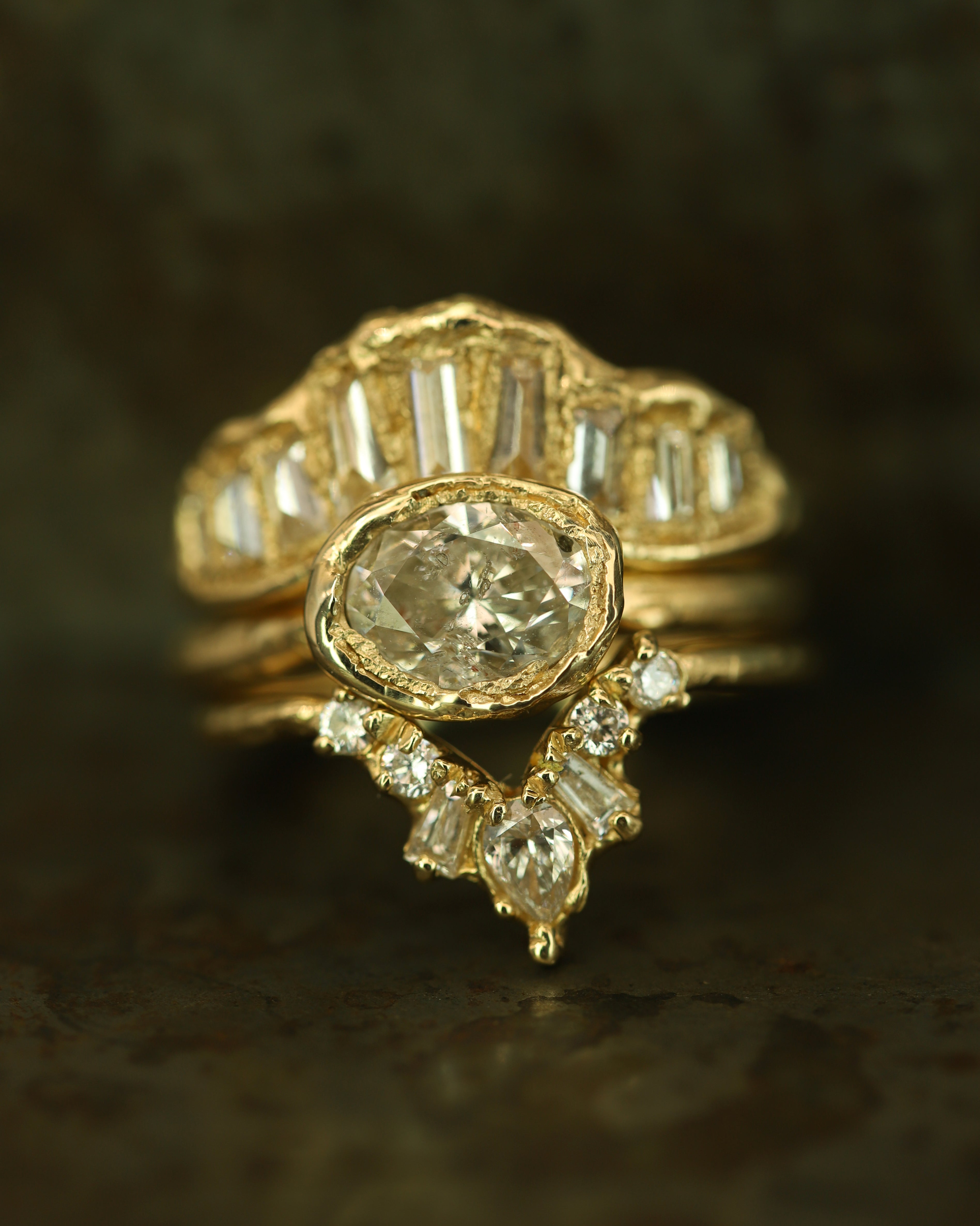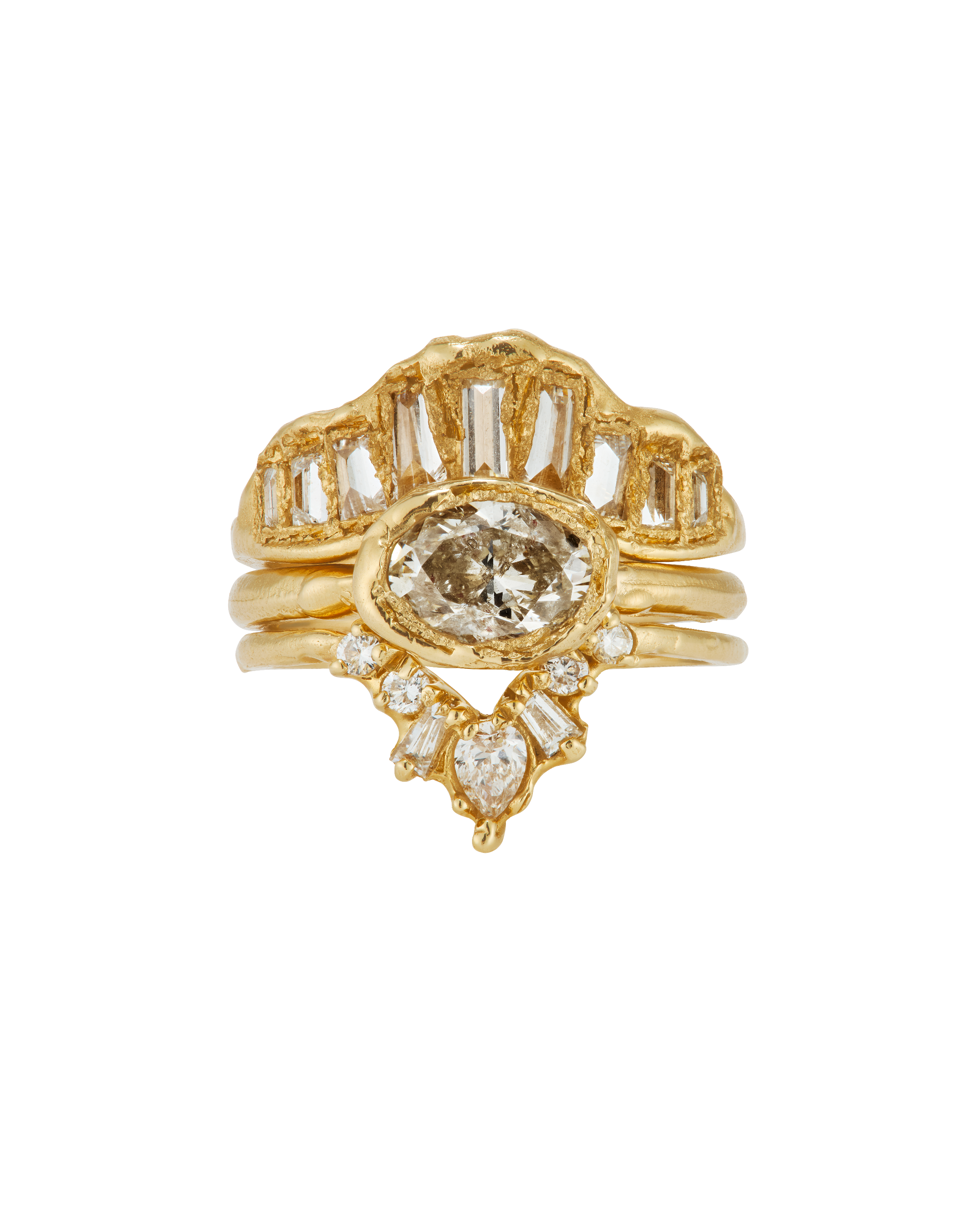 A set of three rings from across our collections; the perfect stack to mark a milestone.