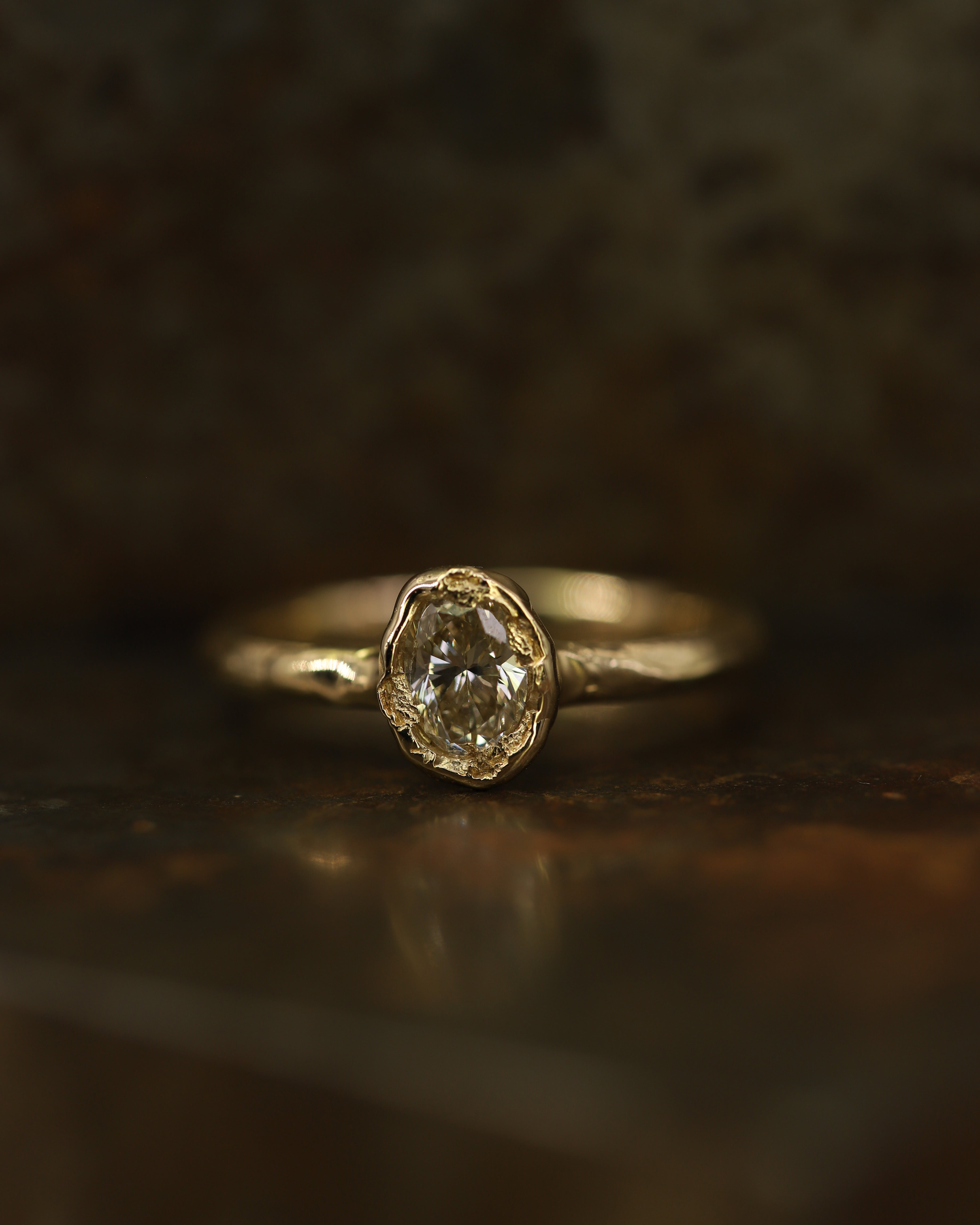 X 0.8ct Oval Champagne Diamond Organic Engagement Ring