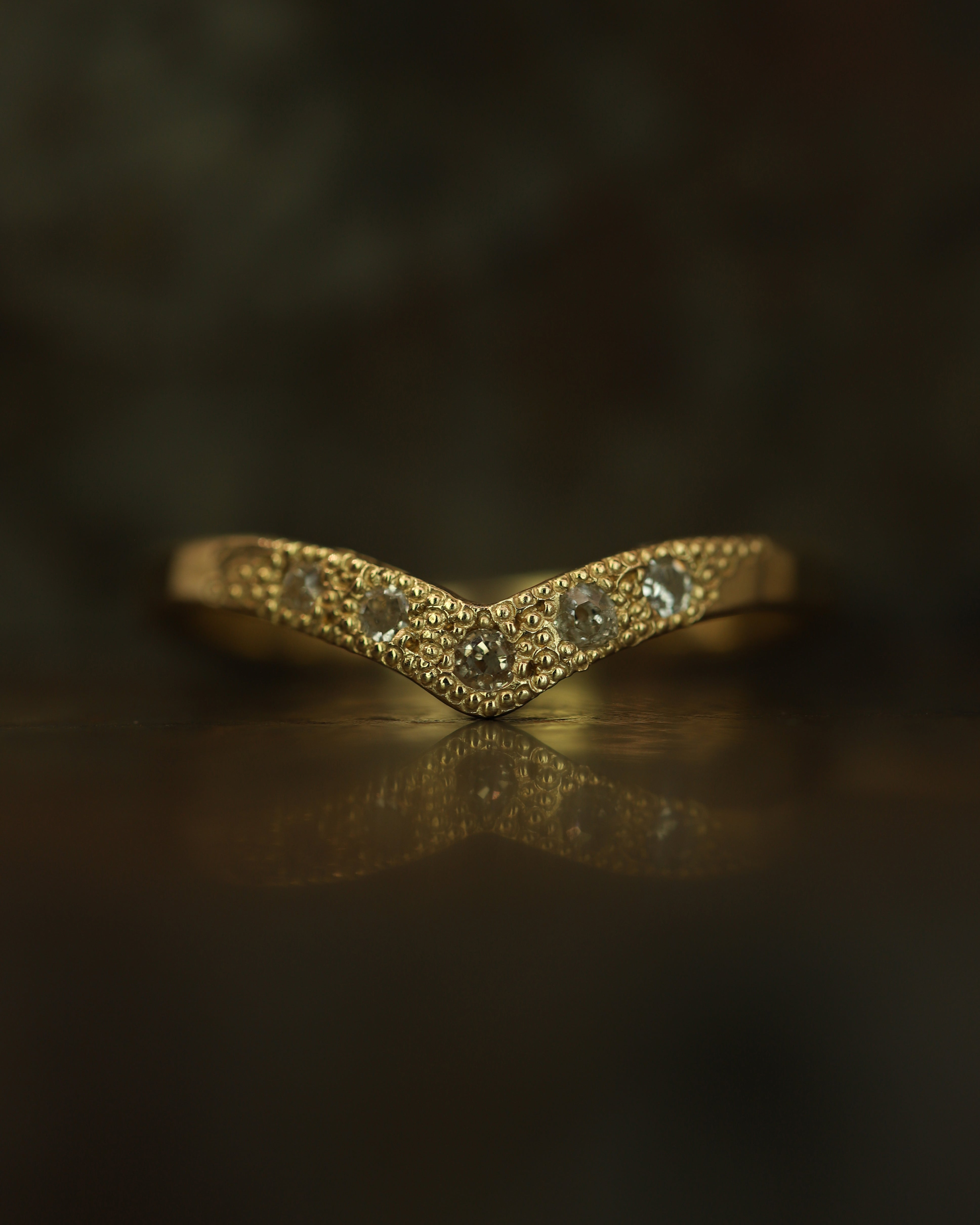 The X OOAK 0.5ct Old Cut Diamond V Shape Scatter Ring is inspired by the medieval jewellery hoards which have been found across Scotland.
