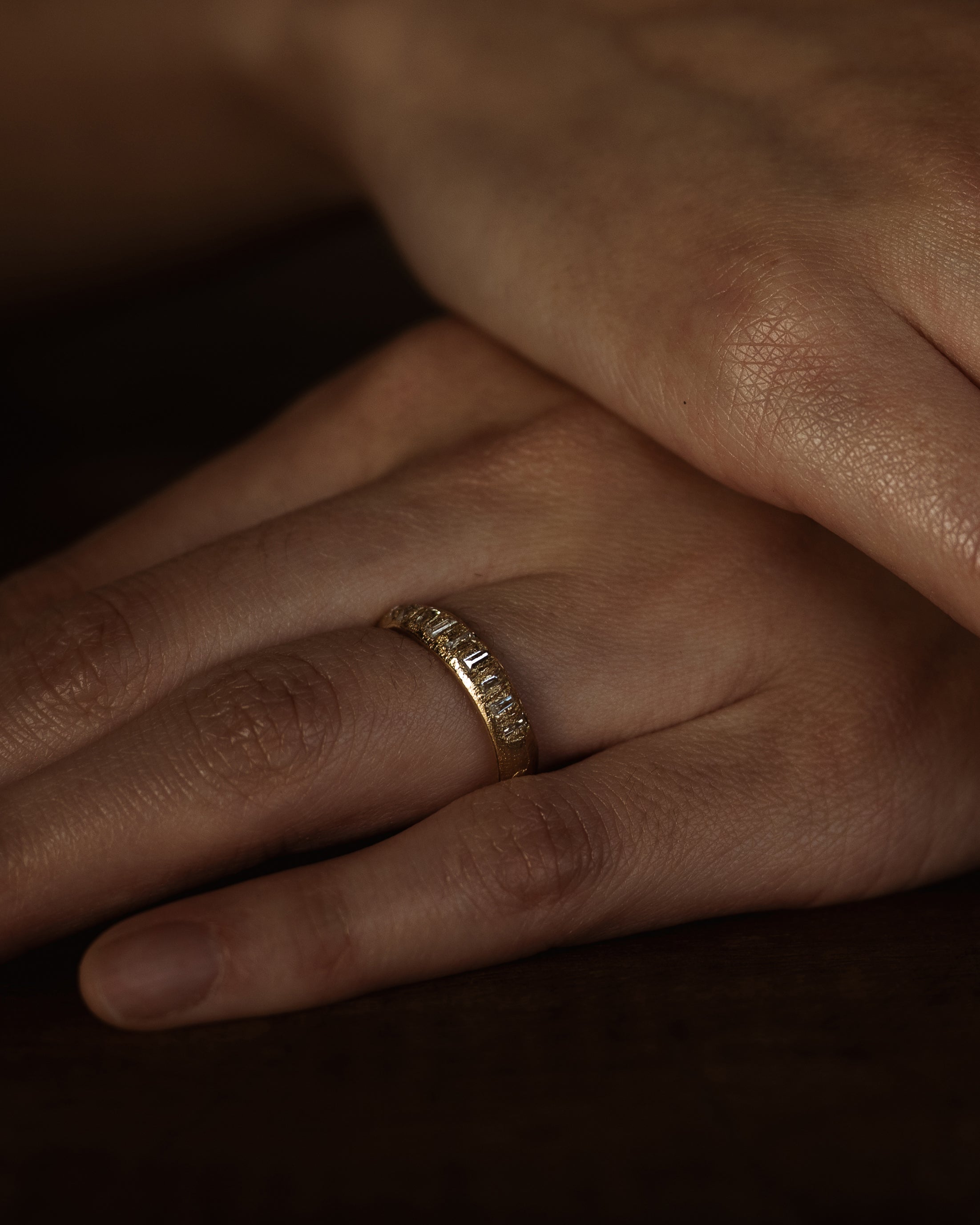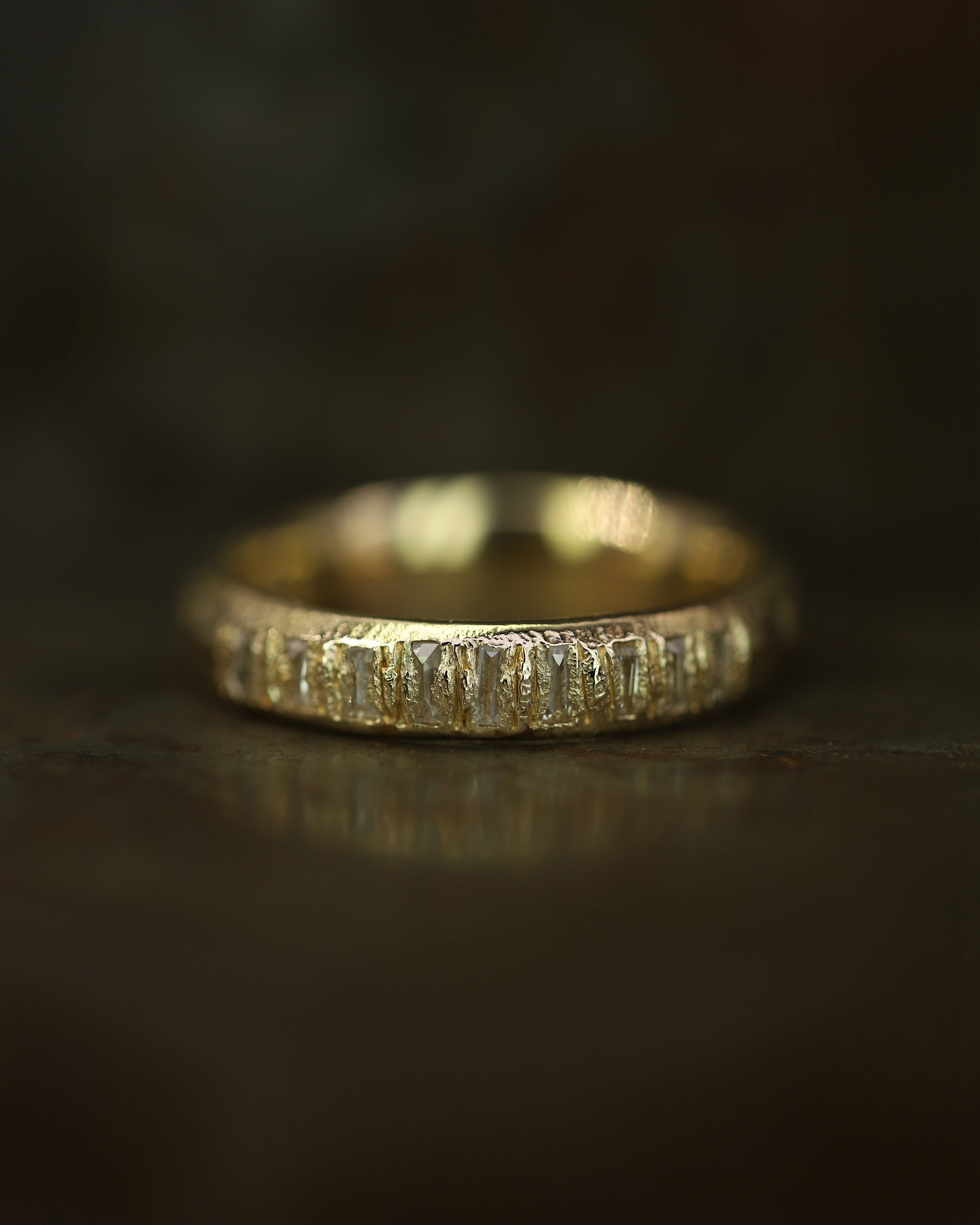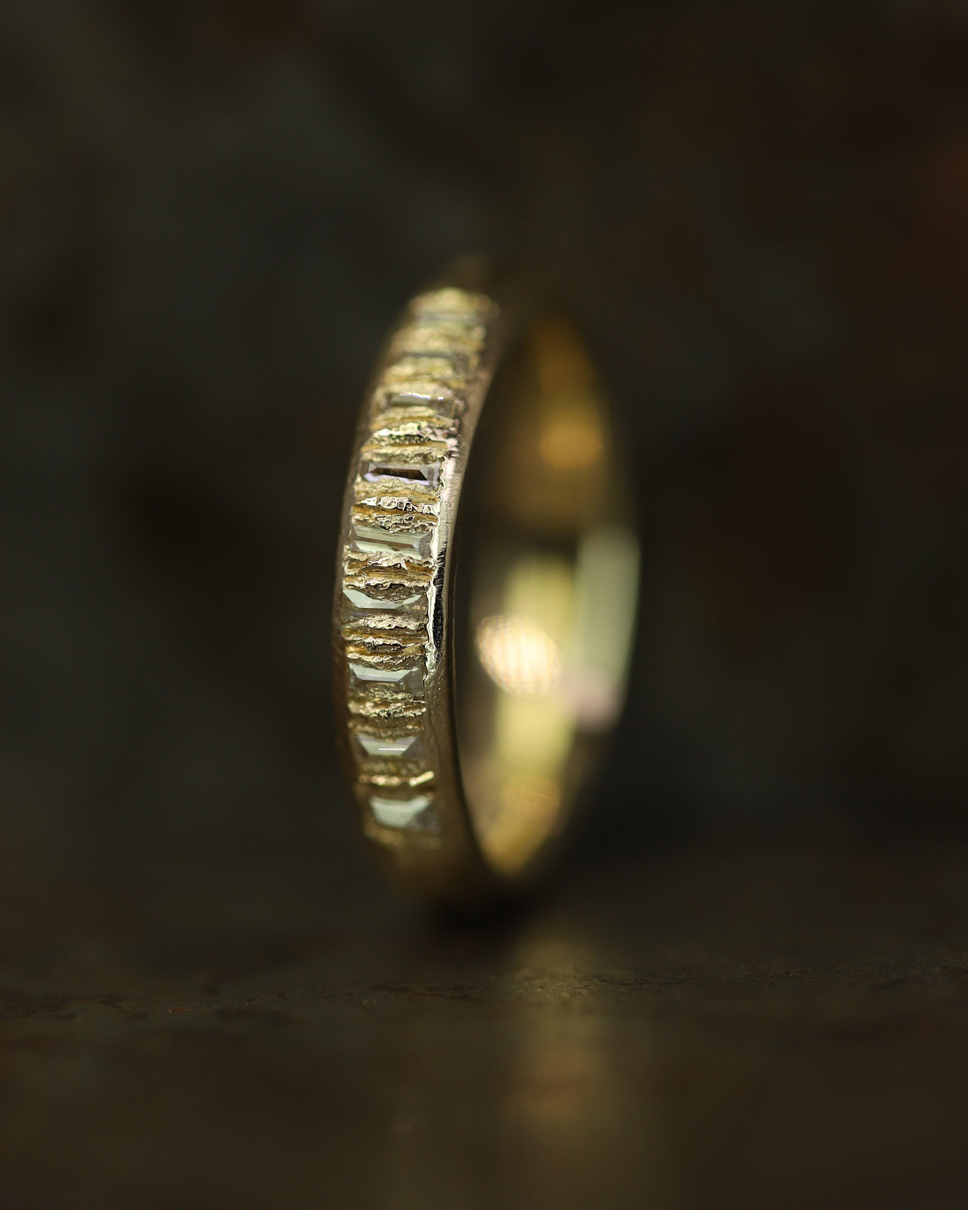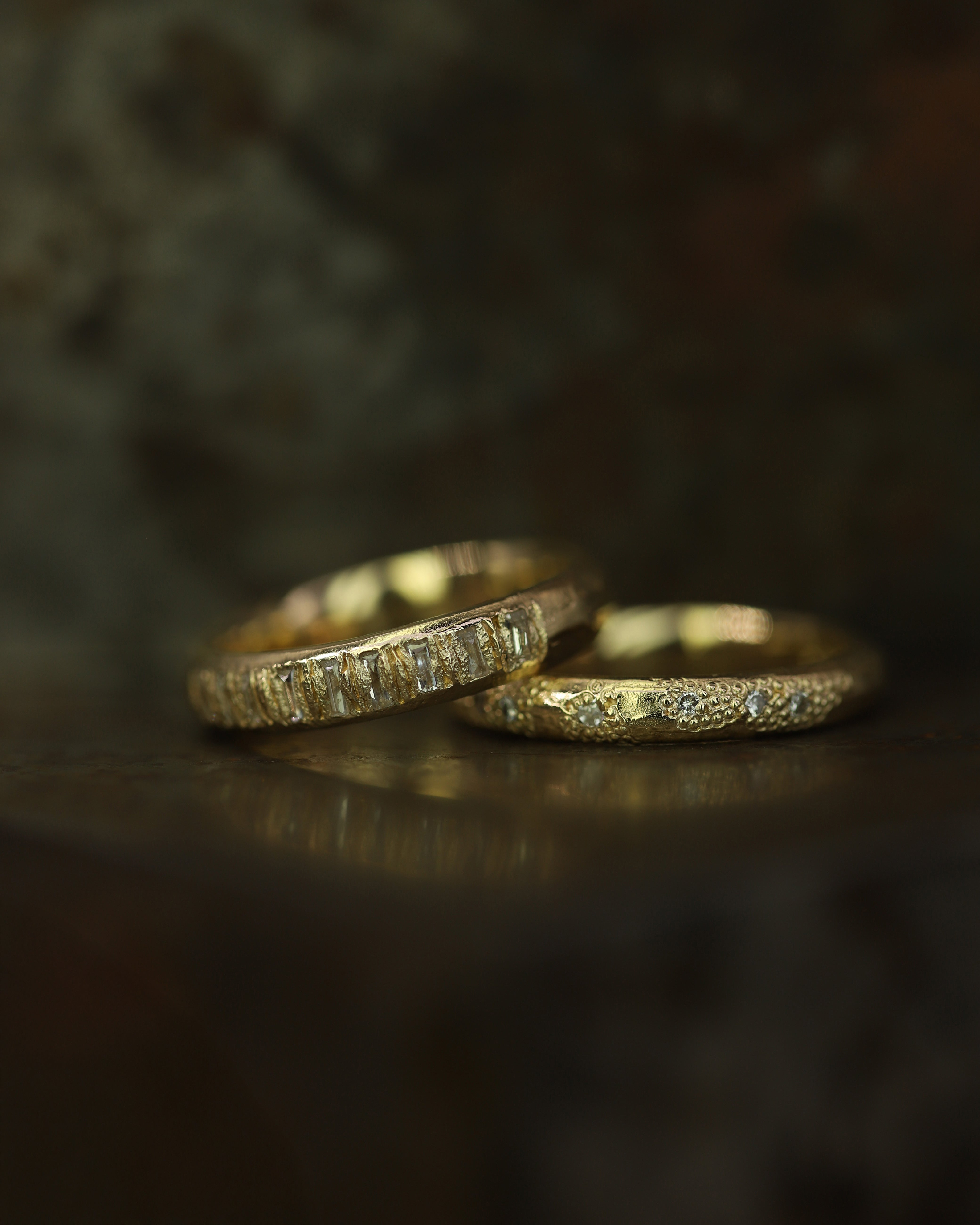 These pieces are made for couples looking for something less conventional, whether it’s an organic engagement ring, a distinctive eternity band, or a textured wedding ring. With a colour palette drawn from the Scottish landscape, created to reflect the natural tones of sunsets, and shifting autumn skies; warm, earthy, and quietly dramatic.
