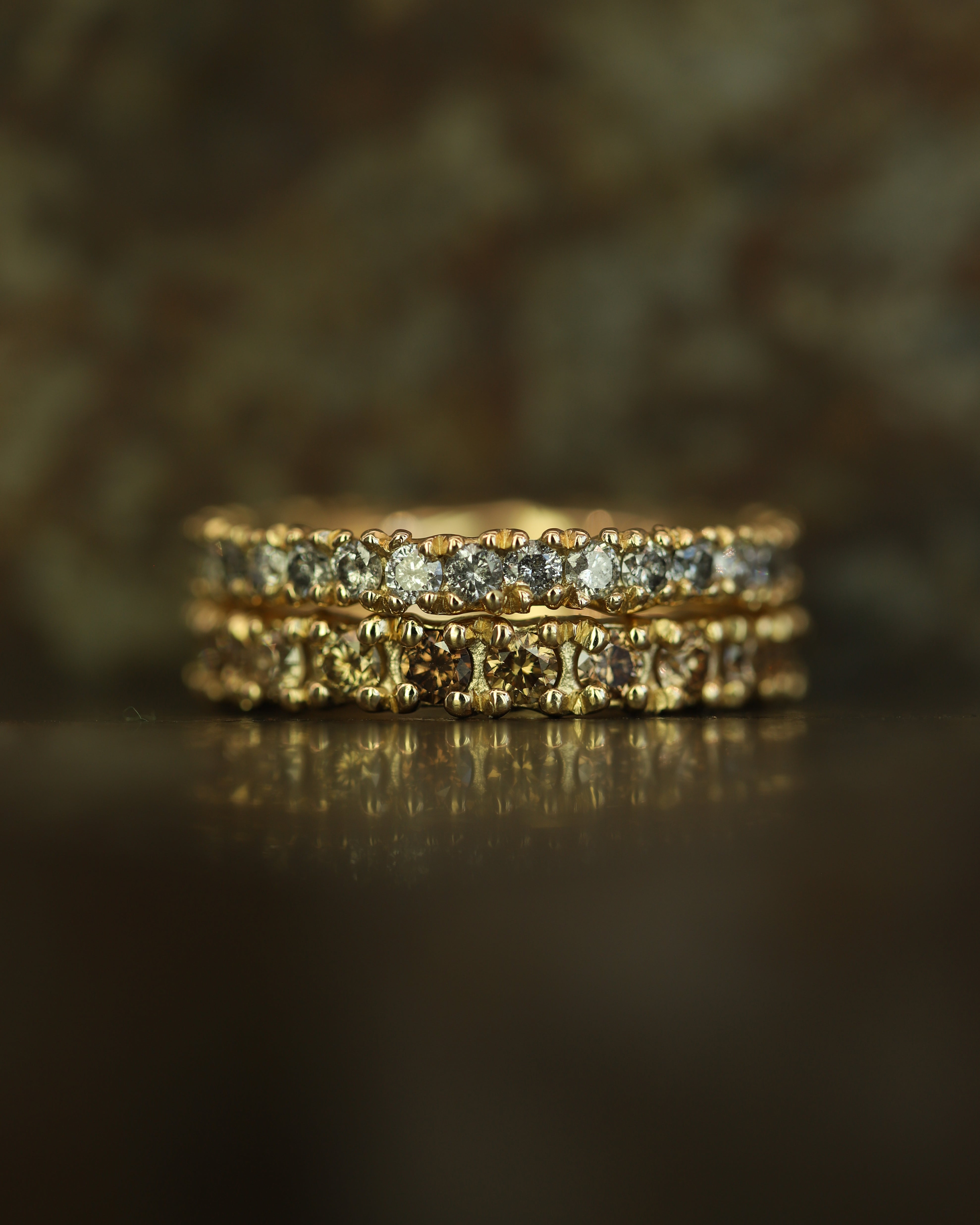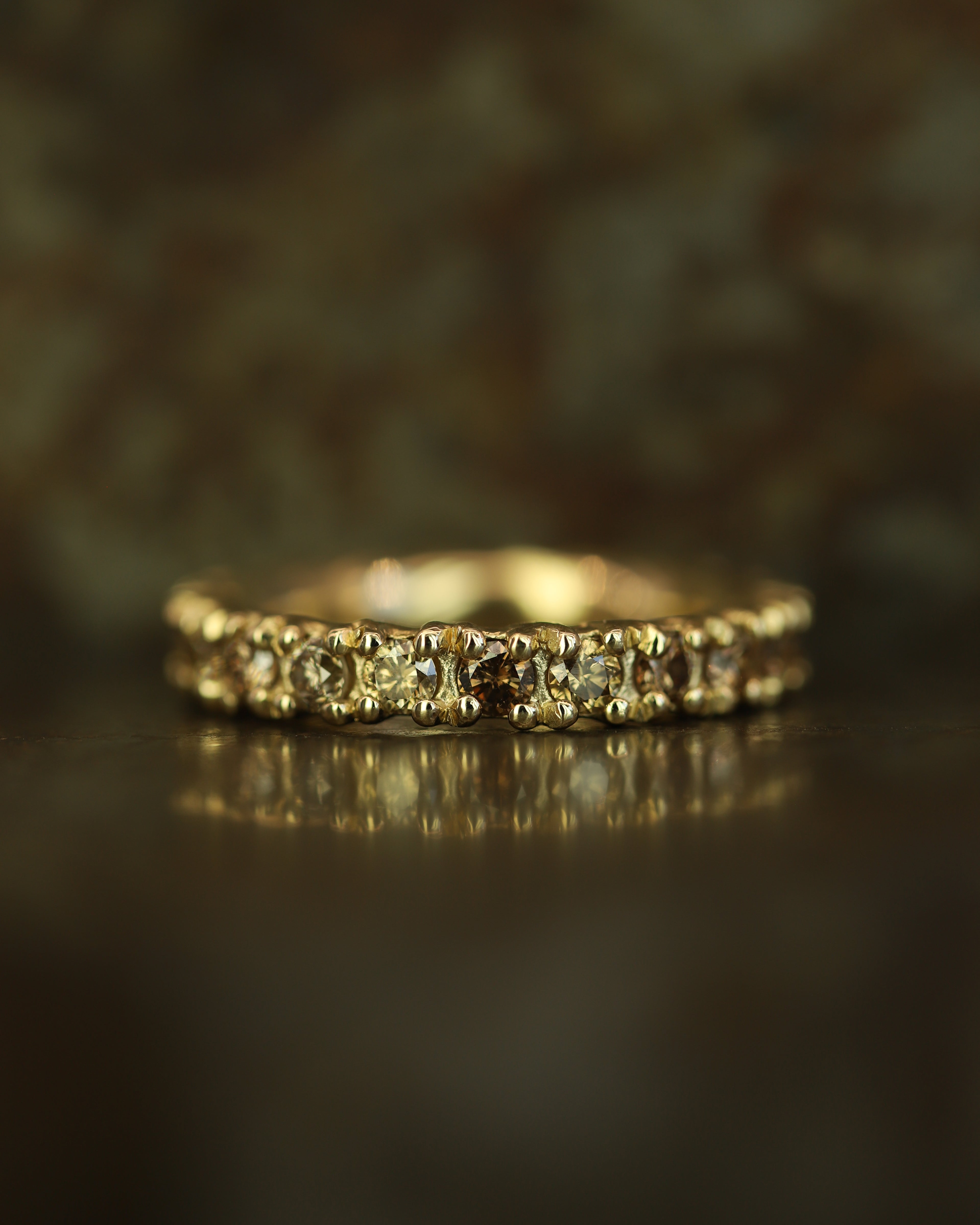 The X 3.5mm Chocolate Diamond Eternity Ring is inspired by the medieval jewellery hoards which have been found across Scotland. Diamonds flow into one another, organically set as though they have just been excavated.