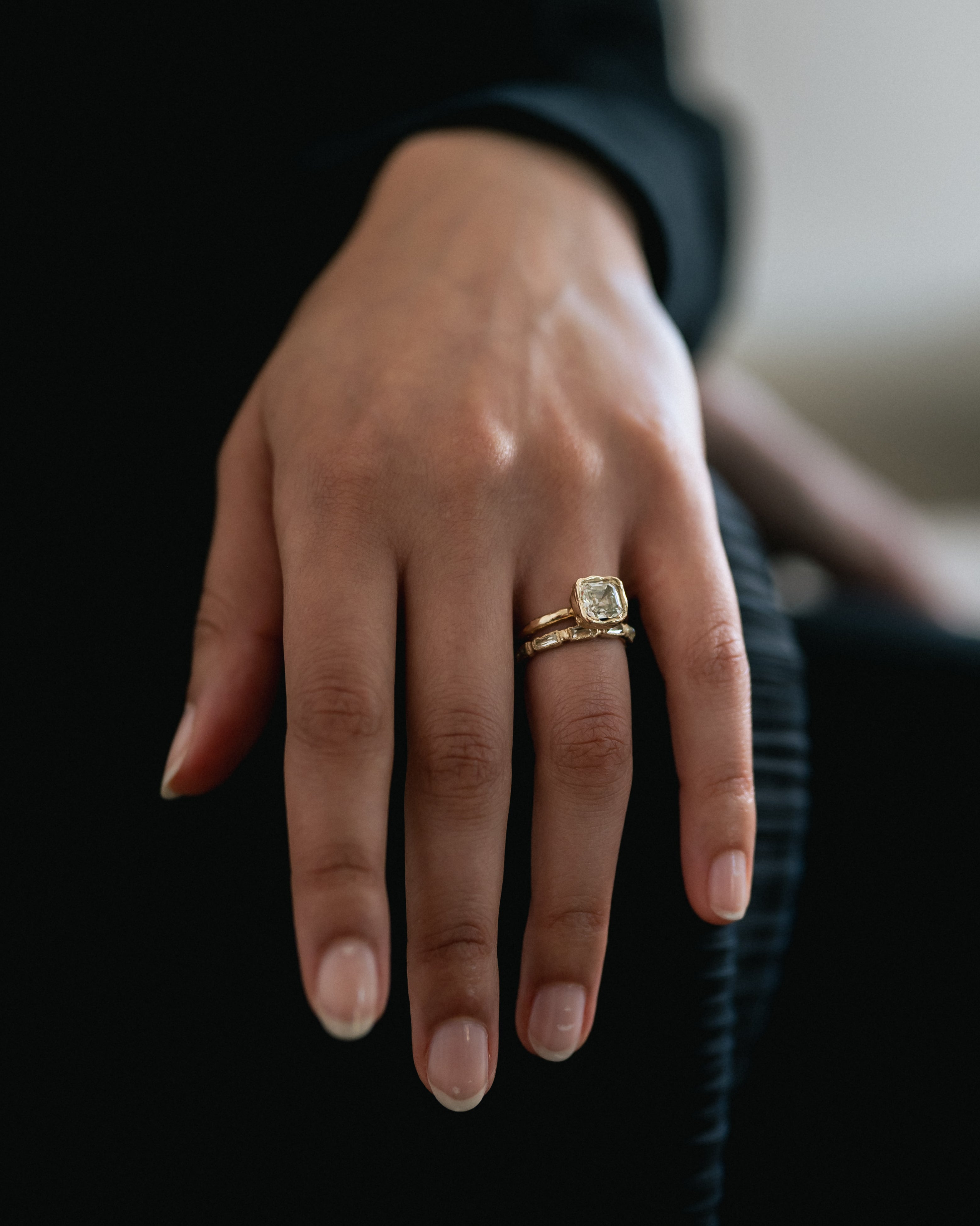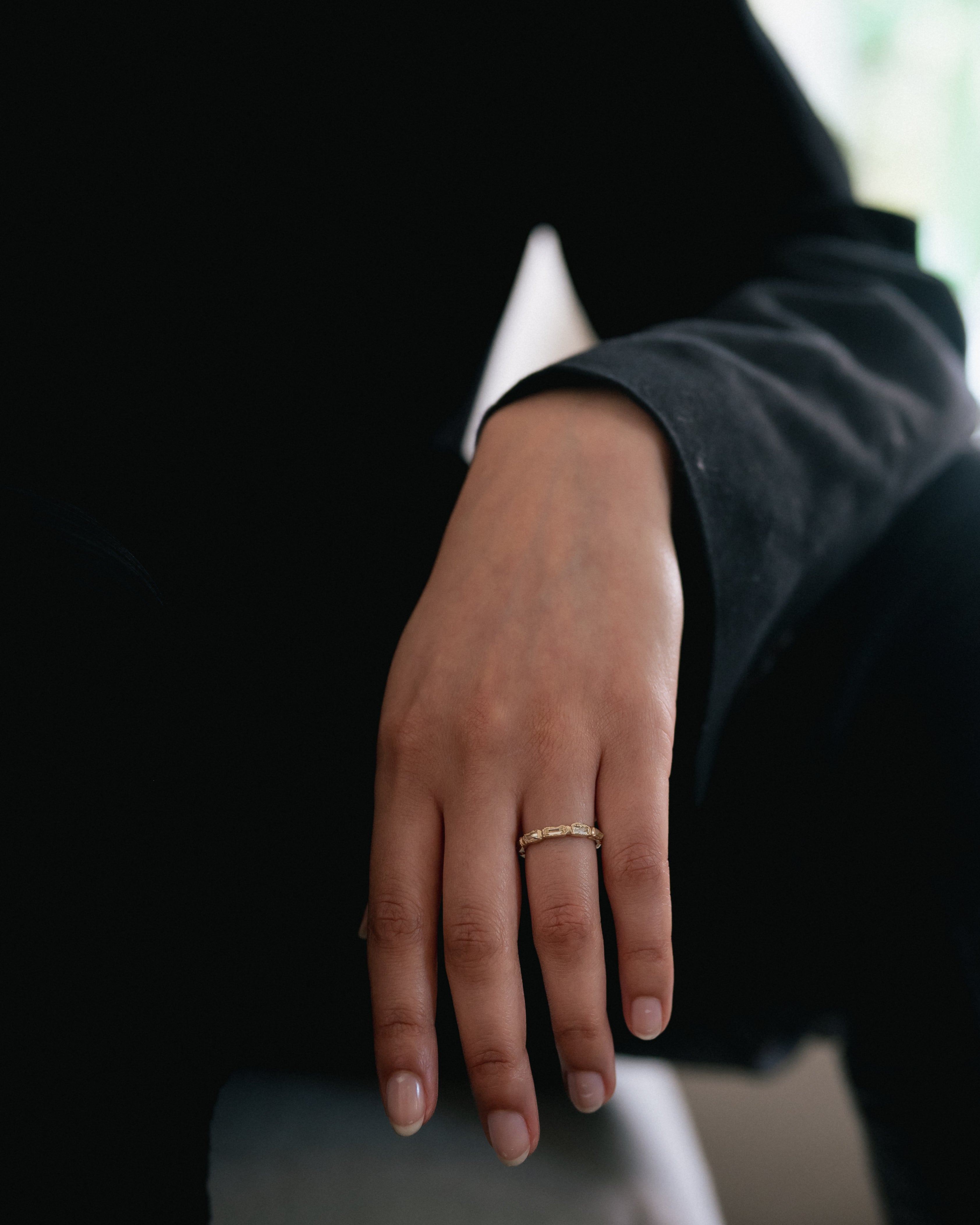 Legacy draws on the feeling of uncovering something precious - light catching on a surface, a glint of something rare. The collection features reverse-set baguette diamonds in soft yellow and champagne shades, designed to reflect light in subtle, surprising ways.