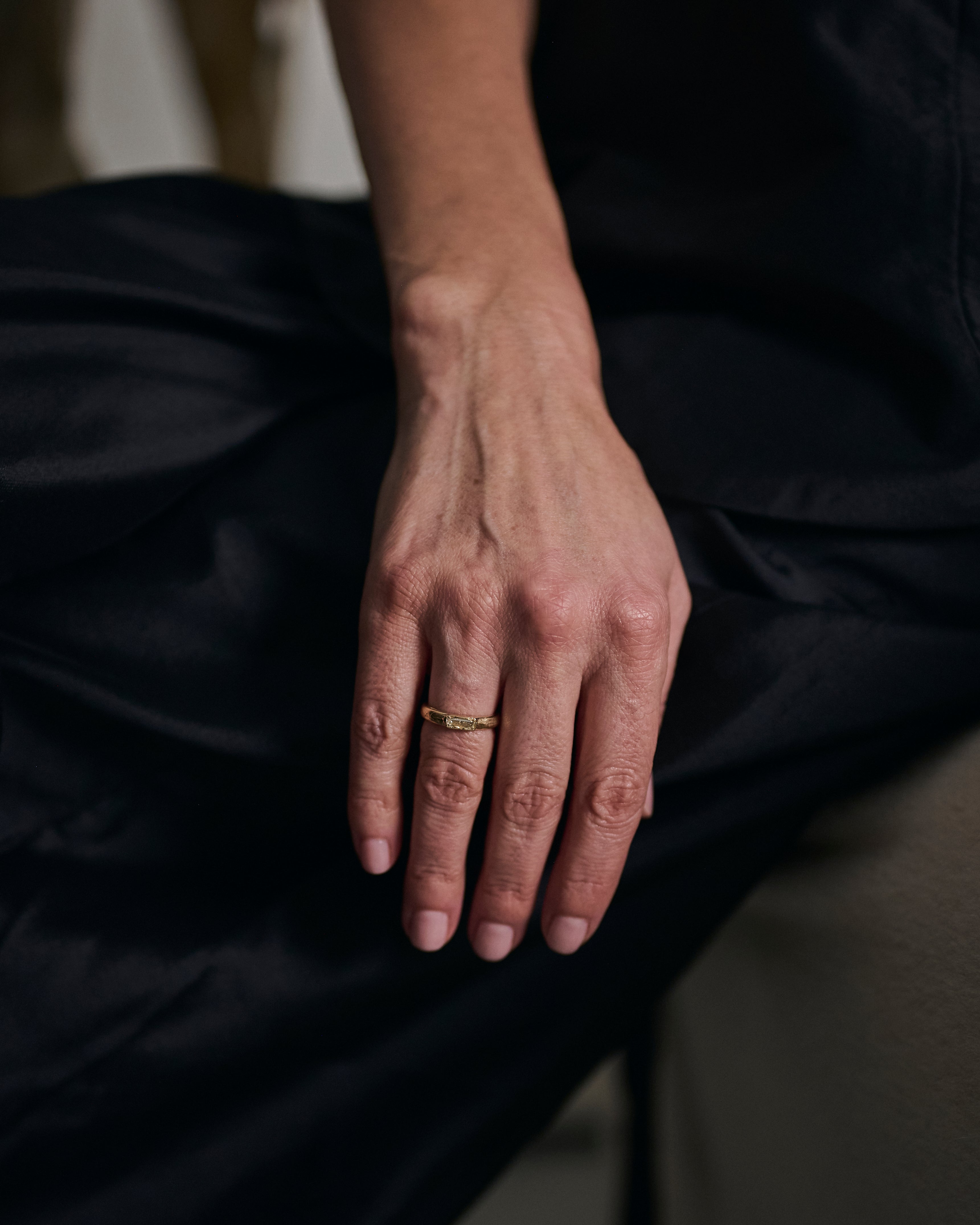 Legacy draws on the feeling of uncovering something precious - light catching on a surface, a glint of something rare. The collection features reverse-set baguette diamonds in soft yellow and champagne shades, designed to reflect light in subtle, surprising ways.