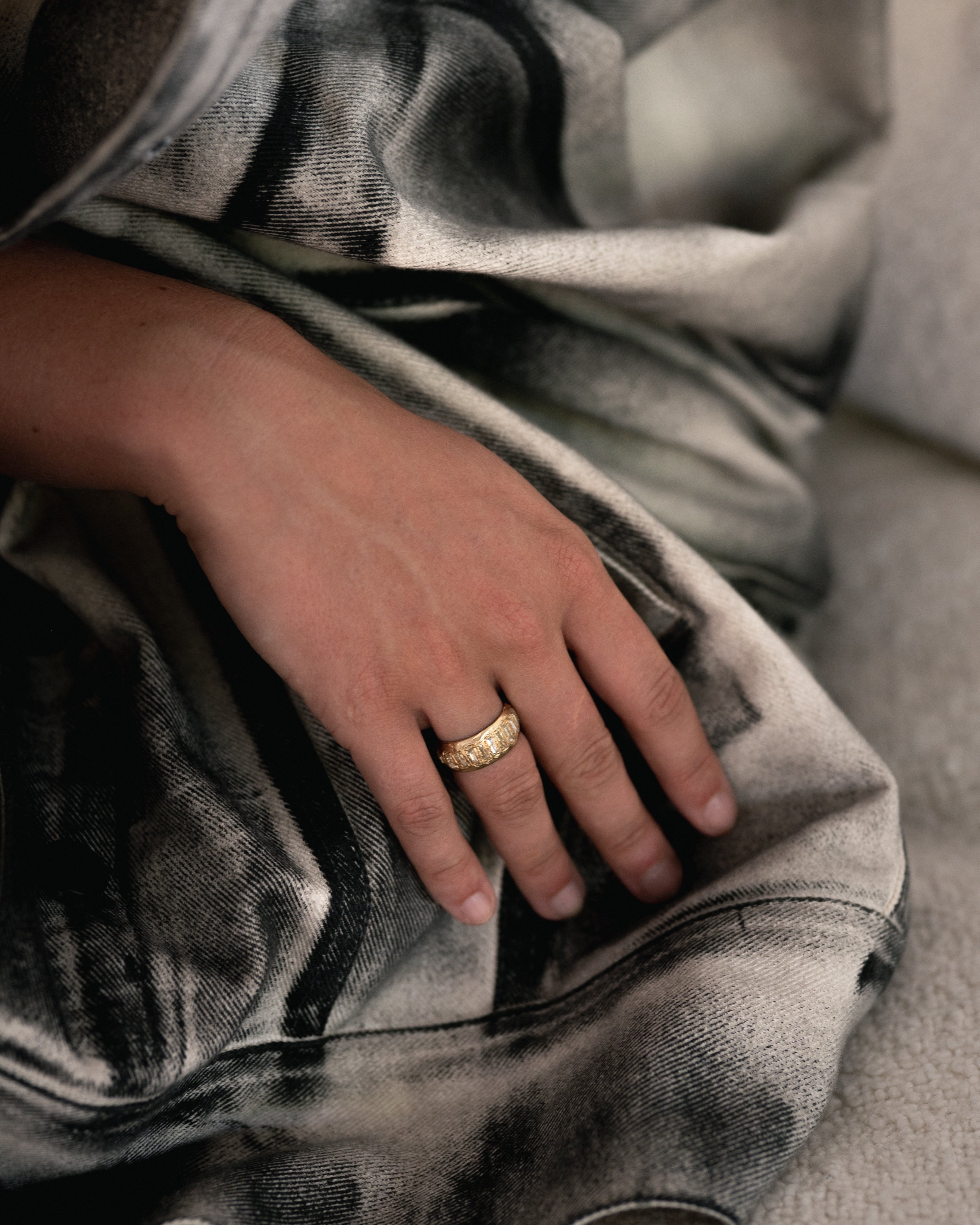 Legacy draws on the feeling of uncovering something precious - light catching on a surface, a glint of something rare. The collection features reverse-set baguette diamonds in soft yellow and champagne shades, designed to reflect light in subtle, surprising ways.
