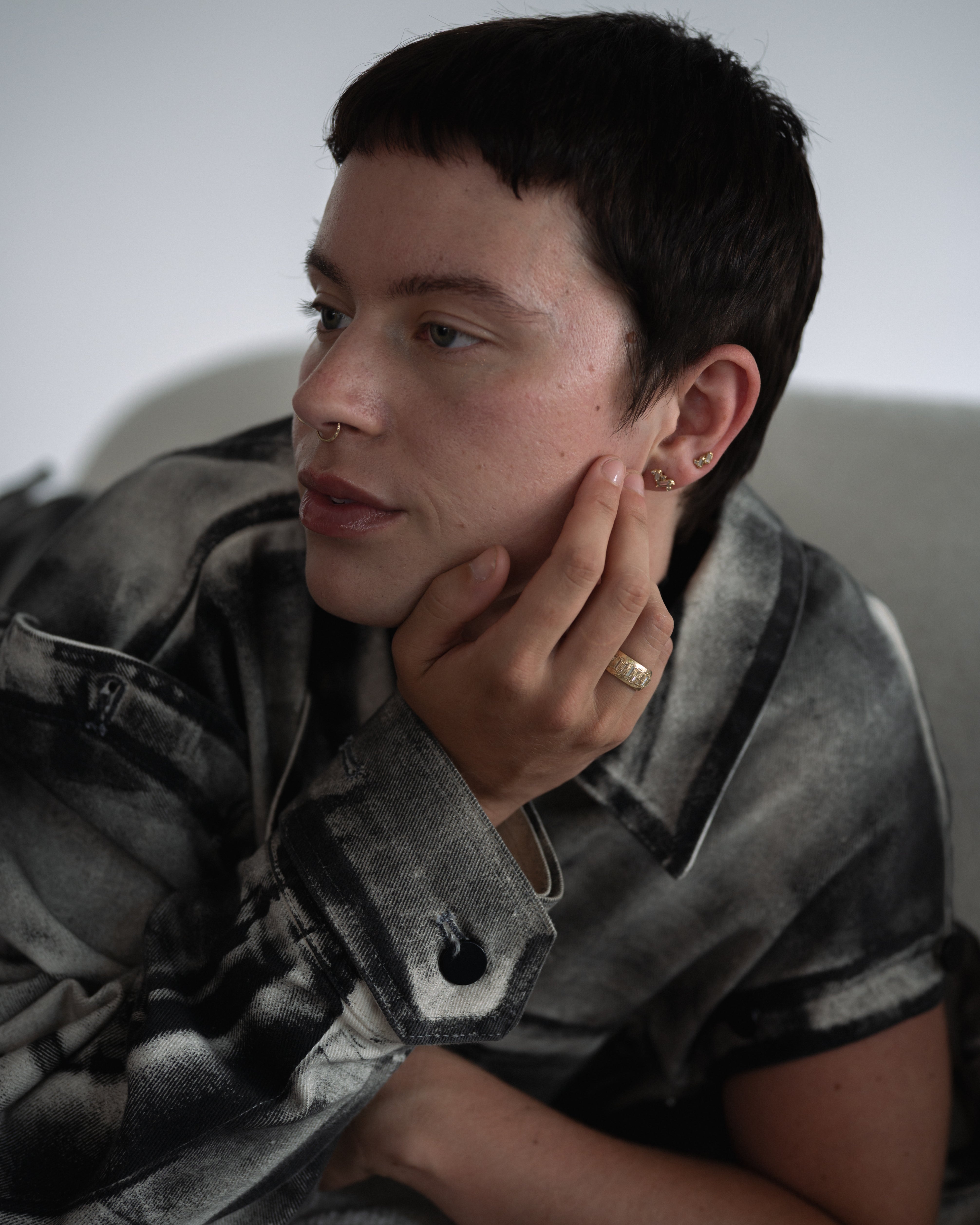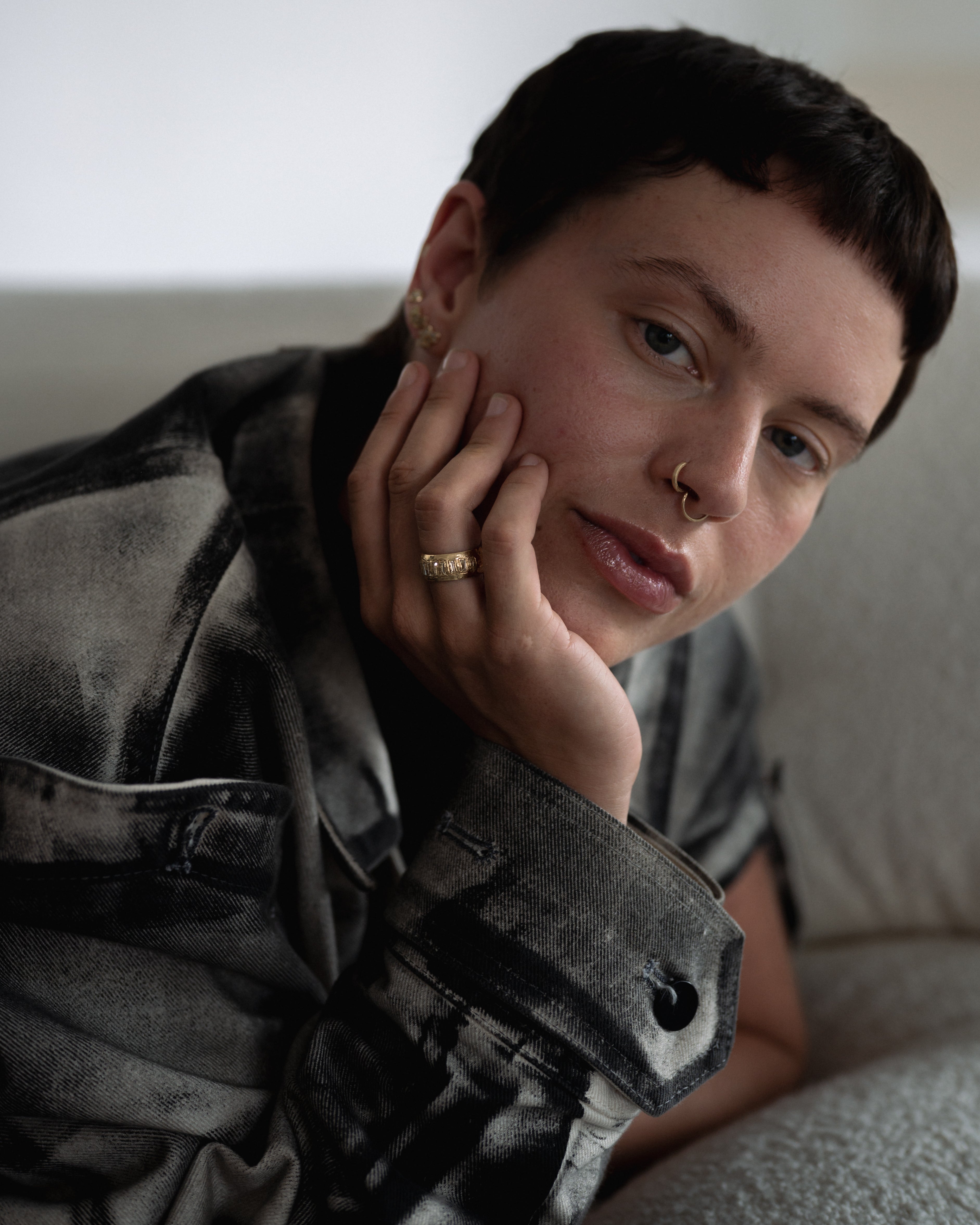 These stones are paired with icy white diamonds, scattered like flecks of treasure in textured, molten gold, to create jewellery that feels tactile and storied, combining Ellis’ erosive aesthetic with a refined sense of discovery.