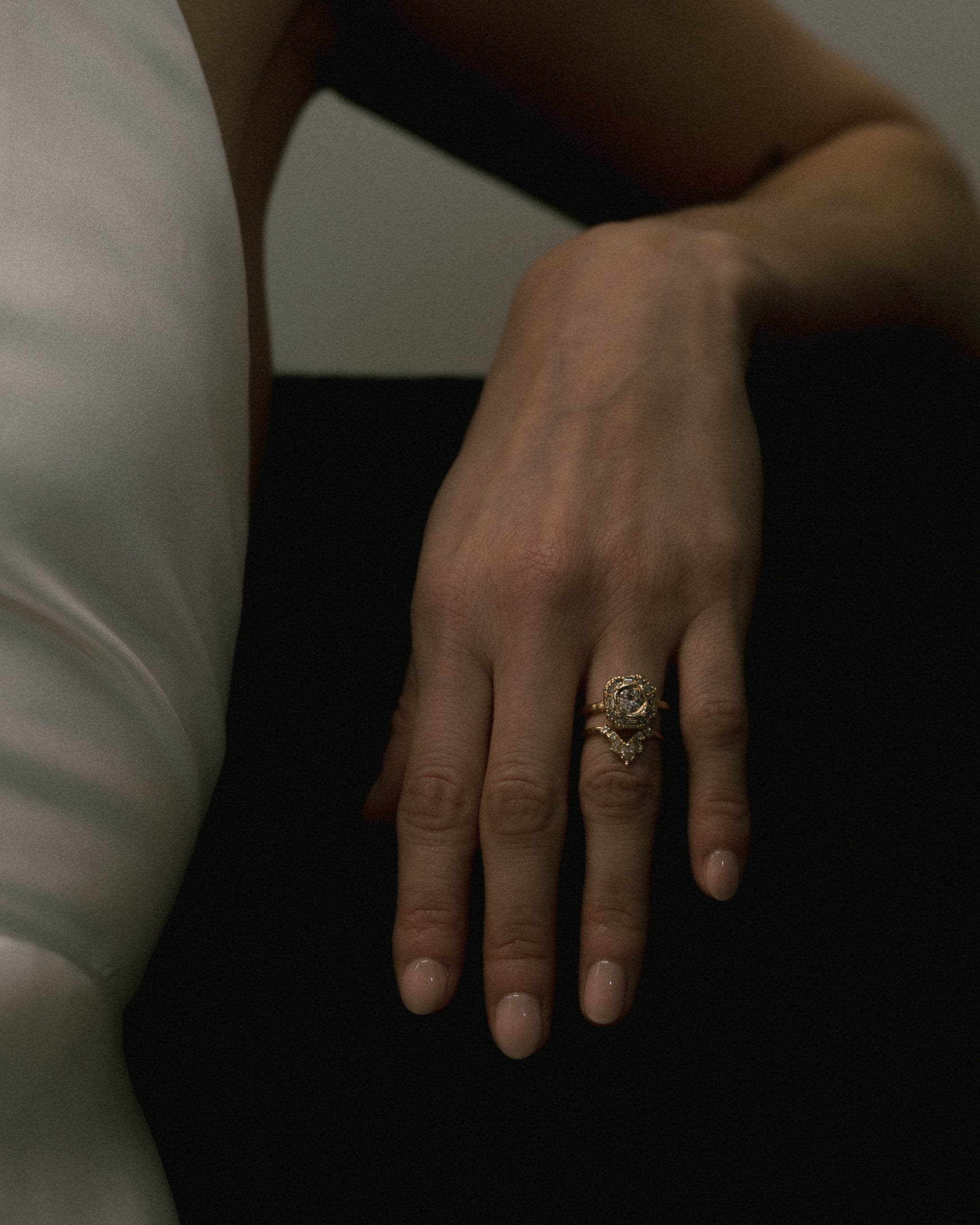 Ellis discovered ancient weaponry on her family farmland - objects of protection and defence. The Armach collection reimagines what we mean by armour; a combination of diamonds and gold, worn for confidence and strength.