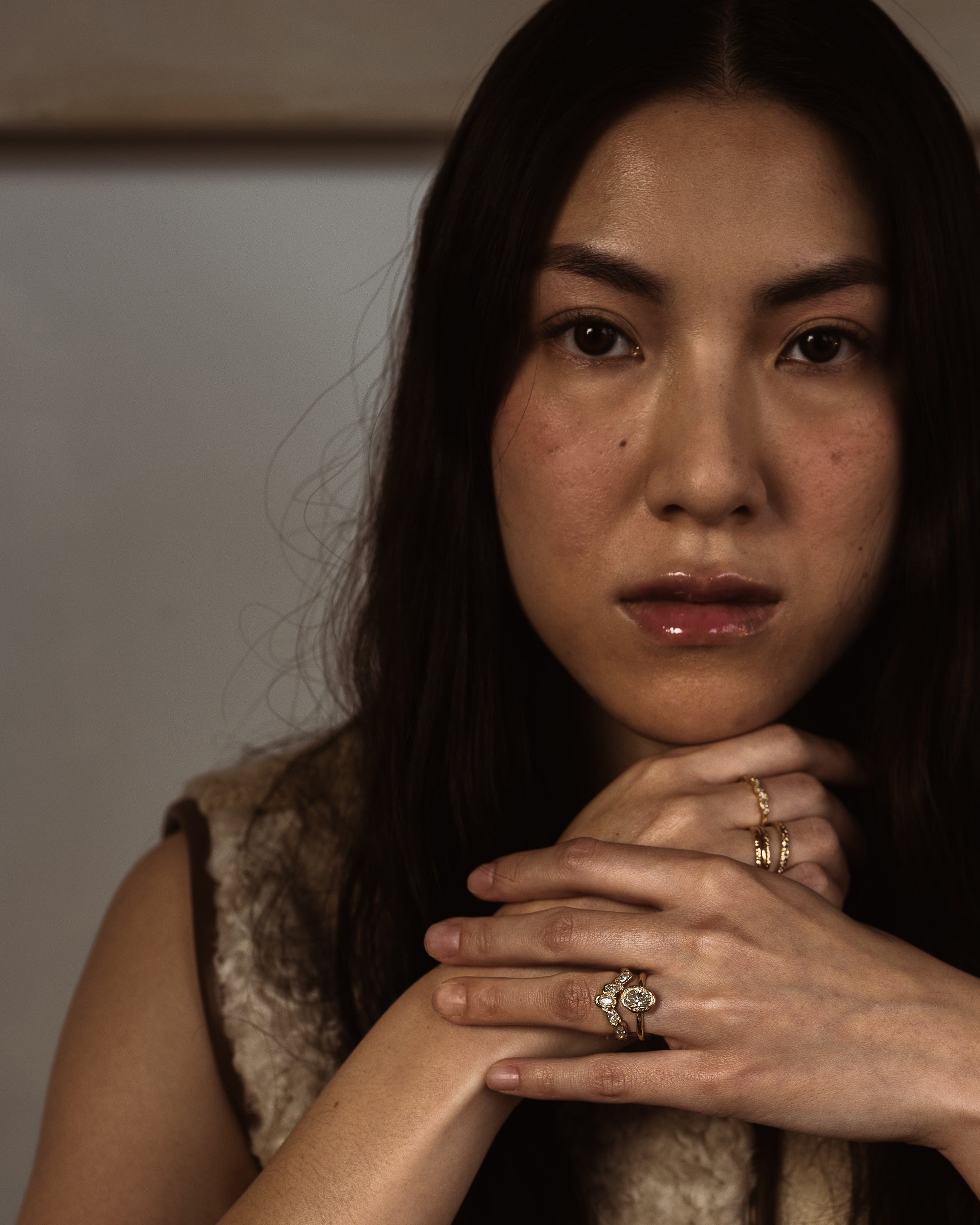 Legacy draws on the feeling of uncovering something precious - light catching on a surface, a glint of something rare. The collection features reverse-set baguette diamonds in soft yellow and champagne shades, designed to reflect light in subtle, surprising ways.