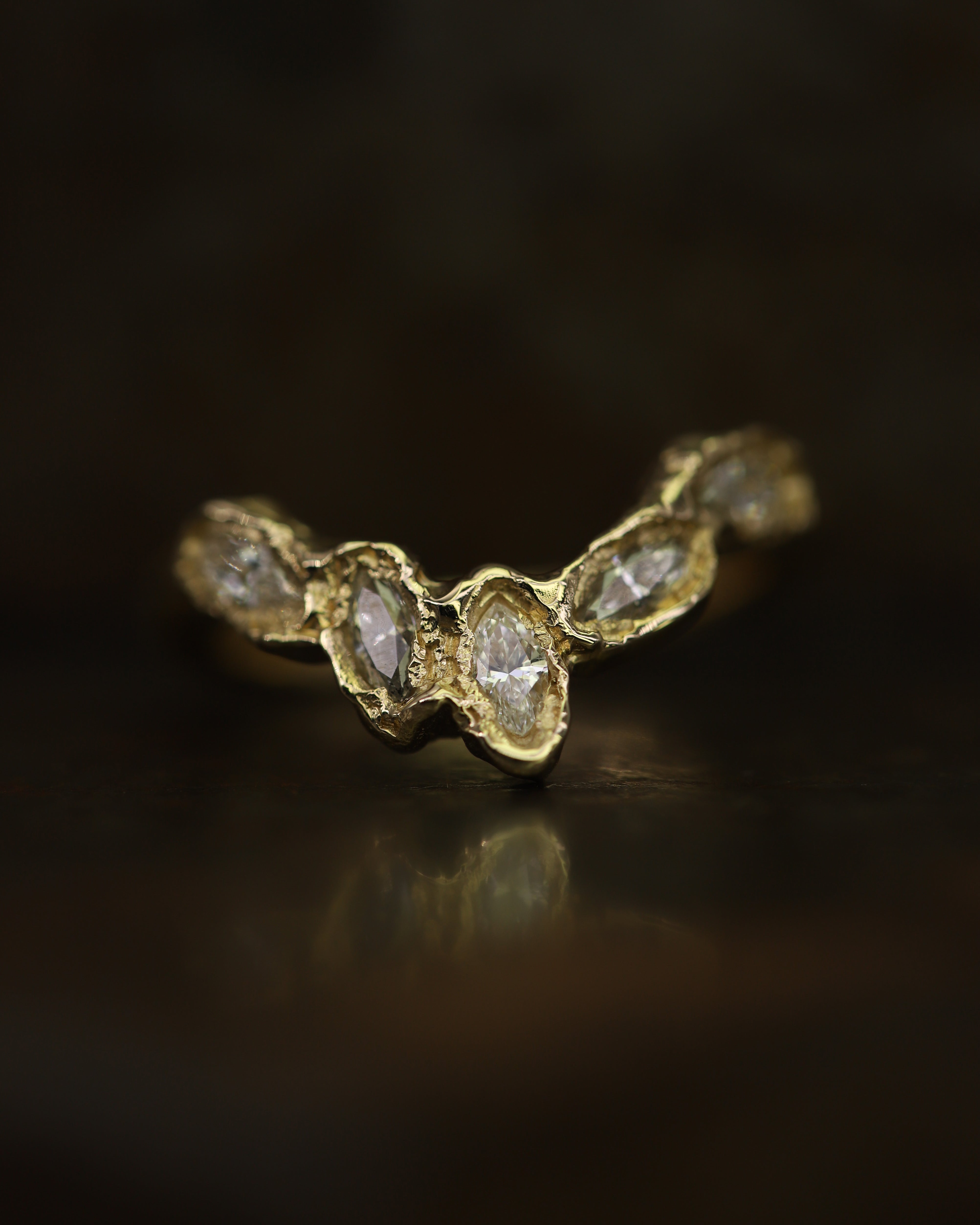 The X Marquise Five Diamond V Shape Scatter Ring is inspired by the medieval jewellery hoards which have been found across Scotland.