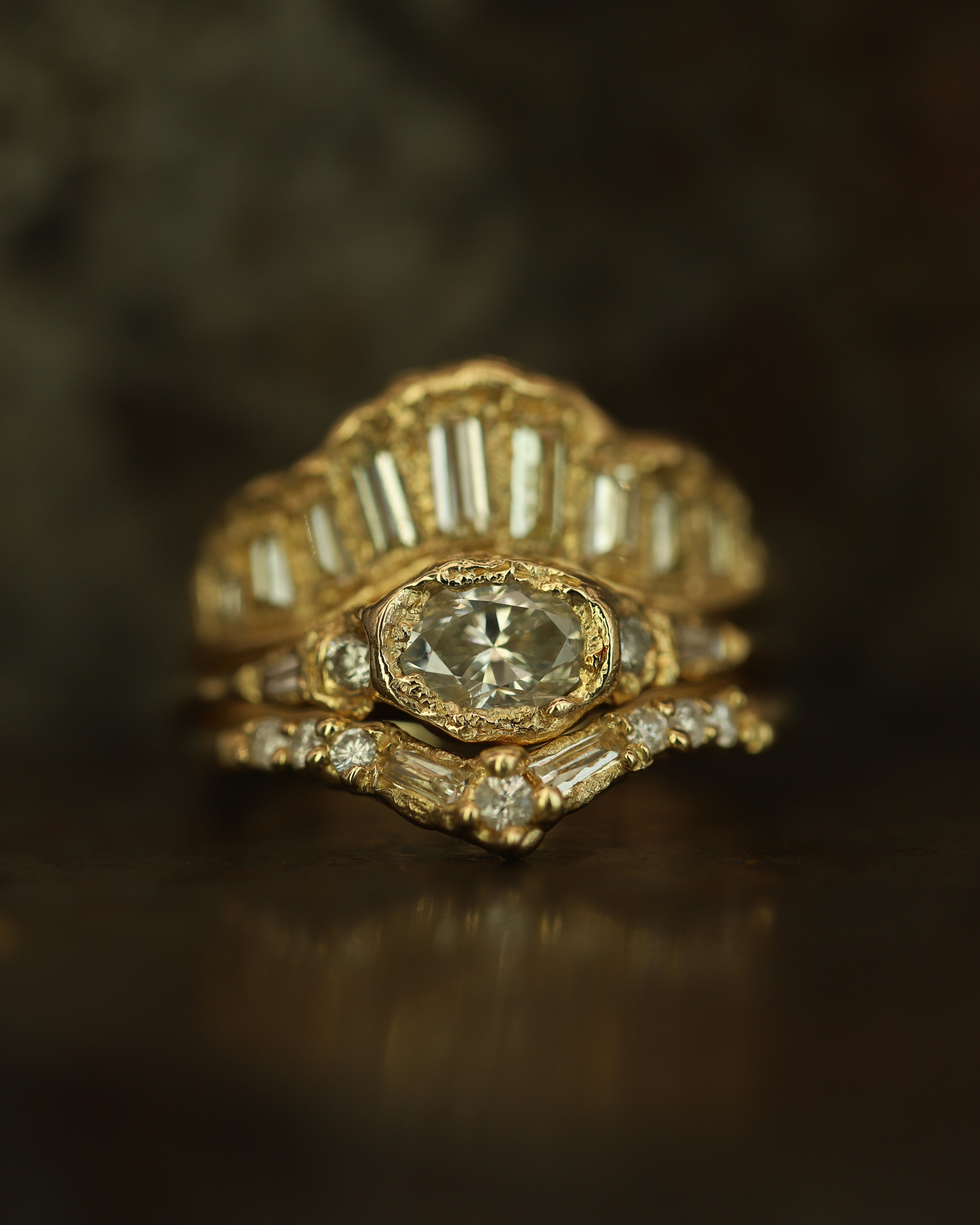 Perfect as an alternative engagement ring; worn solo, or stacked with other styles. Pair with organic wedding bands from the collection for a cohesive look.