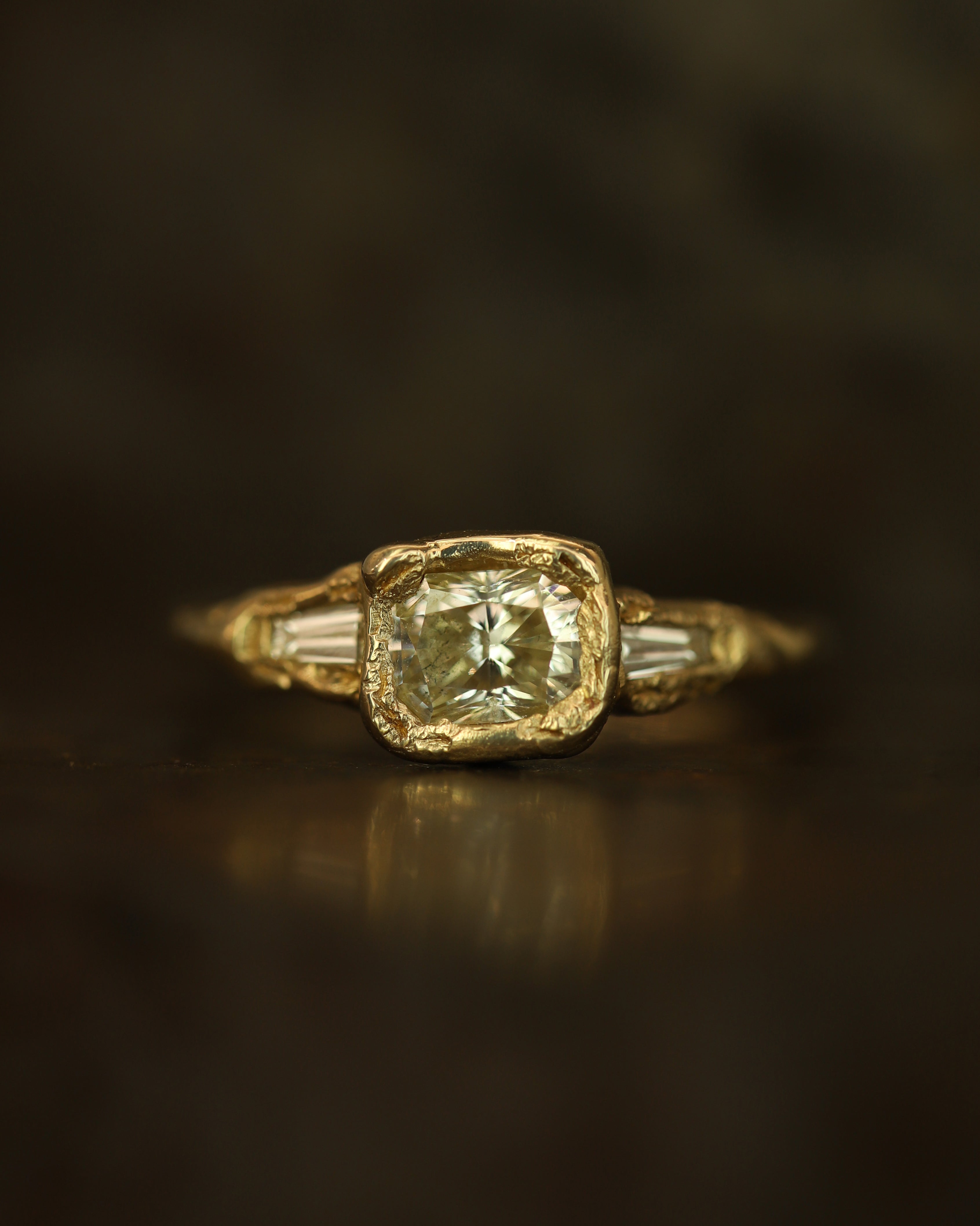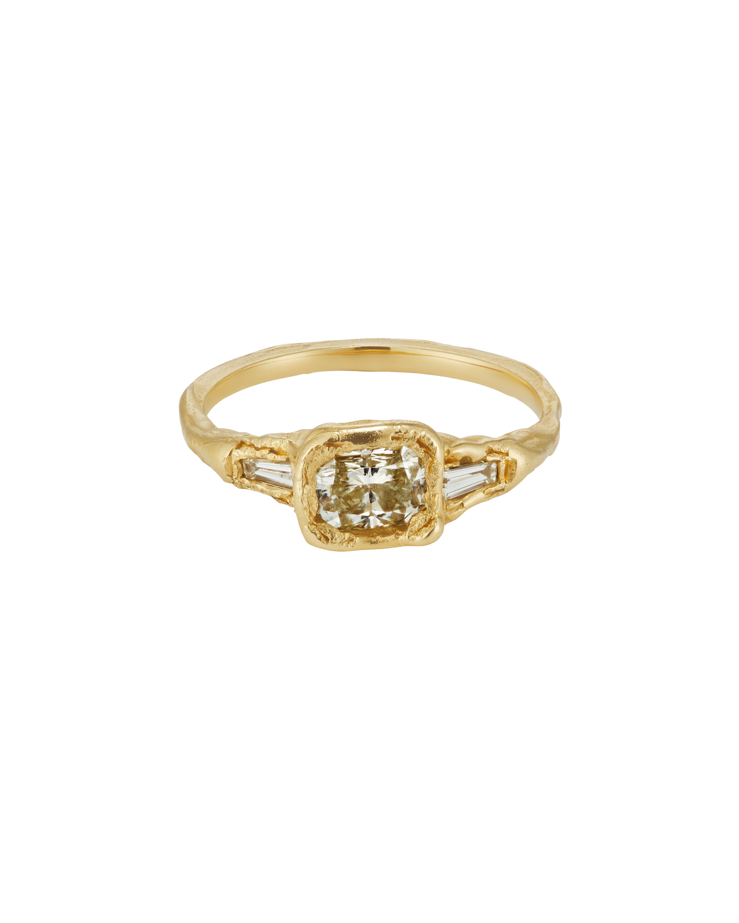 Armach 1ct Radiant Lemon Three Stone Diamond Organic Engagement Ring