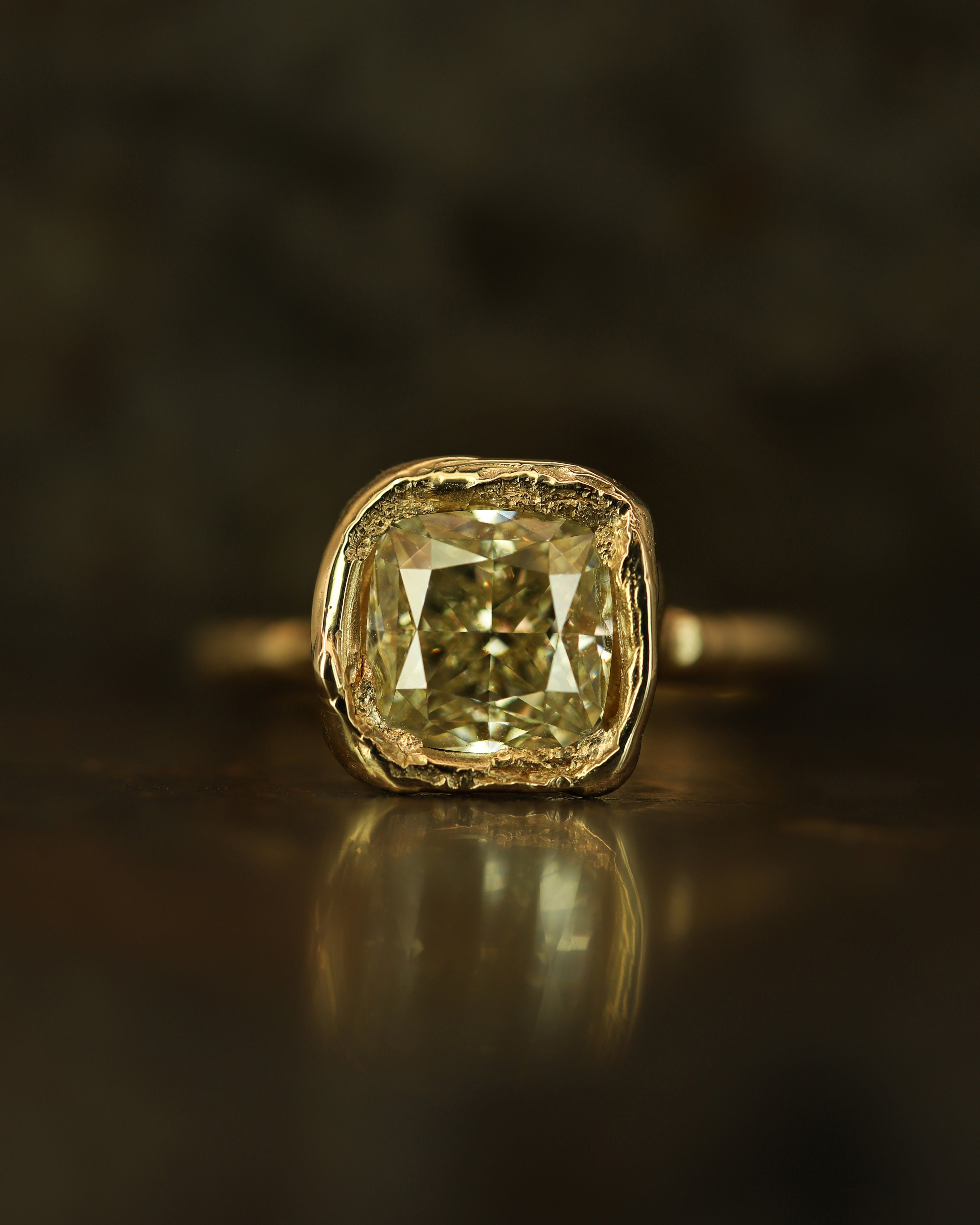 Armach 2.6ct Cushion Fancy Lemon Diamond Organic Engagement Ring