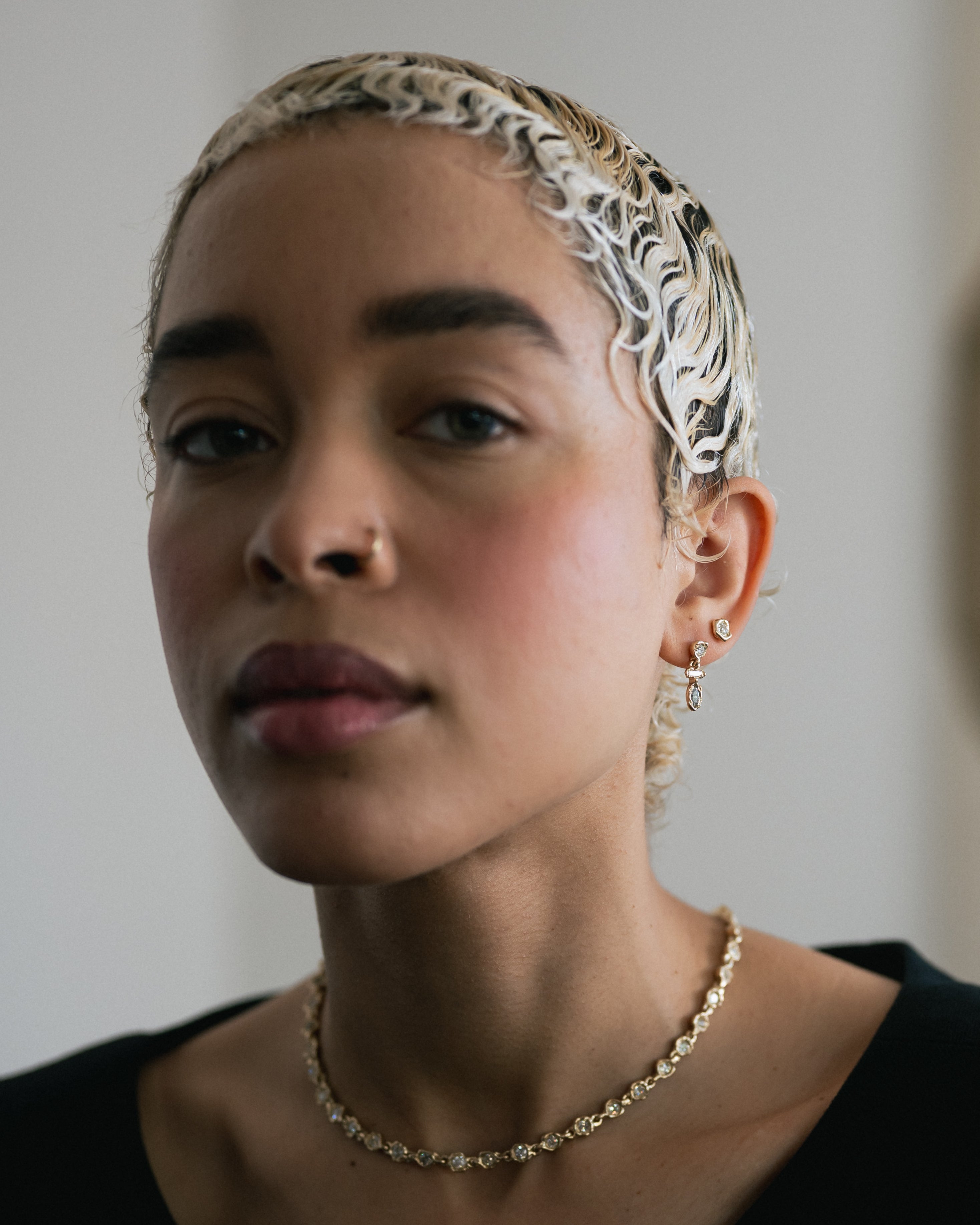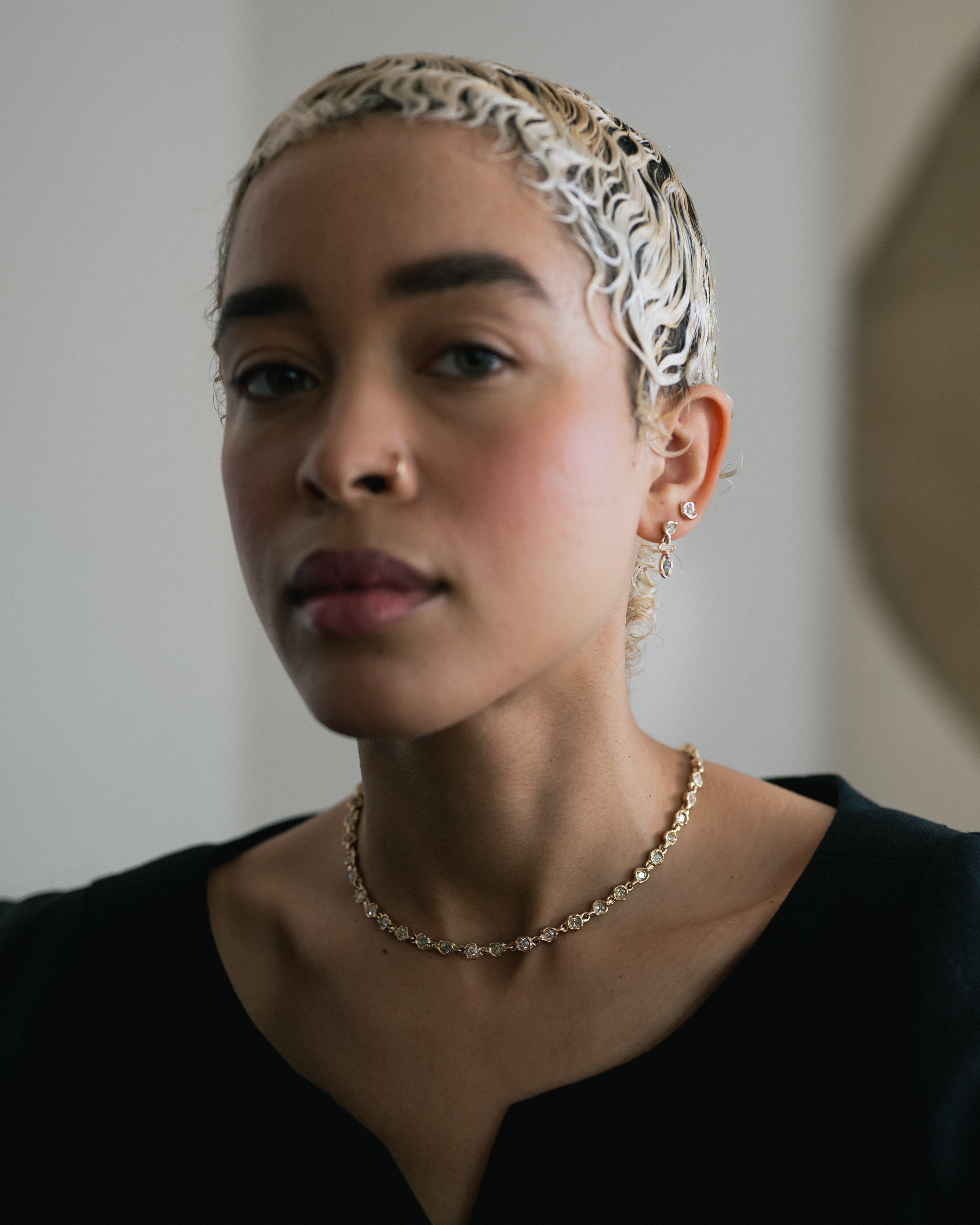 Ellis discovered ancient weaponry on her family farmland - objects of protection and defence. The Armach collection reimagines what we mean by armour; a combination of diamonds and gold, worn for confidence and strength.