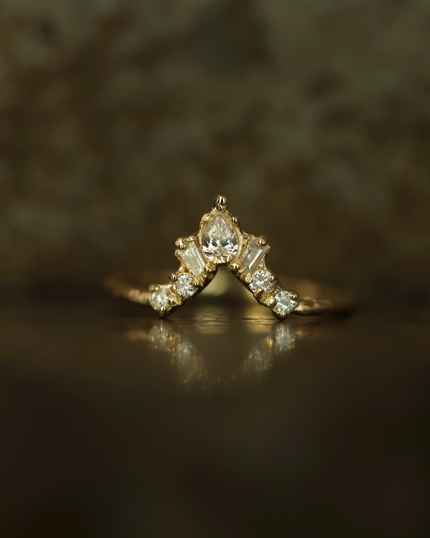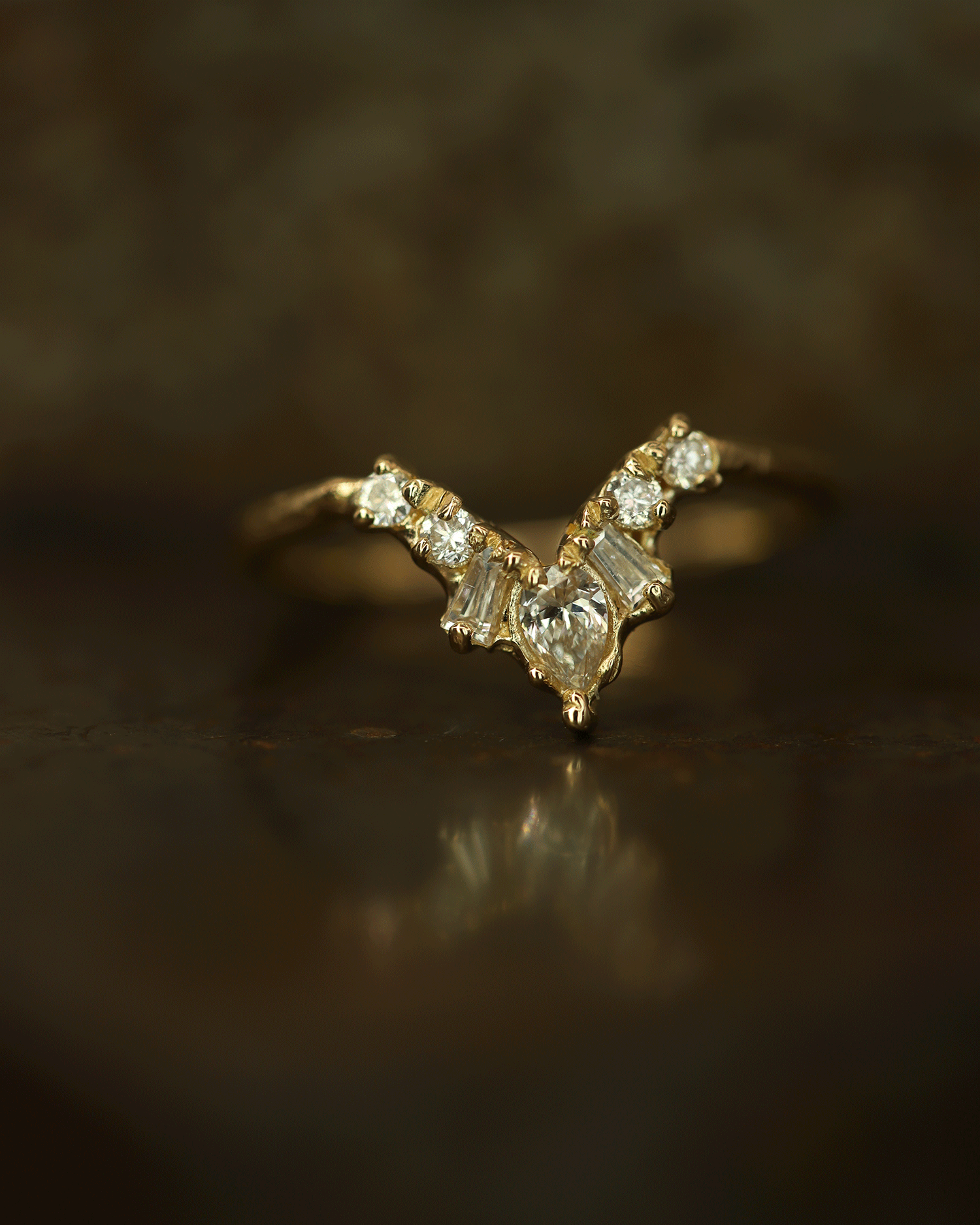 The Armach Mixed Diamond V Shape Scatter Ring is inspired by the medieval jewellery hoards found across Scotland.