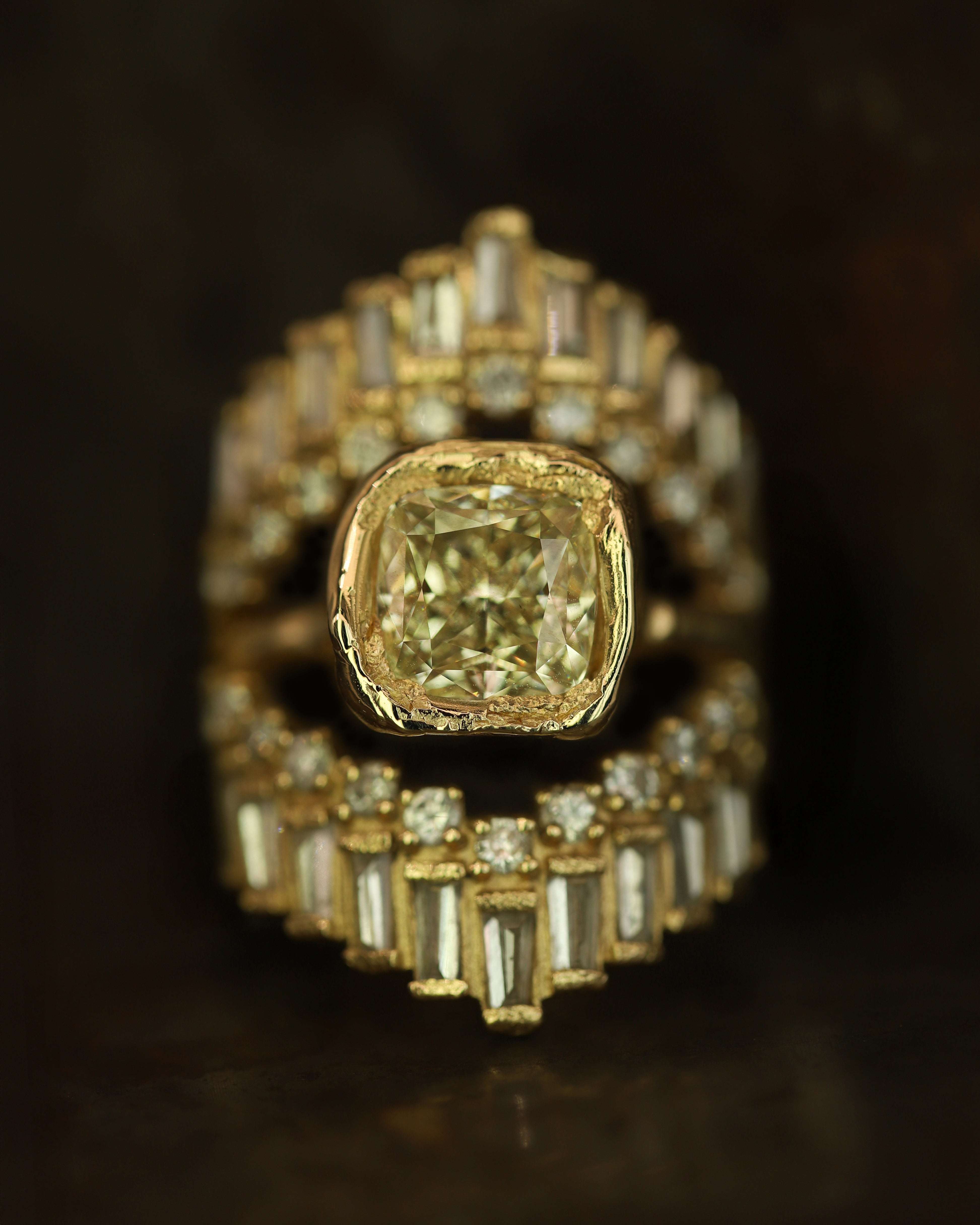 Armach 2.6ct Cushion Fancy Lemon Diamond Organic Engagement Ring