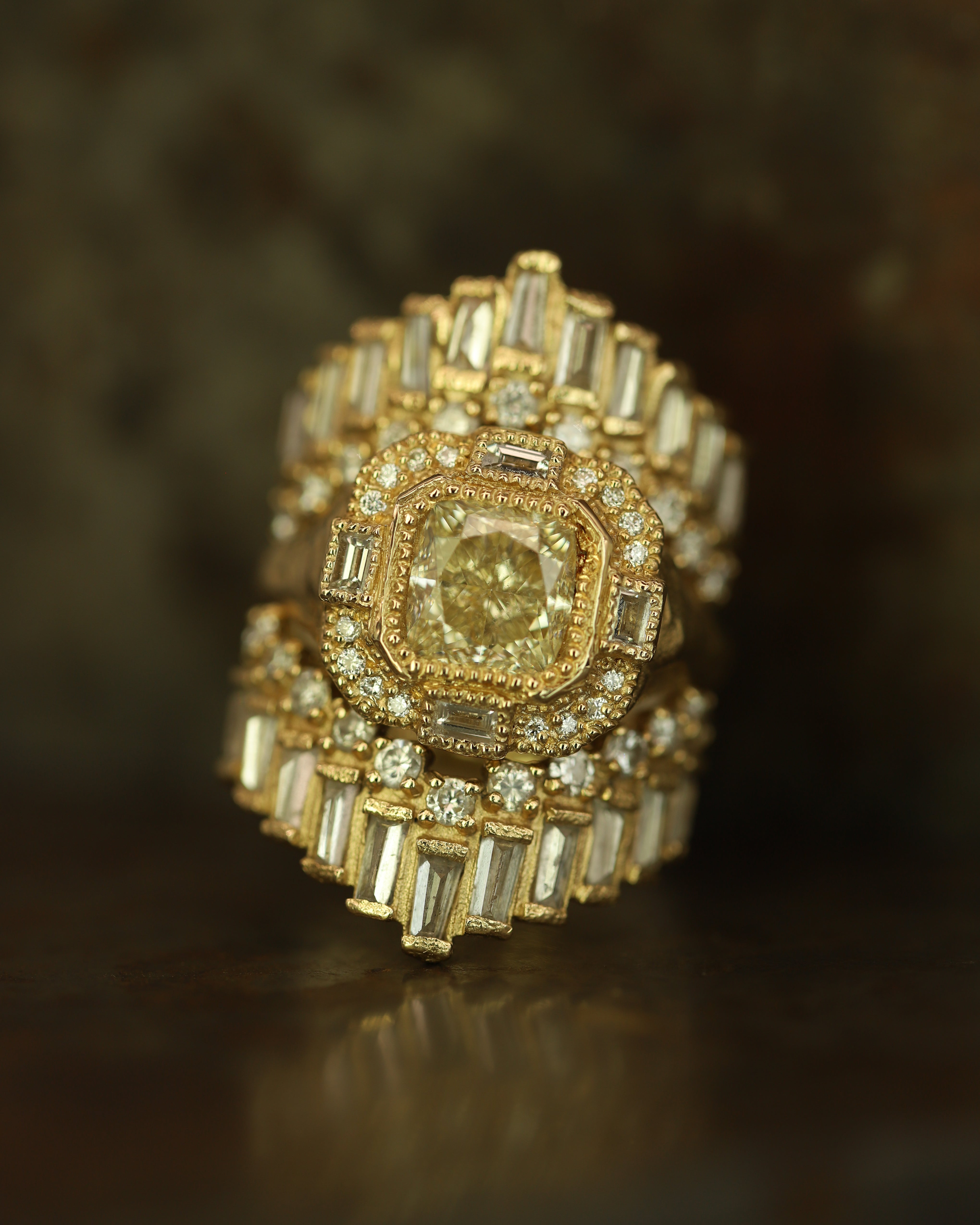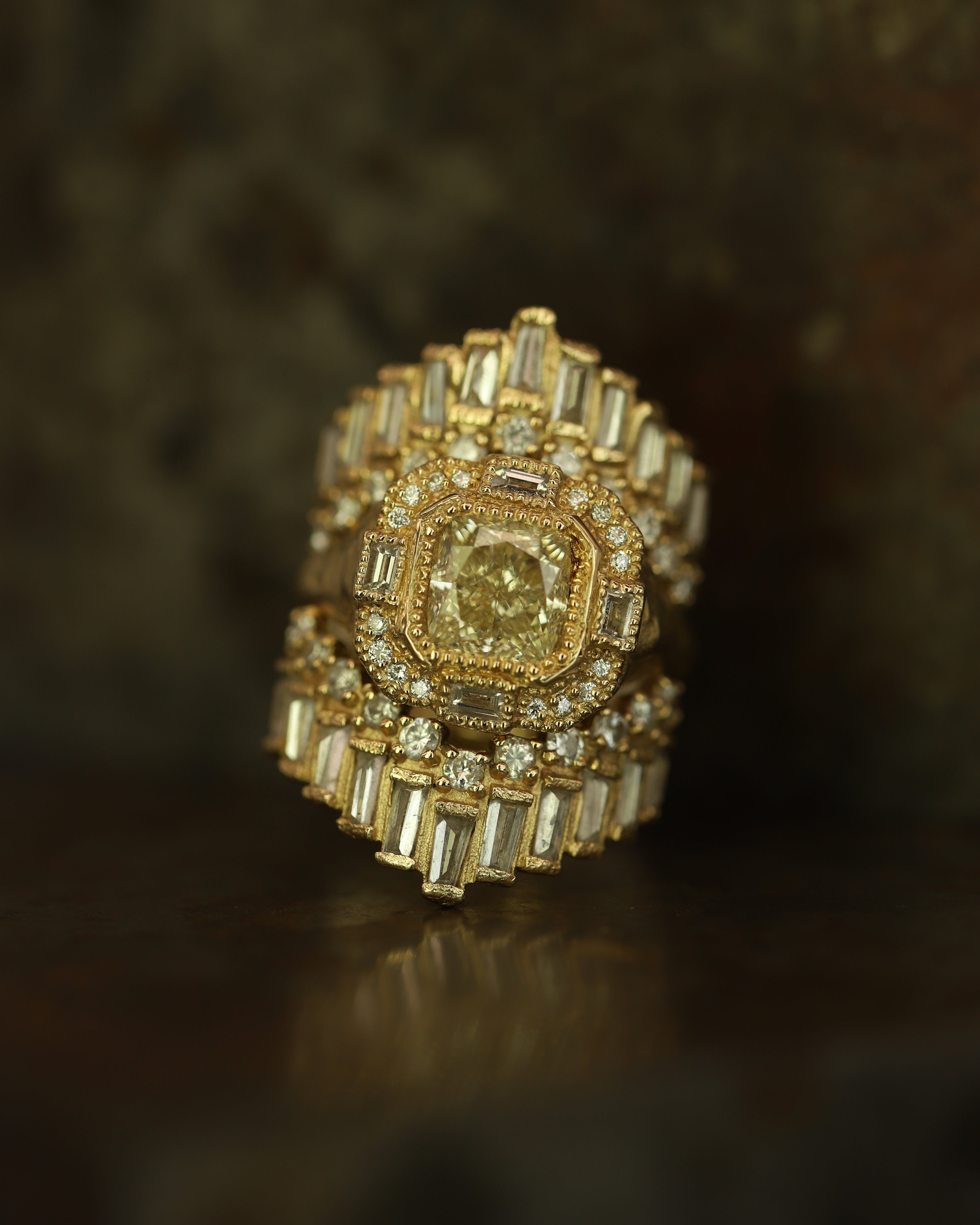 Armach Cushion Fancy Lemon Diamond Cocktail Ring
