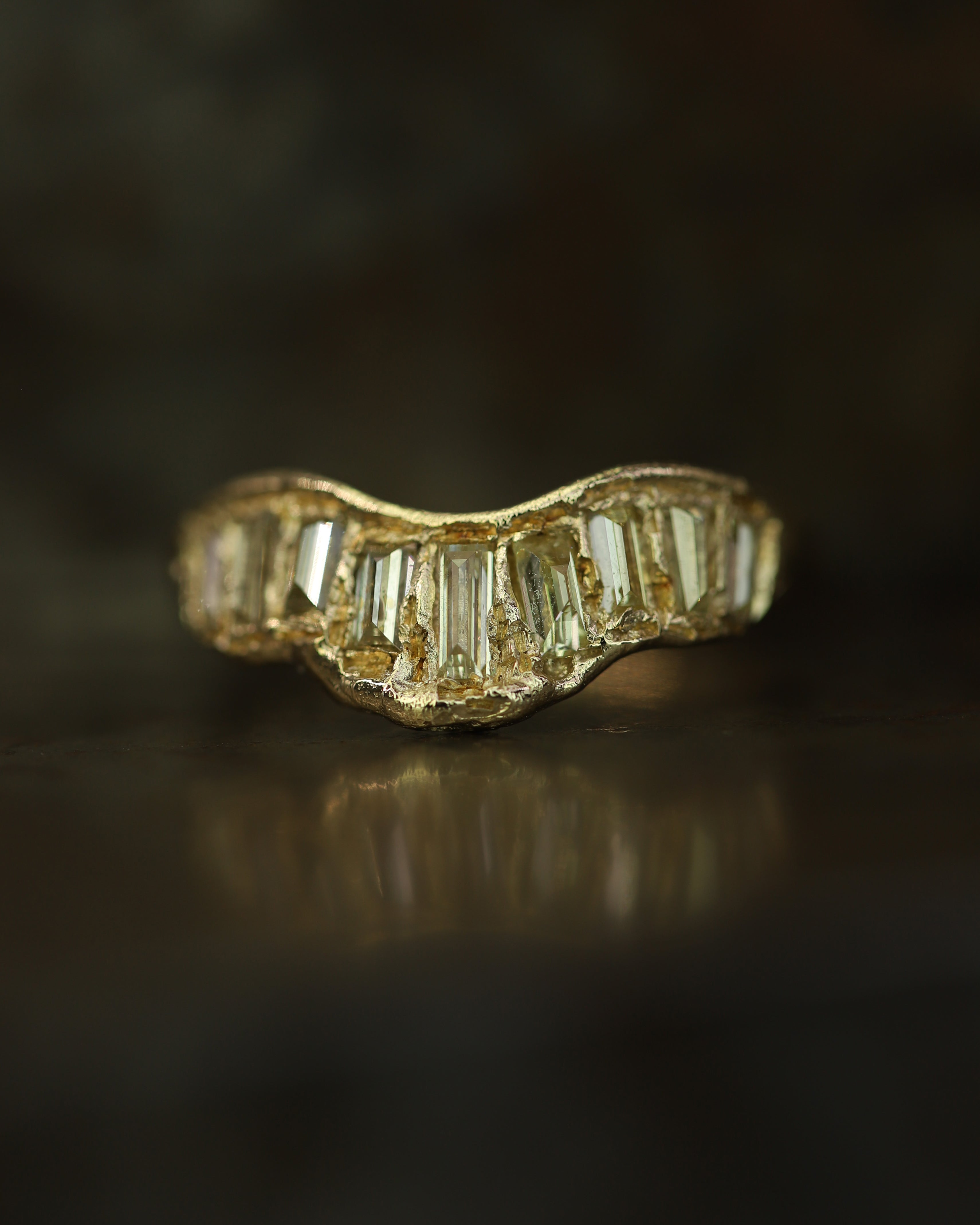The LX Lemon Baguette Diamond V Shape Scatter Ring is inspired by the medieval jewellery hoards which have been found across Scotland.
